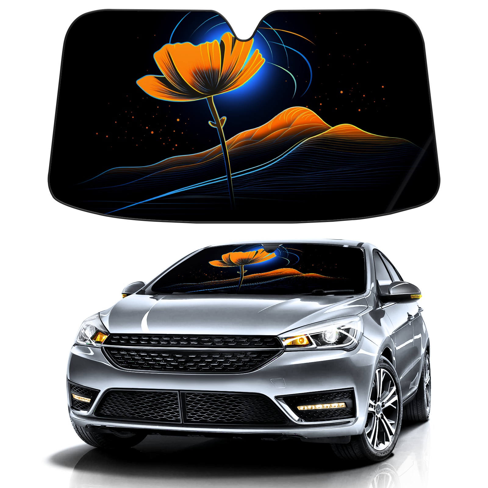 Car Windshield Sun Shade for Front Window Flower (46) Foldable Vehicle Windshield Car Sun Visor Covers Automotive Window Protector Car Privacy Sun Blocker