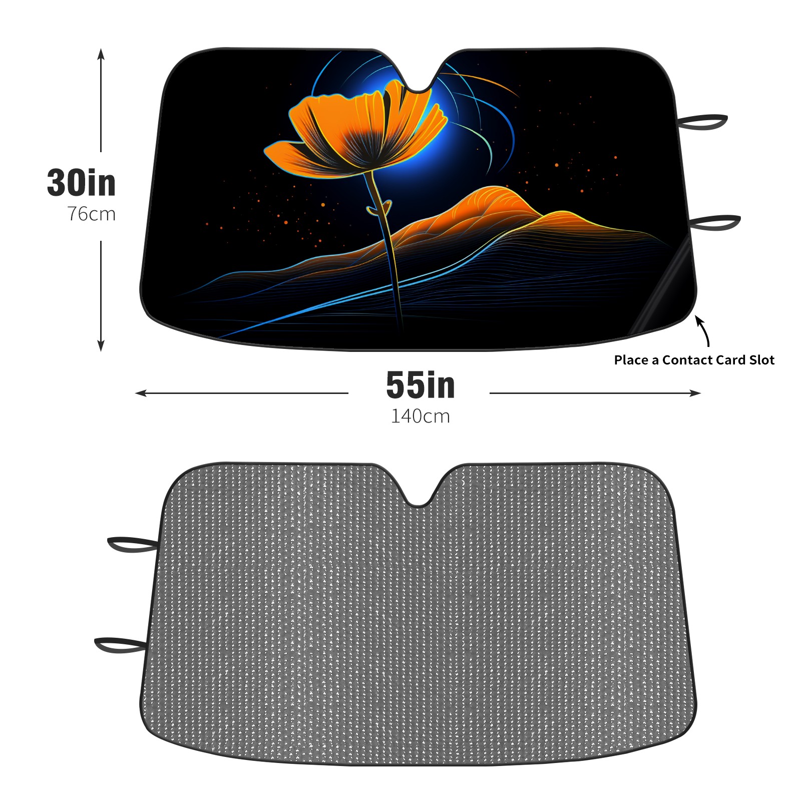Diameter /Size 63"L x 33.5"W</b><br> Made from excellent materials which makes it sturdy and protects the car from the sun. Easy to use and pack. Makes the interior of the car cooler.You can easily stash the sunshade in the storage bag or store long term.It open and closes easy. Also the leather storage bag is durable and easy to put the umbrella back into.This windshield sunshade provides complete coverage and keeps your car interior cool under direct sun. It is easy to open and position under the windshield and around the rear-view mirror. Makes Your Car Easy To Identify, Perfect For Finding Your Car In Crowded Parking Lots And Garages.Great Choice: It Is A Great Gift For Dad, Boyfriend, Brother, Brother And Uncle, Friends, Classmates, Family And So On.<br> Notice:</b><br> Due To Difference Computer Monitors, The Color Maybe Slightly Different From Picture. As Different Measurement Methods, Measurement Data Will Float Within 2%.I Hope You Understand.<br> If You Have Any Question About The Item Please Do Not Hesitate To Contact Us Immediately And We Will Give You A Satisfactory Reply Within 24 Hours.