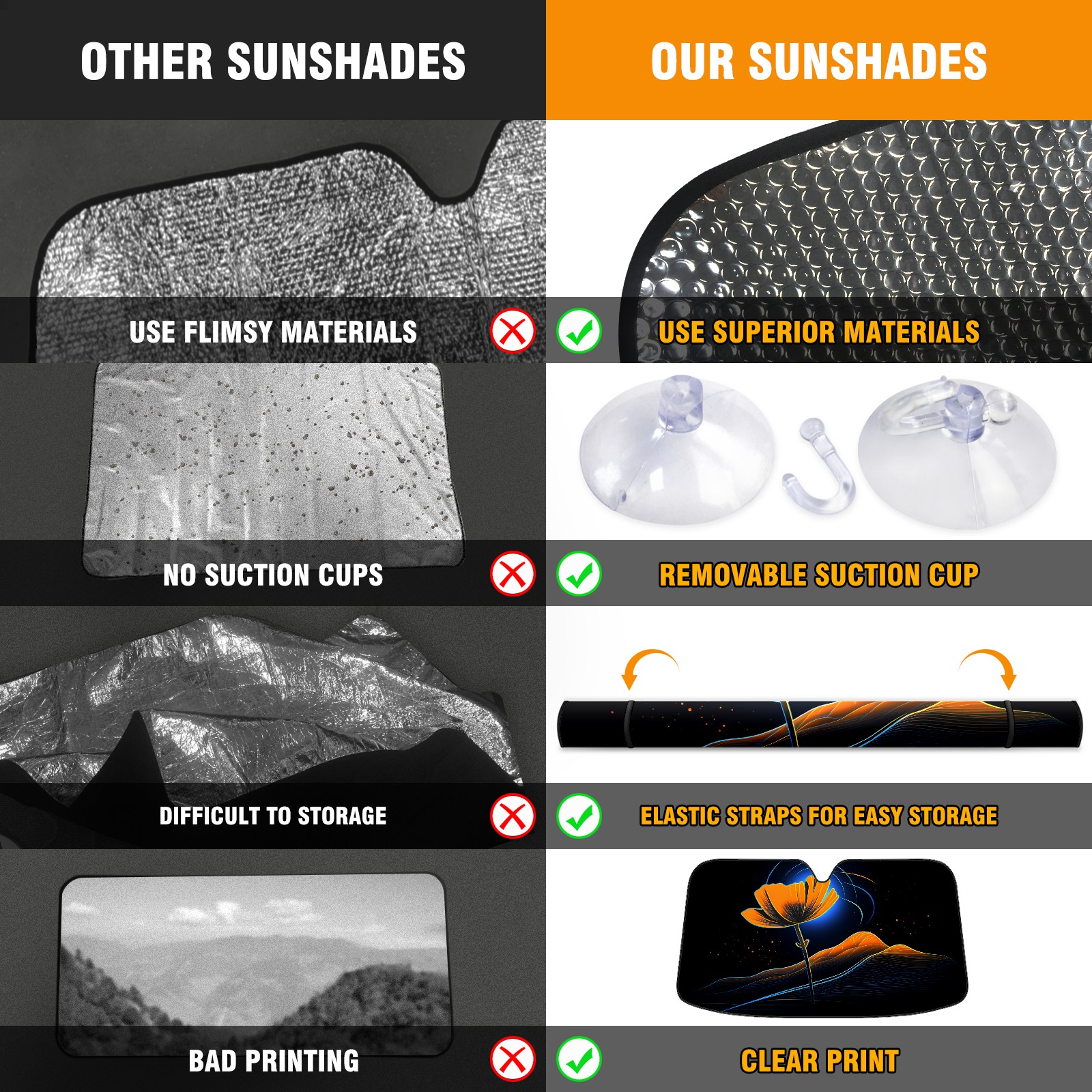 • Diameter /Size 63"L x 33.5"W</b><br> Made from excellent materials which makes it sturdy and protects the car from the sun. Easy to use and pack. Makes the interior of the car cooler.You can easily stash the sunshade in the storage bag or store long term.It open and closes easy. Also the leather storage bag is durable and easy to put the umbrella back into.This windshield sunshade provides complete coverage and keeps your car interior cool under direct sun. It is easy to open and position under the windshield and around the rear-view mirror. Makes Your Car Easy To Identify, Perfect For Finding Your Car In Crowded Parking Lots And Garages.Great Choice: It Is A Great Gift For Dad, Boyfriend, Brother, Brother And Uncle, Friends, Classmates, Family And So On.<br> Notice:</b><br> Due To Difference Computer Monitors, The Color Maybe Slightly Different From Picture. As Different Measurement Methods, Measurement Data Will Float Within 2%.I Hope You Understand.<br> If You Have Any Question About The Item Please Do Not Hesitate To Contact Us Immediately And We Will Give You A Satisfactory Reply Within 24 Hours.