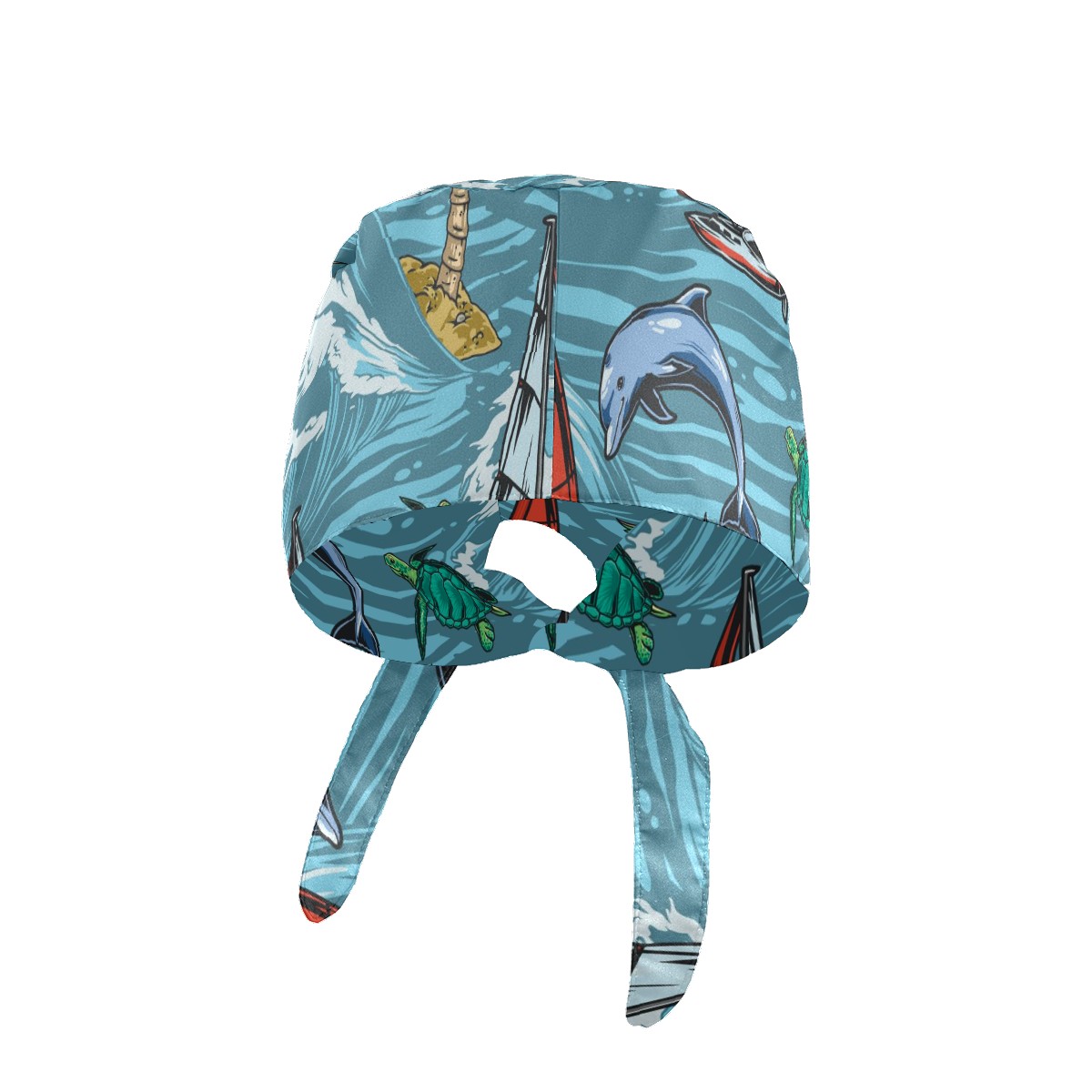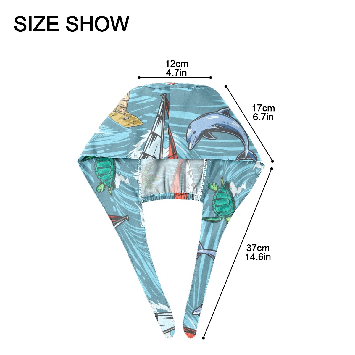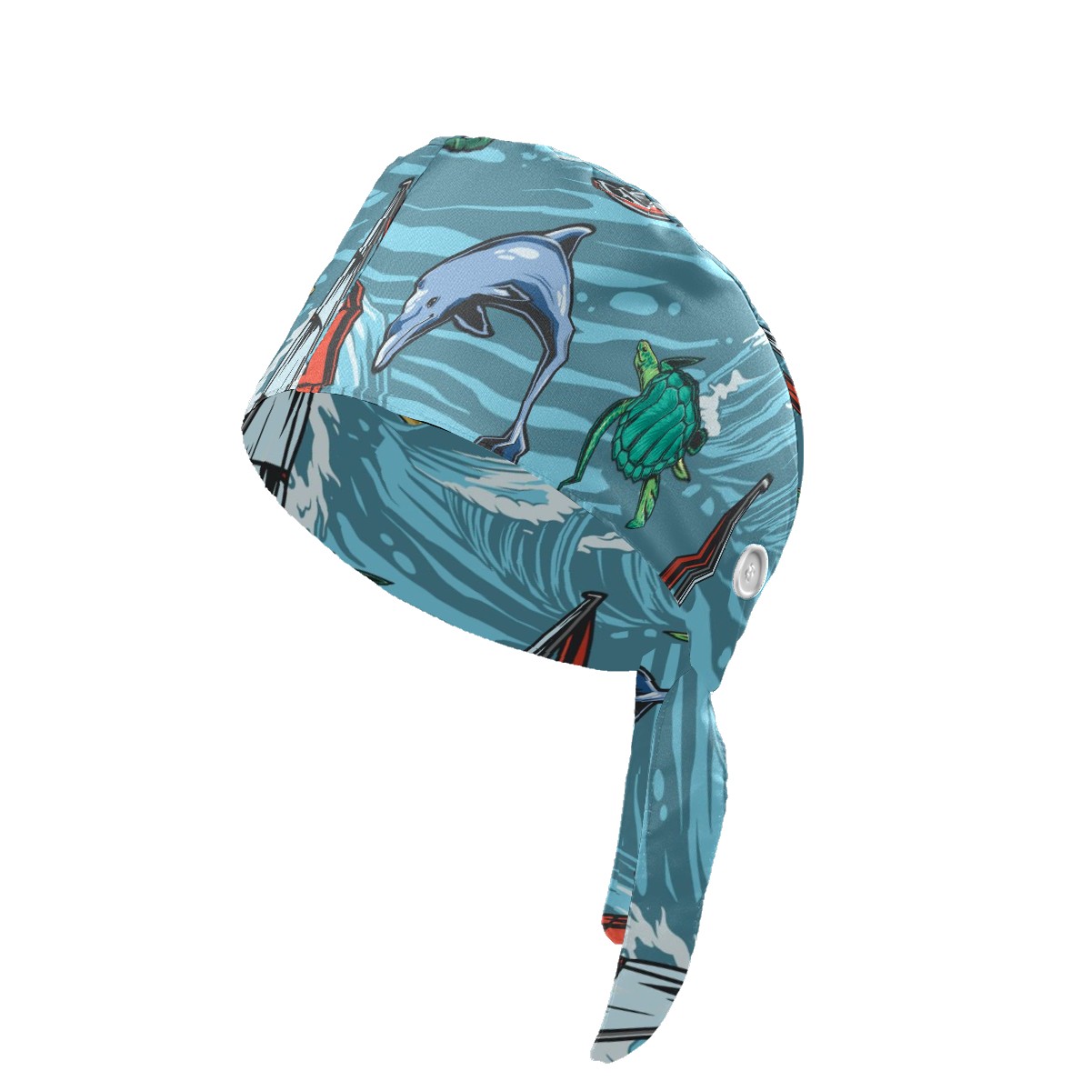 Working Caps with Button & Sweatband Satin Lined Cotton Adjustable Nurse Hats Elastic Band Scrub Cap Surgeon Hat Dolphin Turtle Sailing Yacht Palm Tree