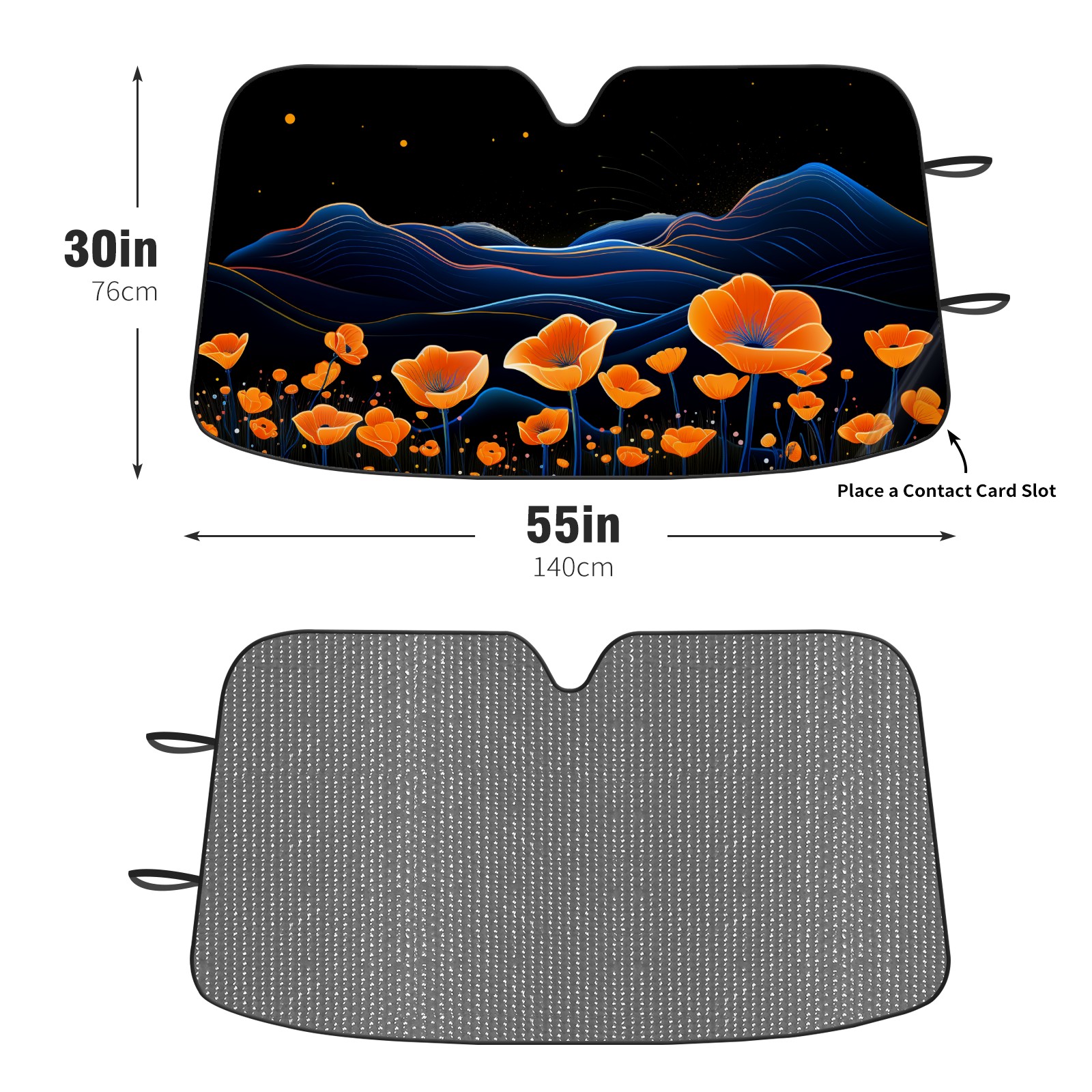 Diameter /Size 63"L x 33.5"W</b><br> Made from excellent materials which makes it sturdy and protects the car from the sun. Easy to use and pack. Makes the interior of the car cooler.You can easily stash the sunshade in the storage bag or store long term.It open and closes easy. Also the leather storage bag is durable and easy to put the umbrella back into.This windshield sunshade provides complete coverage and keeps your car interior cool under direct sun. It is easy to open and position under the windshield and around the rear-view mirror. Makes Your Car Easy To Identify, Perfect For Finding Your Car In Crowded Parking Lots And Garages.Great Choice: It Is A Great Gift For Dad, Boyfriend, Brother, Brother And Uncle, Friends, Classmates, Family And So On.<br> Notice:</b><br> Due To Difference Computer Monitors, The Color Maybe Slightly Different From Picture. As Different Measurement Methods, Measurement Data Will Float Within 2%.I Hope You Understand.<br> If You Have Any Question About The Item Please Do Not Hesitate To Contact Us Immediately And We Will Give You A Satisfactory Reply Within 24 Hours.