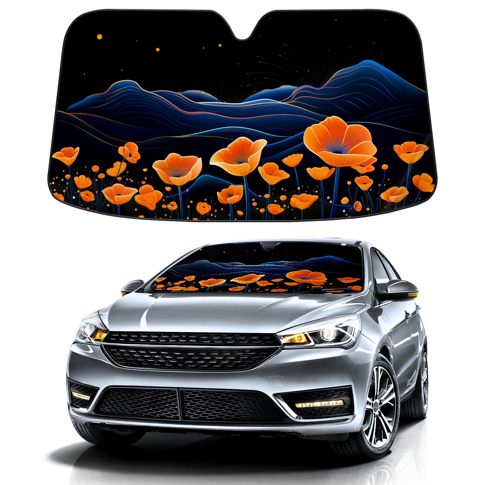 Car Windshield Sun Shade for Front Window Flower (43) Foldable Vehicle Windshield Car Sun Visor Covers Automotive Window Protector Car Privacy Sun Blocker
