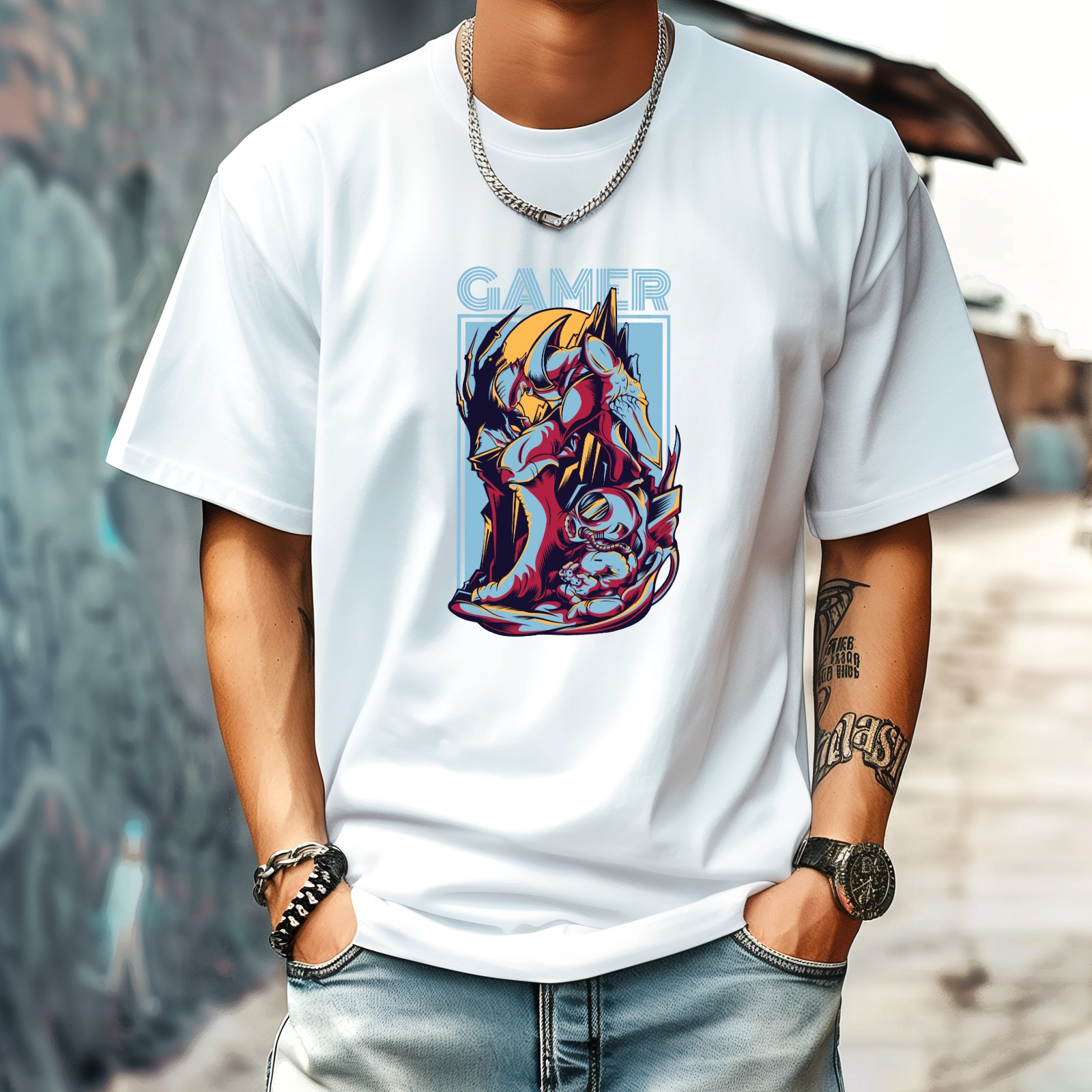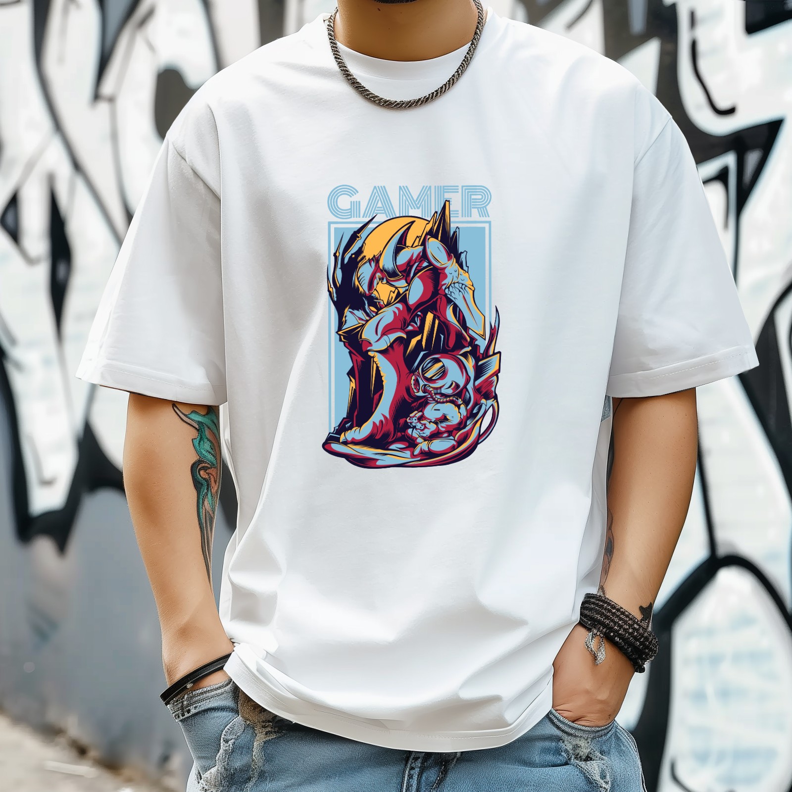 Gamer T-Shirt for Man Tops Short Sleeves Shirt Crew Neck Shirt XS