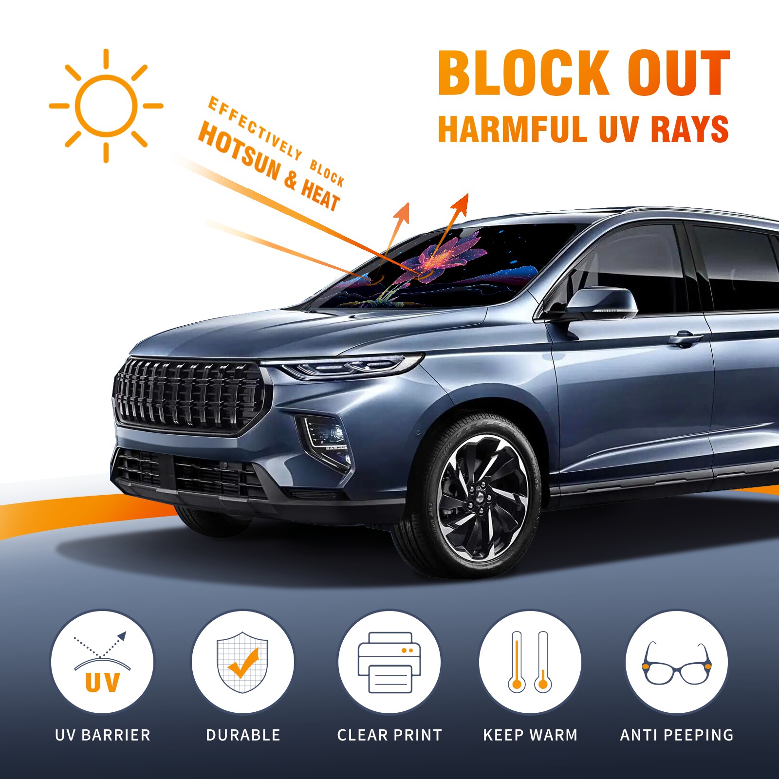 Car Windshield Sun Shade for Front Window Flower (244) Foldable Vehicle Windshield Car Sun Visor Covers Automotive Window Protector Car Privacy Sun Blocker