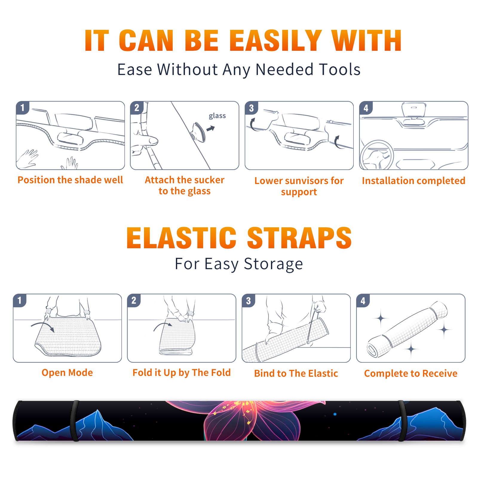 Diameter /Size 63"L x 33.5"W</b><br> Made from excellent materials which makes it sturdy and protects the car from the sun. Easy to use and pack. Makes the interior of the car cooler.You can easily stash the sunshade in the storage bag or store long term.It open and closes easy. Also the leather storage bag is durable and easy to put the umbrella back into.This windshield sunshade provides complete coverage and keeps your car interior cool under direct sun. It is easy to open and position under the windshield and around the rear-view mirror. Makes Your Car Easy To Identify, Perfect For Finding Your Car In Crowded Parking Lots And Garages.Great Choice: It Is A Great Gift For Dad, Boyfriend, Brother, Brother And Uncle, Friends, Classmates, Family And So On.<br> Notice:</b><br> Due To Difference Computer Monitors, The Color Maybe Slightly Different From Picture. As Different Measurement Methods, Measurement Data Will Float Within 2%.I Hope You Understand.<br> If You Have Any Question About The Item Please Do Not Hesitate To Contact Us Immediately And We Will Give You A Satisfactory Reply Within 24 Hours.