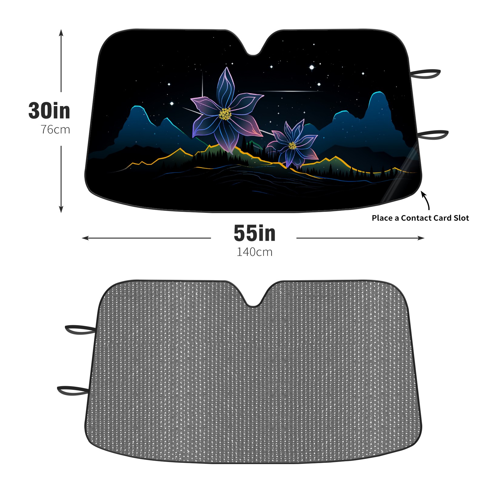 Diameter /Size 63"L x 33.5"W</b><br> Made from excellent materials which makes it sturdy and protects the car from the sun. Easy to use and pack. Makes the interior of the car cooler.You can easily stash the sunshade in the storage bag or store long term.It open and closes easy. Also the leather storage bag is durable and easy to put the umbrella back into.This windshield sunshade provides complete coverage and keeps your car interior cool under direct sun. It is easy to open and position under the windshield and around the rear-view mirror. Makes Your Car Easy To Identify, Perfect For Finding Your Car In Crowded Parking Lots And Garages.Great Choice: It Is A Great Gift For Dad, Boyfriend, Brother, Brother And Uncle, Friends, Classmates, Family And So On.<br> Notice:</b><br> Due To Difference Computer Monitors, The Color Maybe Slightly Different From Picture. As Different Measurement Methods, Measurement Data Will Float Within 2%.I Hope You Understand.<br> If You Have Any Question About The Item Please Do Not Hesitate To Contact Us Immediately And We Will Give You A Satisfactory Reply Within 24 Hours.