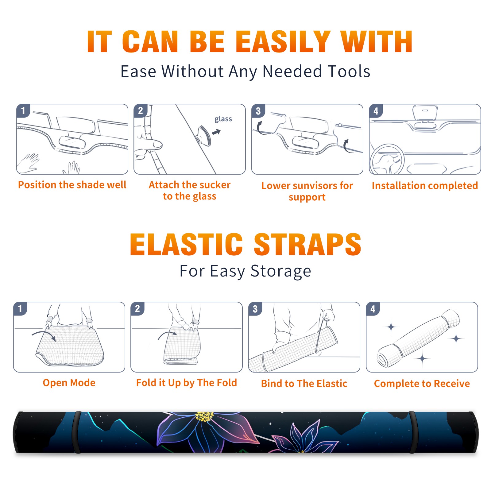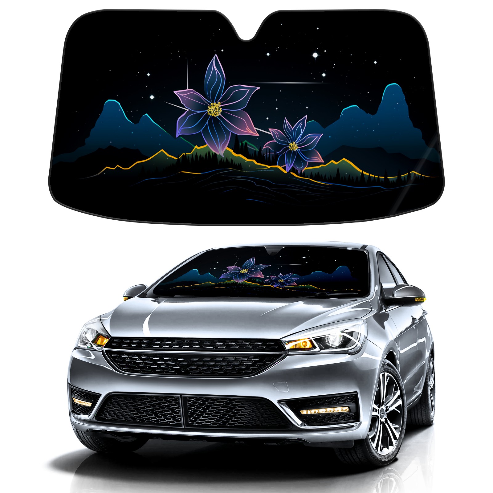 Car Windshield Sun Shade for Front Window Flower (242) Foldable Vehicle Windshield Car Sun Visor Covers Automotive Window Protector Car Privacy Sun Blocker