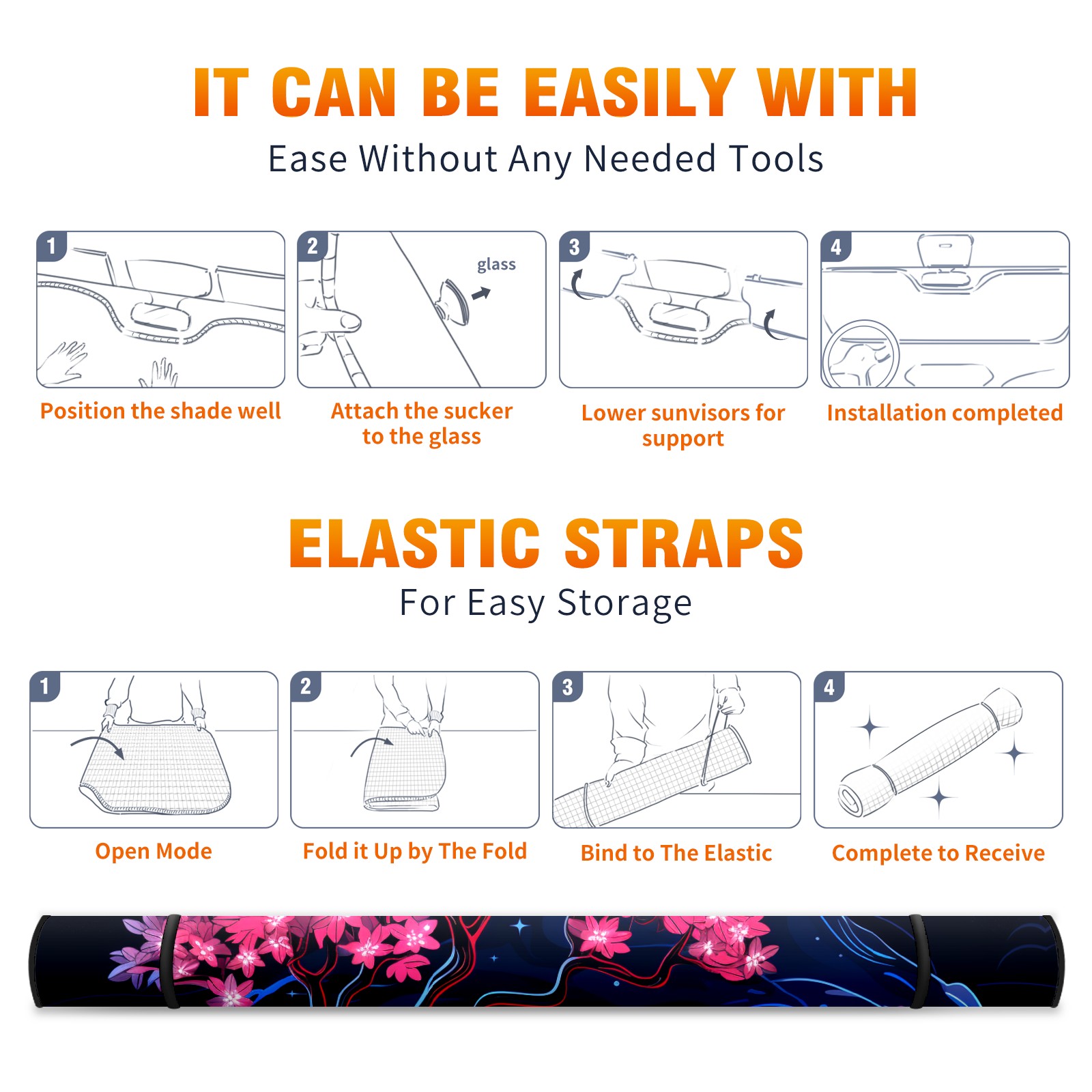 Car Windshield Sun Shade for Front Window Flower (189) Foldable Vehicle Windshield Car Sun Visor Covers Automotive Window Protector Car Privacy Sun Blocker