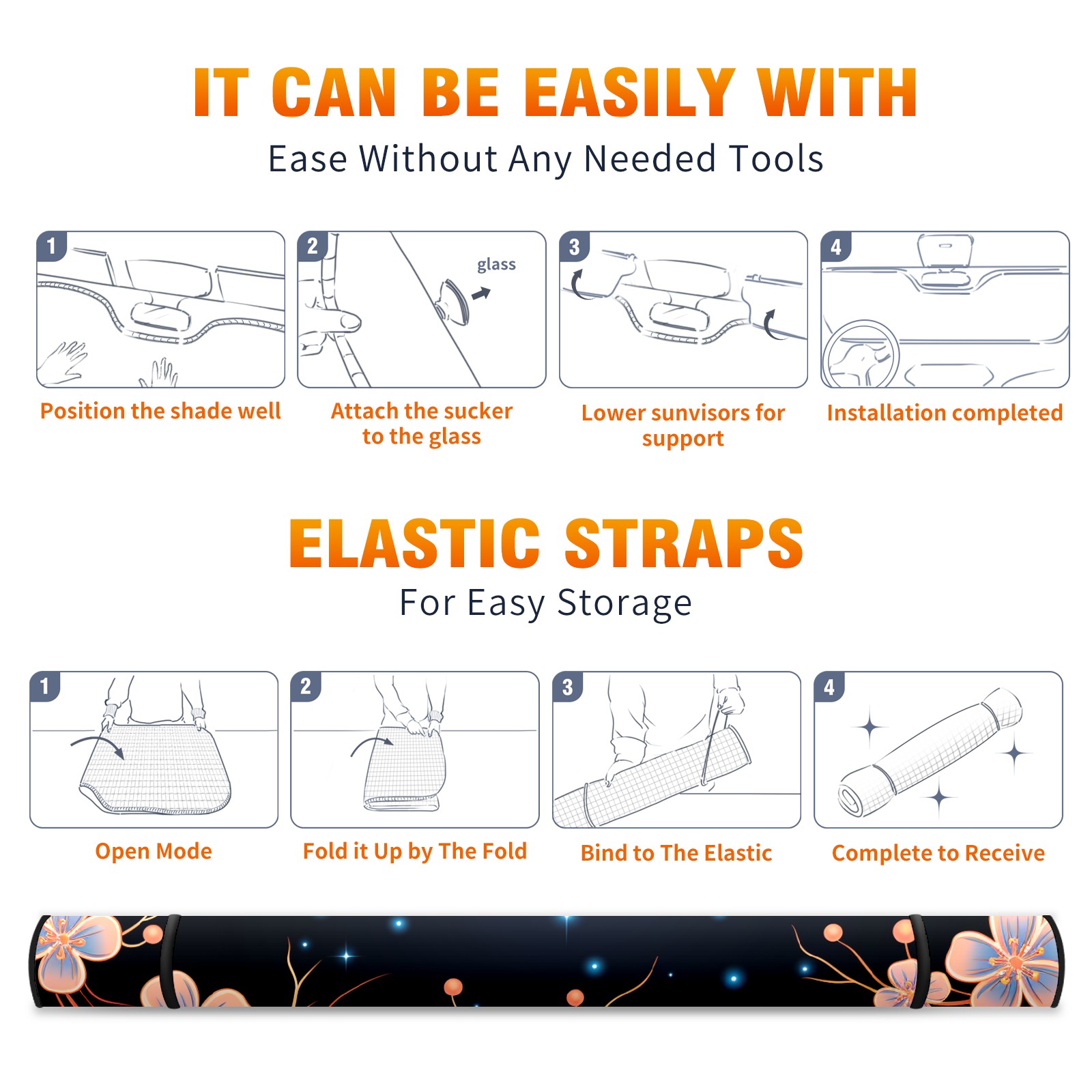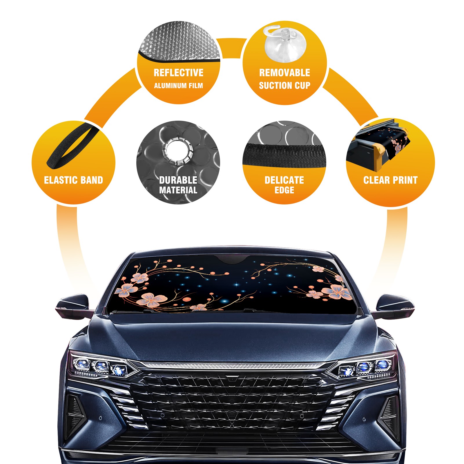 Car Windshield Sun Shade for Front Window Flower (225) Foldable Vehicle Windshield Car Sun Visor Covers Automotive Window Protector Car Privacy Sun Blocker