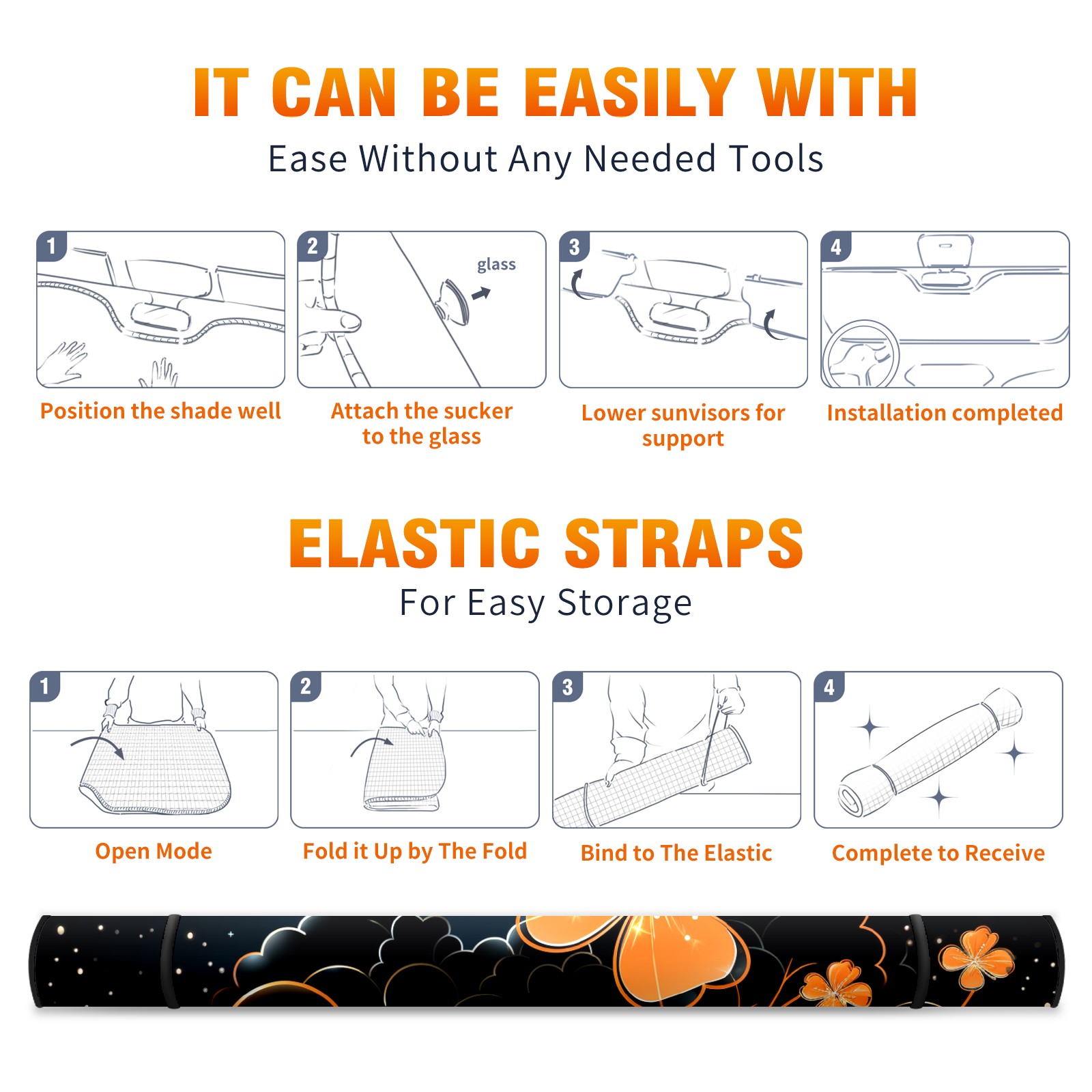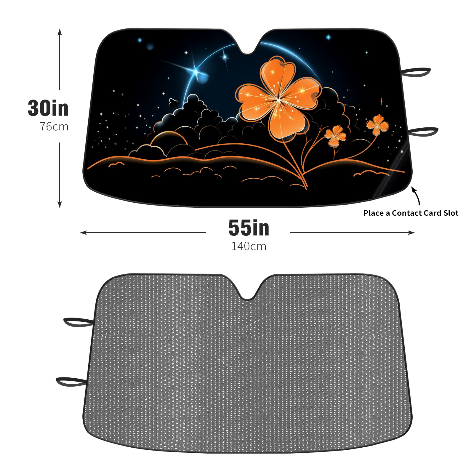 Diameter /Size 63"L x 33.5"W</b><br> Made from excellent materials which makes it sturdy and protects the car from the sun. Easy to use and pack. Makes the interior of the car cooler.You can easily stash the sunshade in the storage bag or store long term.It open and closes easy. Also the leather storage bag is durable and easy to put the umbrella back into.This windshield sunshade provides complete coverage and keeps your car interior cool under direct sun. It is easy to open and position under the windshield and around the rear-view mirror. Makes Your Car Easy To Identify, Perfect For Finding Your Car In Crowded Parking Lots And Garages.Great Choice: It Is A Great Gift For Dad, Boyfriend, Brother, Brother And Uncle, Friends, Classmates, Family And So On.<br> Notice:</b><br> Due To Difference Computer Monitors, The Color Maybe Slightly Different From Picture. As Different Measurement Methods, Measurement Data Will Float Within 2%.I Hope You Understand.<br> If You Have Any Question About The Item Please Do Not Hesitate To Contact Us Immediately And We Will Give You A Satisfactory Reply Within 24 Hours.