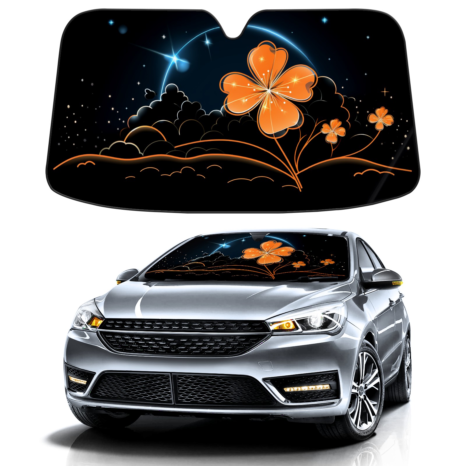 Car Windshield Sun Shade for Front Window Flower (210) Foldable Vehicle Windshield Car Sun Visor Covers Automotive Window Protector Car Privacy Sun Blocker
