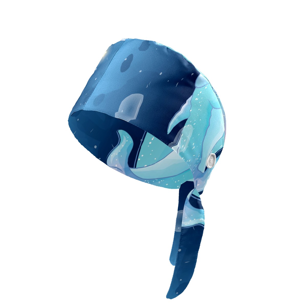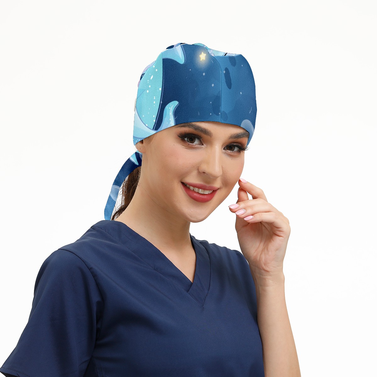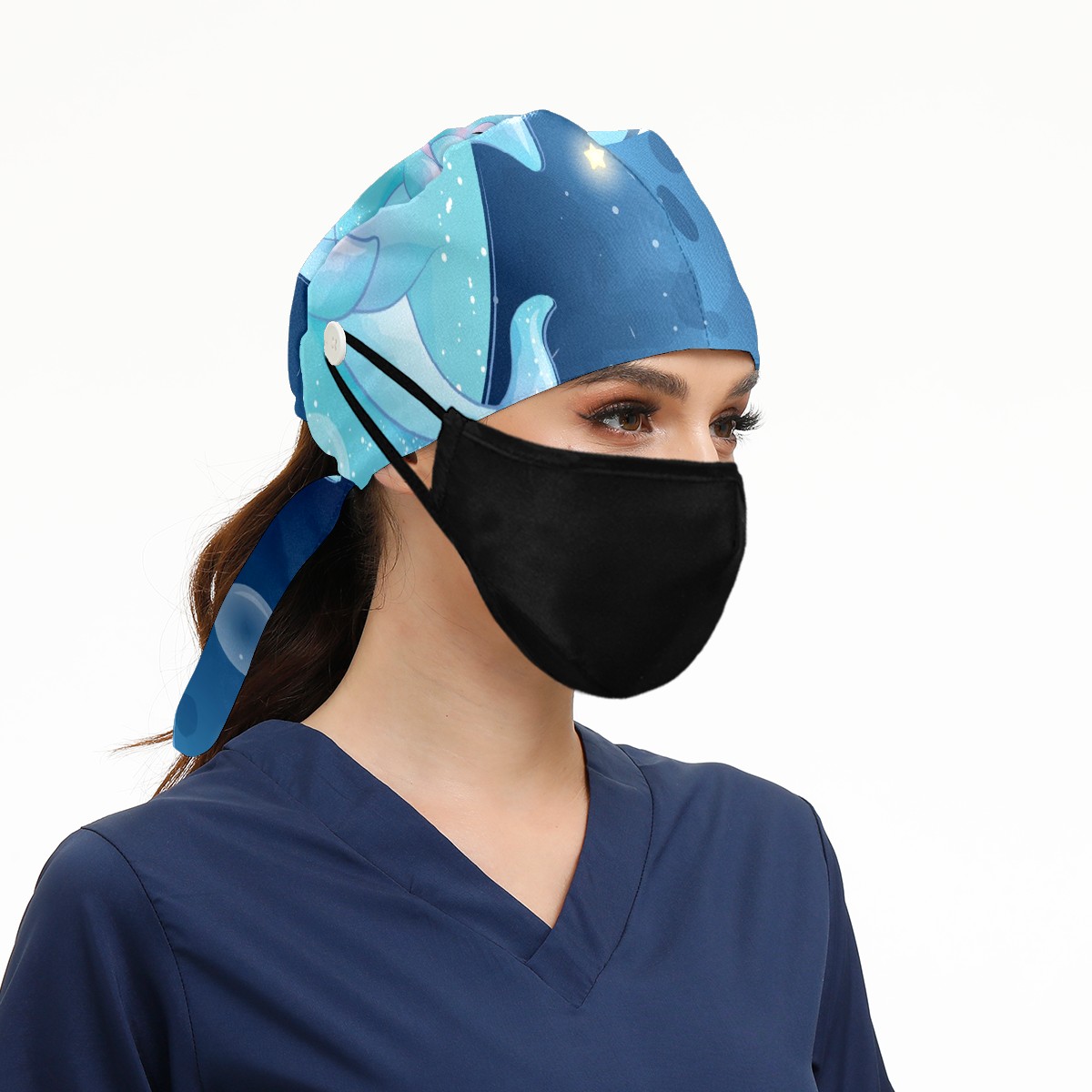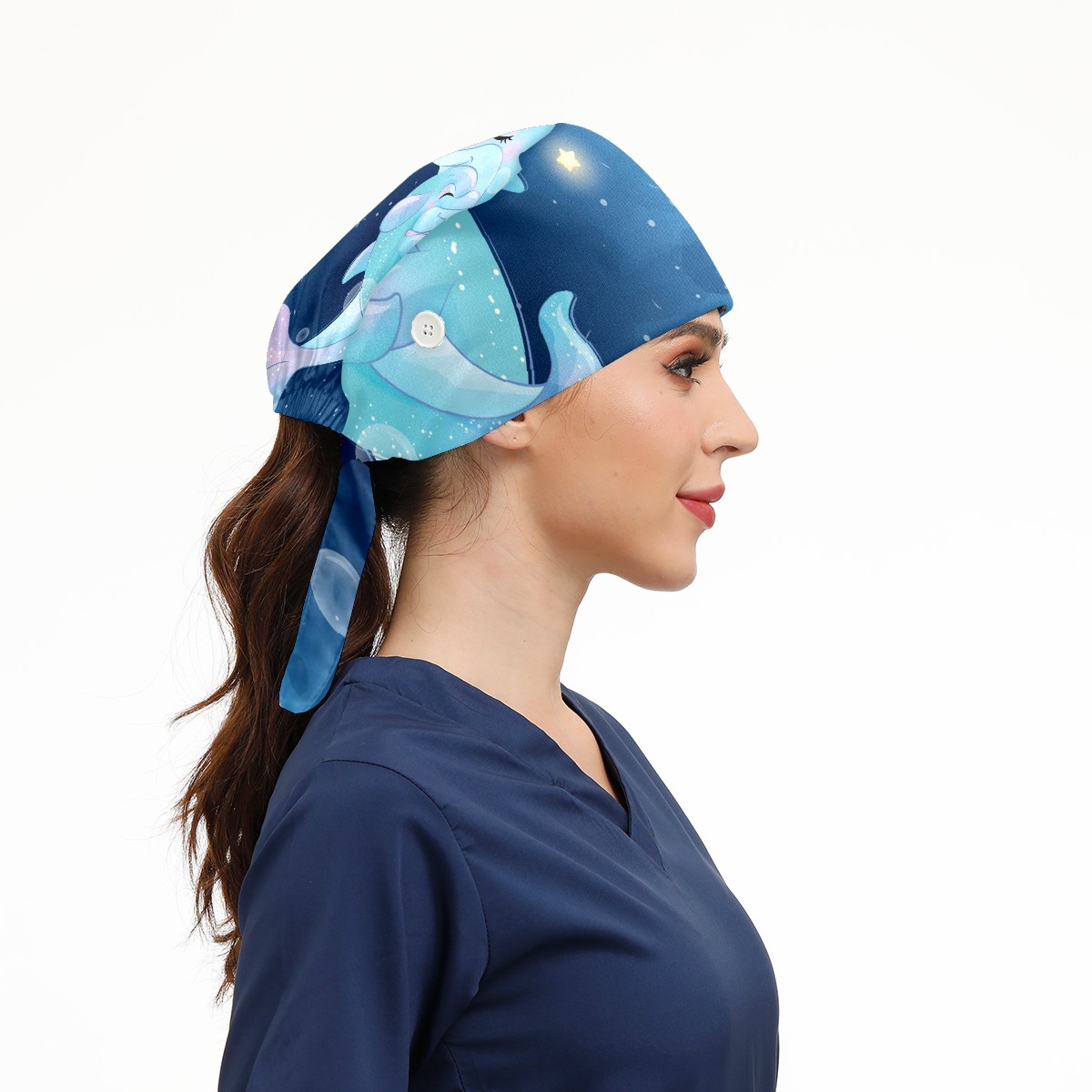 Working Caps with Button & Sweatband Satin Lined Cotton Adjustable Nurse Hats Elastic Band Scrub Cap Surgeon Hat Cute Dolphin Mother And Baby