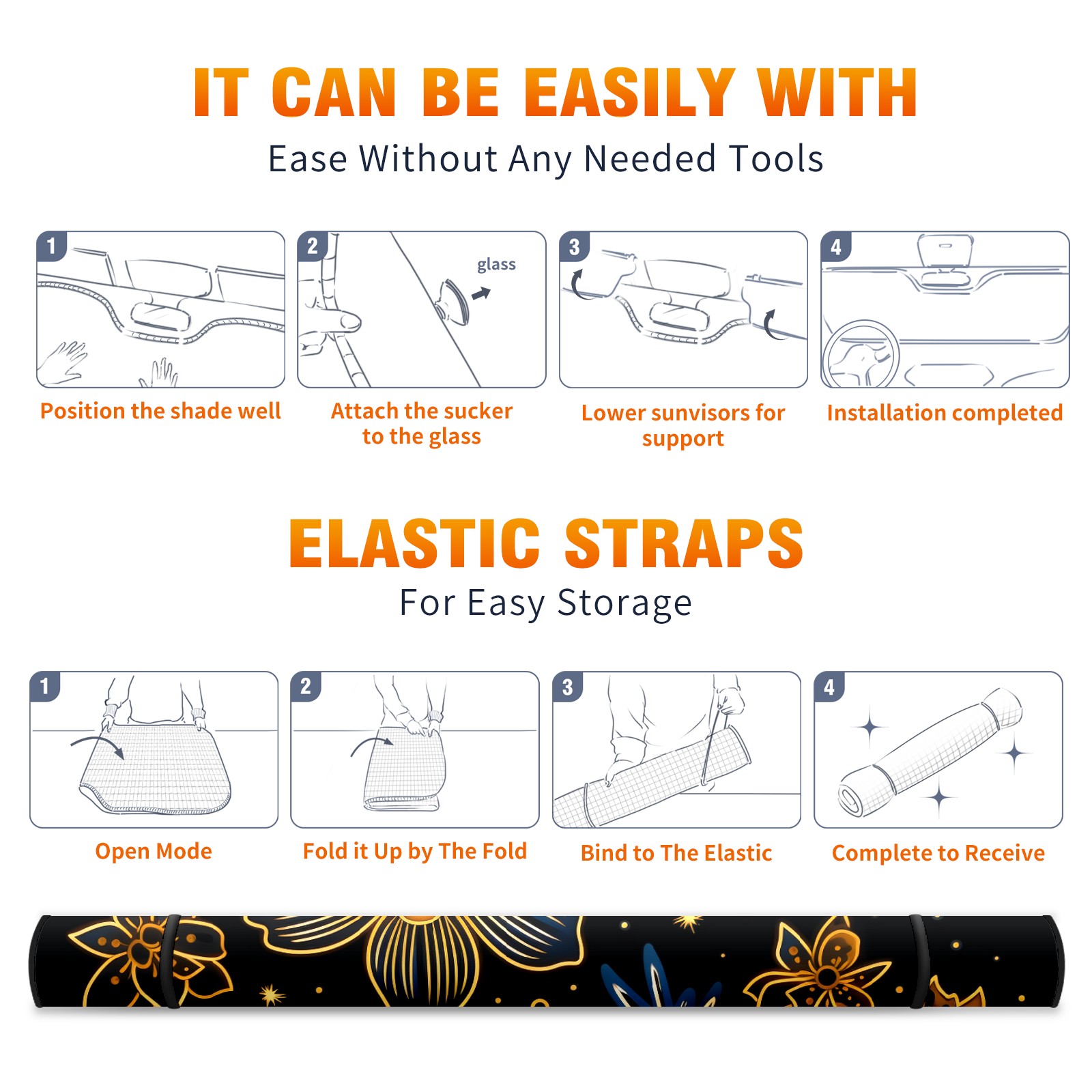 Car Windshield Sun Shade for Front Window Flower (538) Foldable Vehicle Windshield Car Sun Visor Covers Automotive Window Protector Car Privacy Sun Blocker
