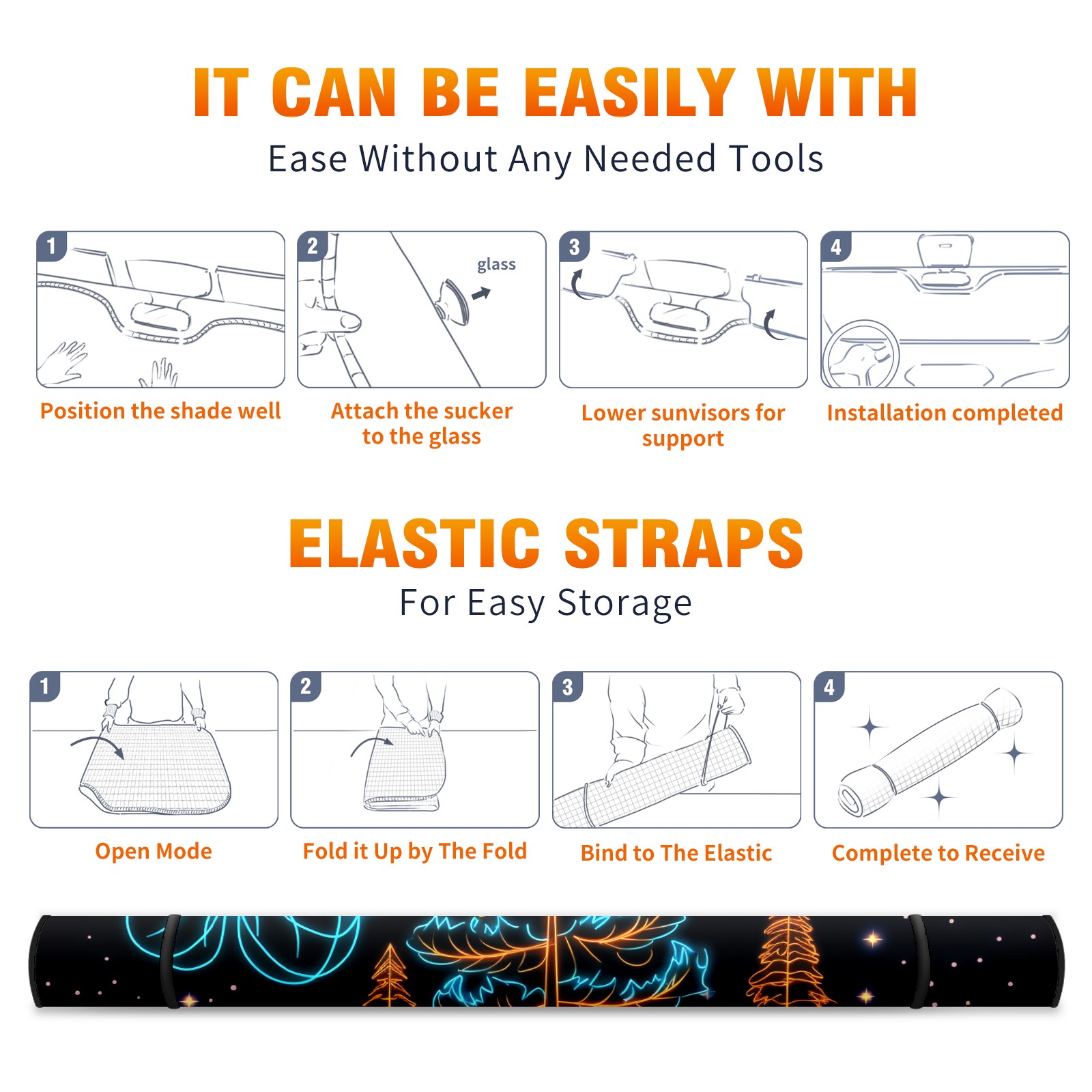 Diameter /Size 63"L x 33.5"W</b><br> Made from excellent materials which makes it sturdy and protects the car from the sun. Easy to use and pack. Makes the interior of the car cooler.You can easily stash the sunshade in the storage bag or store long term.It open and closes easy. Also the leather storage bag is durable and easy to put the umbrella back into.This windshield sunshade provides complete coverage and keeps your car interior cool under direct sun. It is easy to open and position under the windshield and around the rear-view mirror. Makes Your Car Easy To Identify, Perfect For Finding Your Car In Crowded Parking Lots And Garages.Great Choice: It Is A Great Gift For Dad, Boyfriend, Brother, Brother And Uncle, Friends, Classmates, Family And So On.<br> Notice:</b><br> Due To Difference Computer Monitors, The Color Maybe Slightly Different From Picture. As Different Measurement Methods, Measurement Data Will Float Within 2%.I Hope You Understand.<br> If You Have Any Question About The Item Please Do Not Hesitate To Contact Us Immediately And We Will Give You A Satisfactory Reply Within 24 Hours.