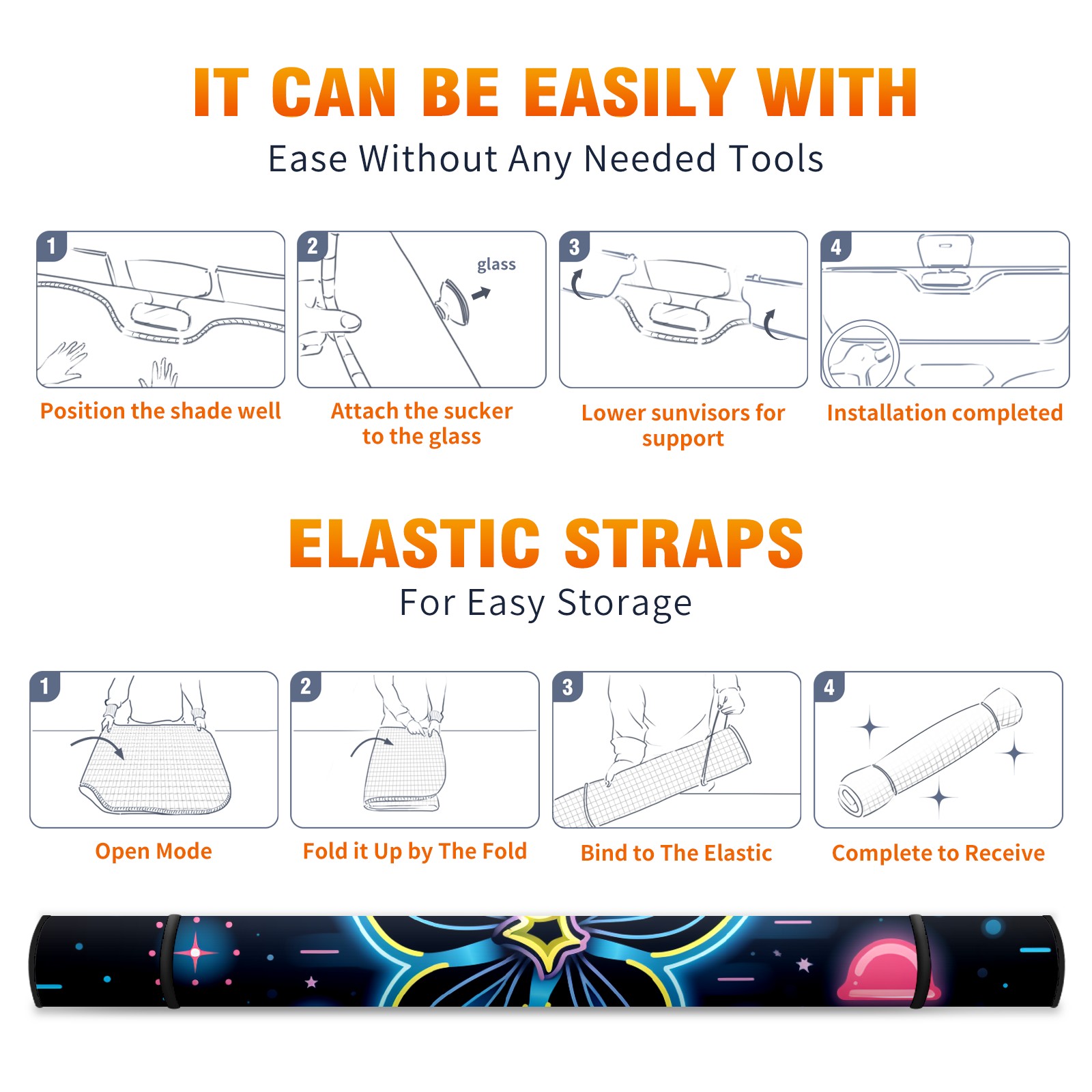 • Diameter /Size 63"L x 33.5"W</b><br> Made from excellent materials which makes it sturdy and protects the car from the sun. Easy to use and pack. Makes the interior of the car cooler.You can easily stash the sunshade in the storage bag or store long term.It open and closes easy. Also the leather storage bag is durable and easy to put the umbrella back into.This windshield sunshade provides complete coverage and keeps your car interior cool under direct sun. It is easy to open and position under the windshield and around the rear-view mirror. Makes Your Car Easy To Identify, Perfect For Finding Your Car In Crowded Parking Lots And Garages.Great Choice: It Is A Great Gift For Dad, Boyfriend, Brother, Brother And Uncle, Friends, Classmates, Family And So On.<br> Notice:</b><br> Due To Difference Computer Monitors, The Color Maybe Slightly Different From Picture. As Different Measurement Methods, Measurement Data Will Float Within 2%.I Hope You Understand.<br> If You Have Any Question About The Item Please Do Not Hesitate To Contact Us Immediately And We Will Give You A Satisfactory Reply Within 24 Hours.