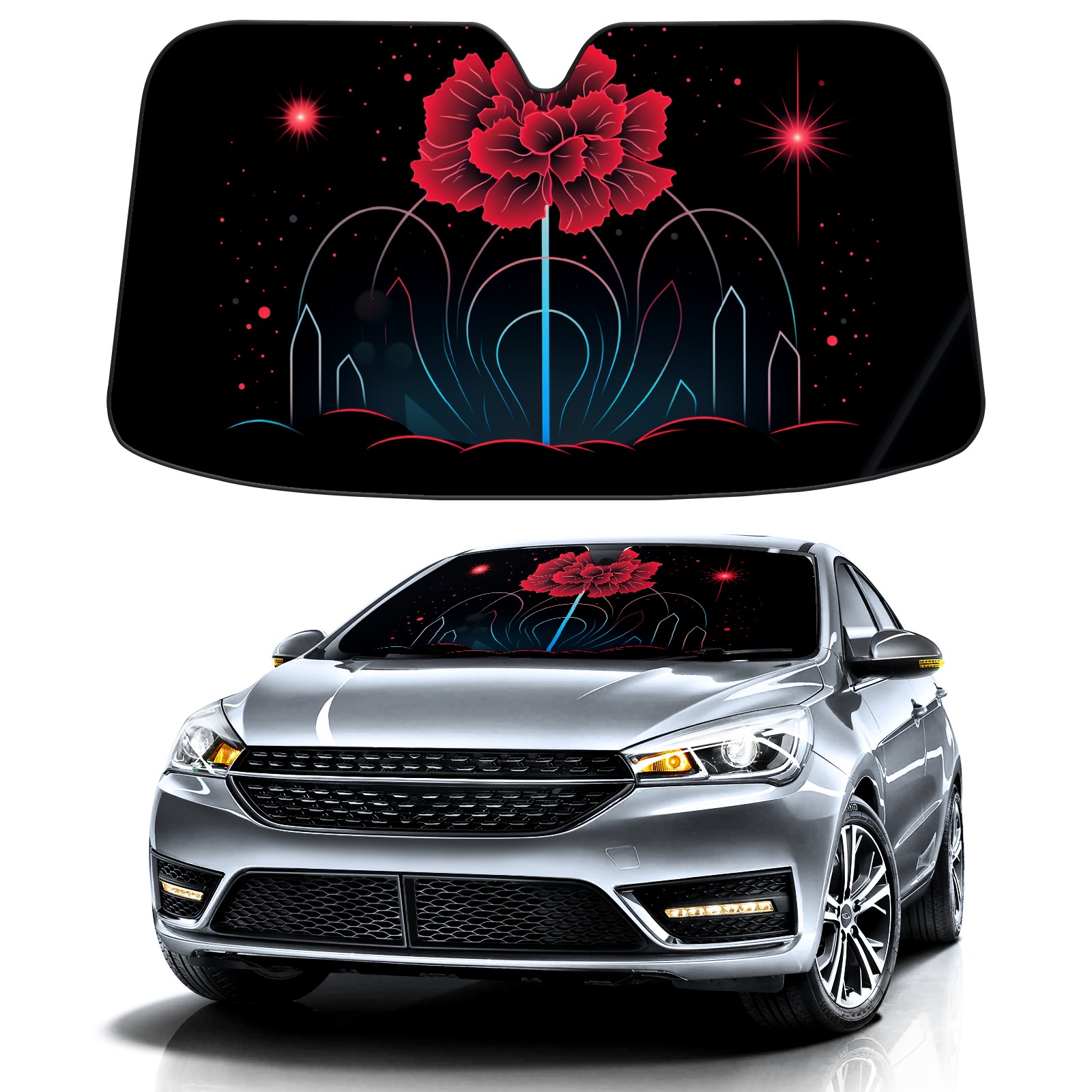 Car Windshield Sun Shade for Front Window Flower (419) Foldable Vehicle Windshield Car Sun Visor Covers Automotive Window Protector Car Privacy Sun Blocker