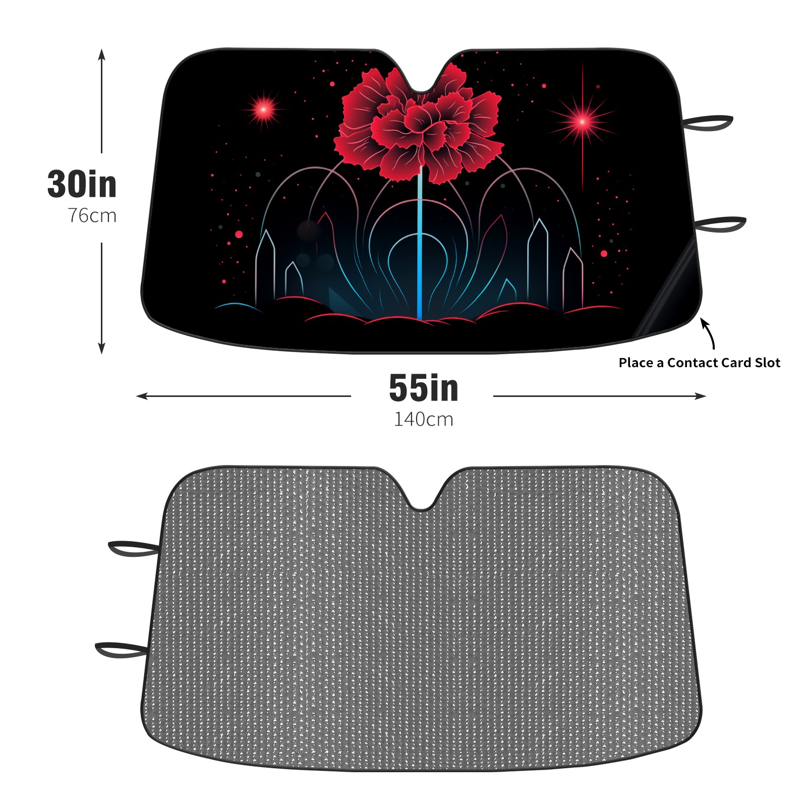 Diameter /Size 63"L x 33.5"W</b><br> Made from excellent materials which makes it sturdy and protects the car from the sun. Easy to use and pack. Makes the interior of the car cooler.You can easily stash the sunshade in the storage bag or store long term.It open and closes easy. Also the leather storage bag is durable and easy to put the umbrella back into.This windshield sunshade provides complete coverage and keeps your car interior cool under direct sun. It is easy to open and position under the windshield and around the rear-view mirror. Makes Your Car Easy To Identify, Perfect For Finding Your Car In Crowded Parking Lots And Garages.Great Choice: It Is A Great Gift For Dad, Boyfriend, Brother, Brother And Uncle, Friends, Classmates, Family And So On.<br> Notice:</b><br> Due To Difference Computer Monitors, The Color Maybe Slightly Different From Picture. As Different Measurement Methods, Measurement Data Will Float Within 2%.I Hope You Understand.<br> If You Have Any Question About The Item Please Do Not Hesitate To Contact Us Immediately And We Will Give You A Satisfactory Reply Within 24 Hours.