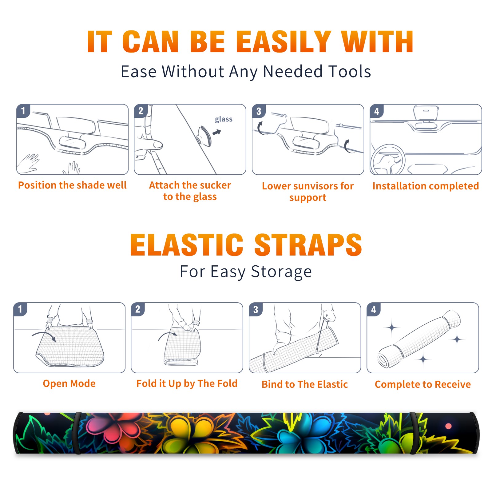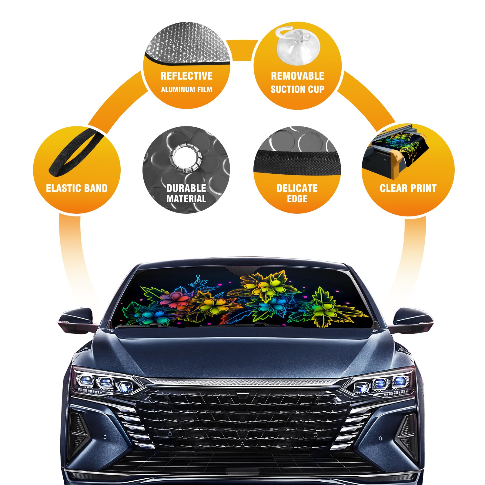 Car Windshield Sun Shade for Front Window Flower (373) Foldable Vehicle Windshield Car Sun Visor Covers Automotive Window Protector Car Privacy Sun Blocker