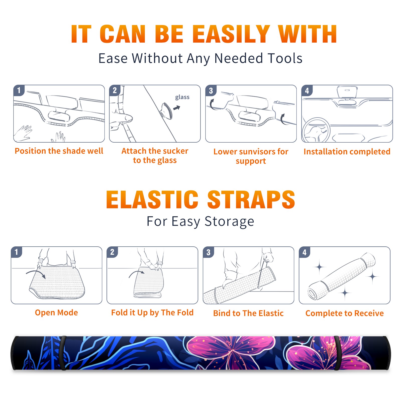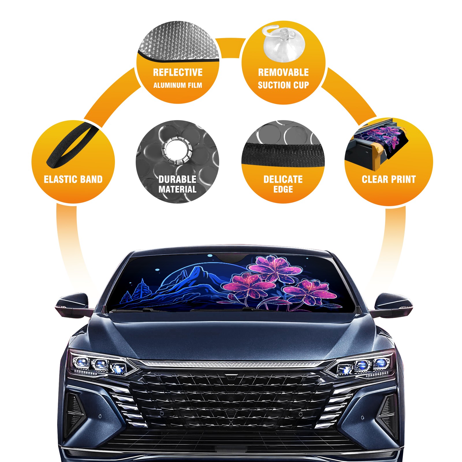 Car Windshield Sun Shade for Front Window Flower (351) Foldable Vehicle Windshield Car Sun Visor Covers Automotive Window Protector Car Privacy Sun Blocker