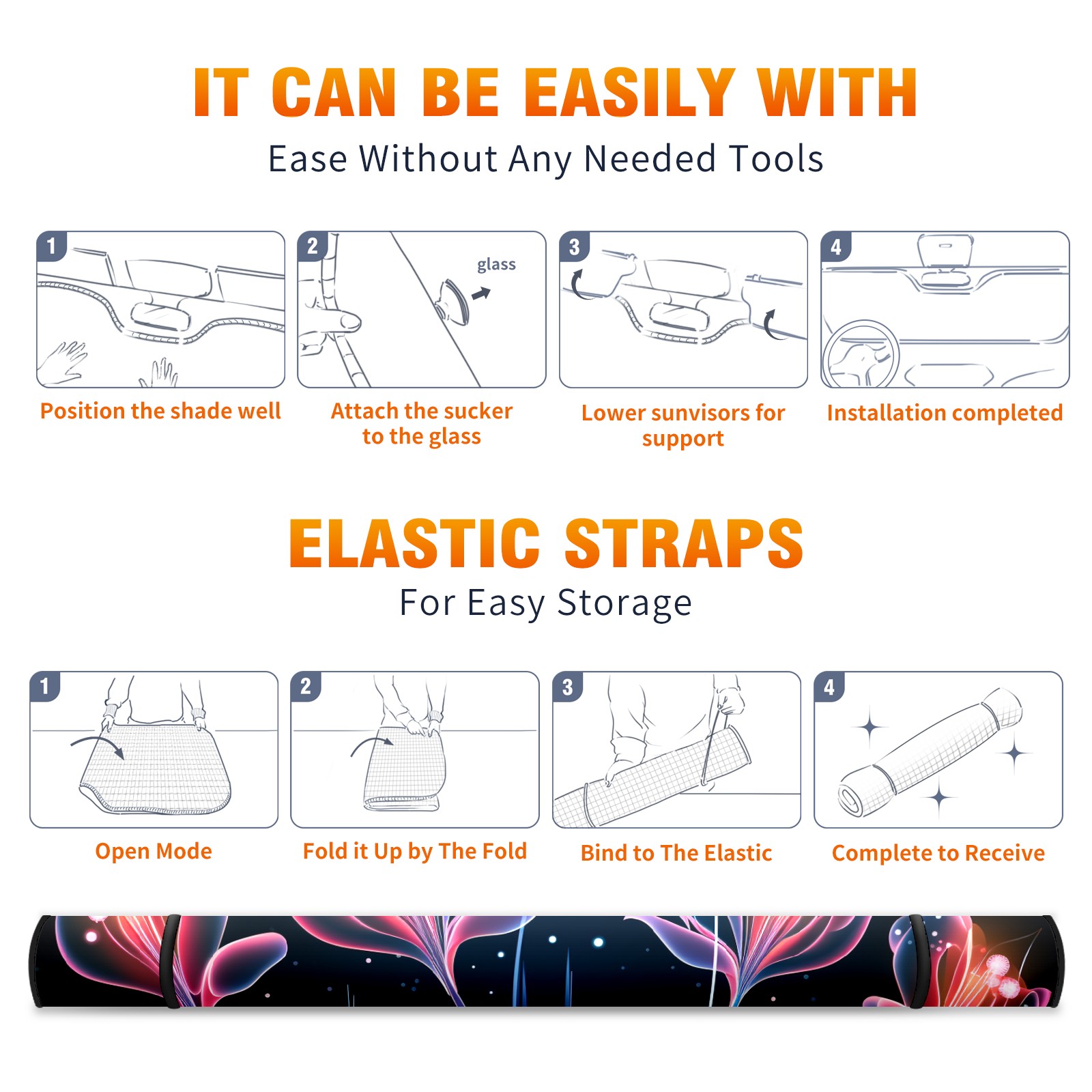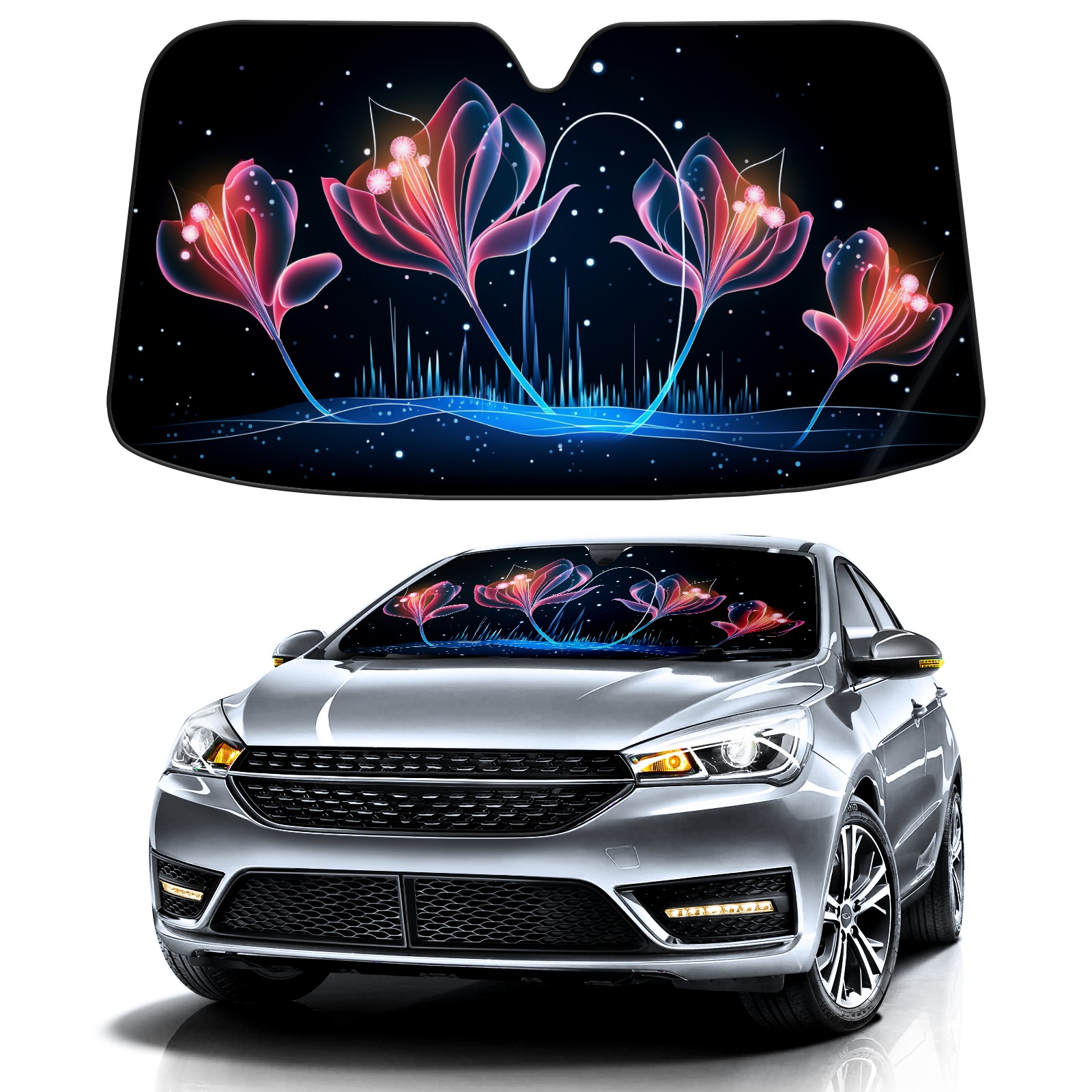 Car Windshield Sun Shade for Front Window Flower (431) Foldable Vehicle Windshield Car Sun Visor Covers Automotive Window Protector Car Privacy Sun Blocker