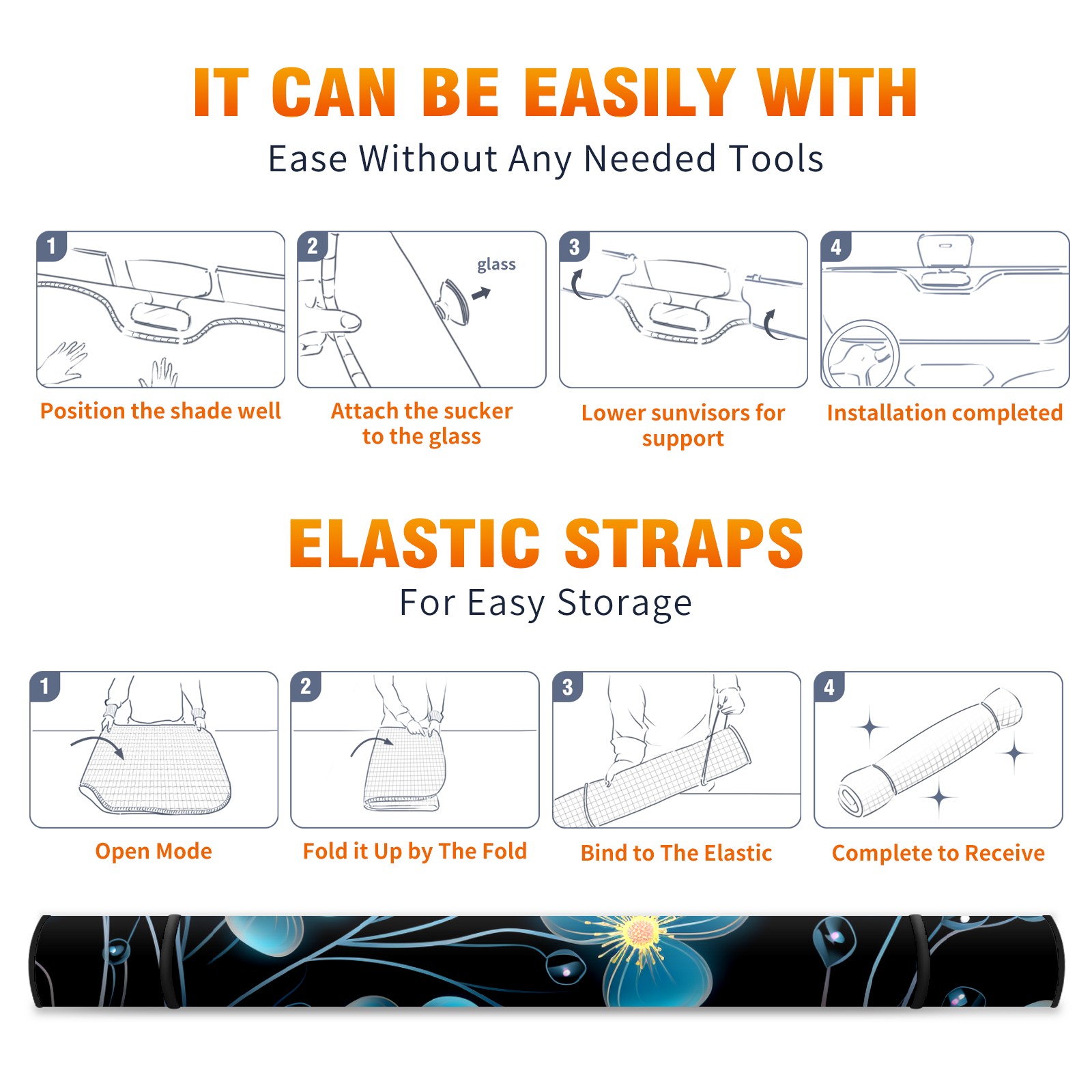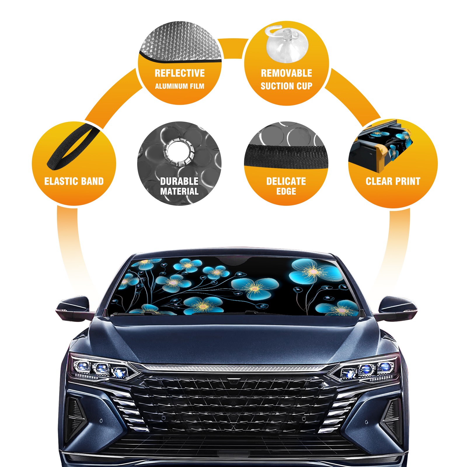Car Windshield Sun Shade for Front Window Flower (297) Foldable Vehicle Windshield Car Sun Visor Covers Automotive Window Protector Car Privacy Sun Blocker