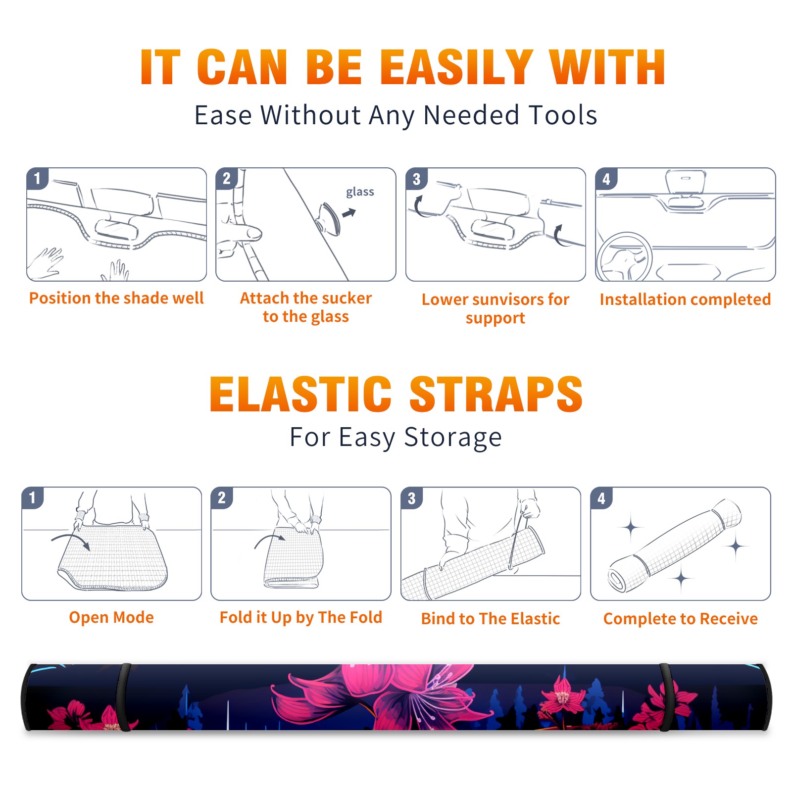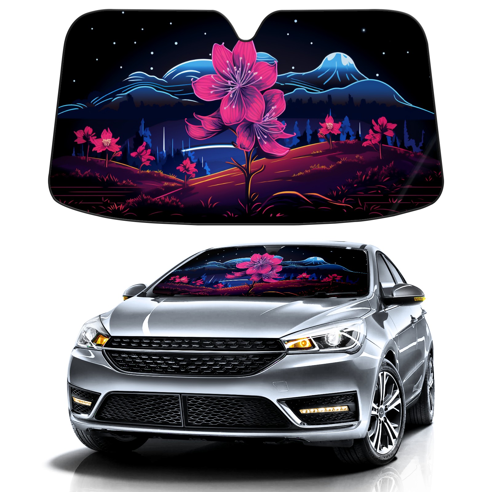 Car Windshield Sun Shade for Front Window Flower (287) Foldable Vehicle Windshield Car Sun Visor Covers Automotive Window Protector Car Privacy Sun Blocker