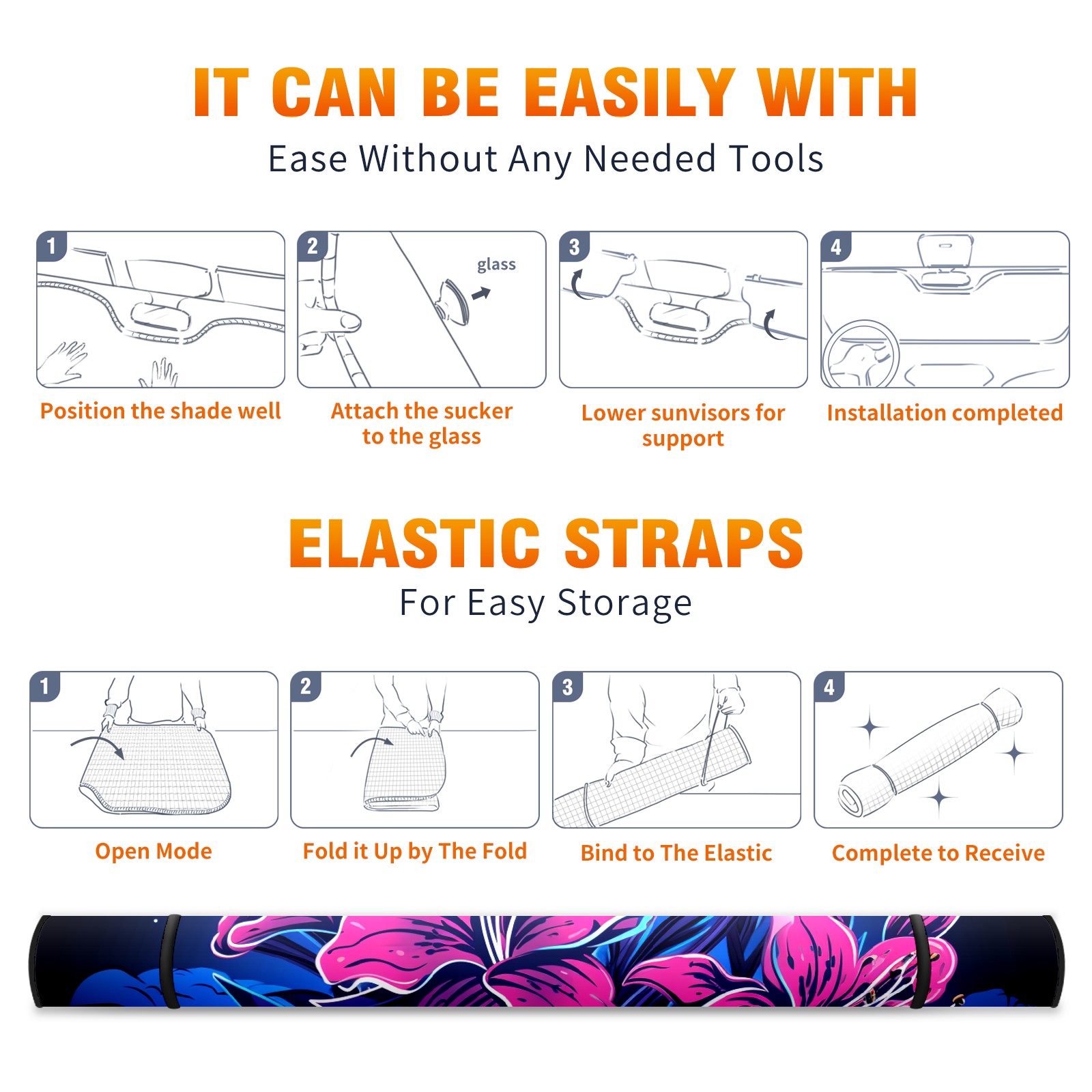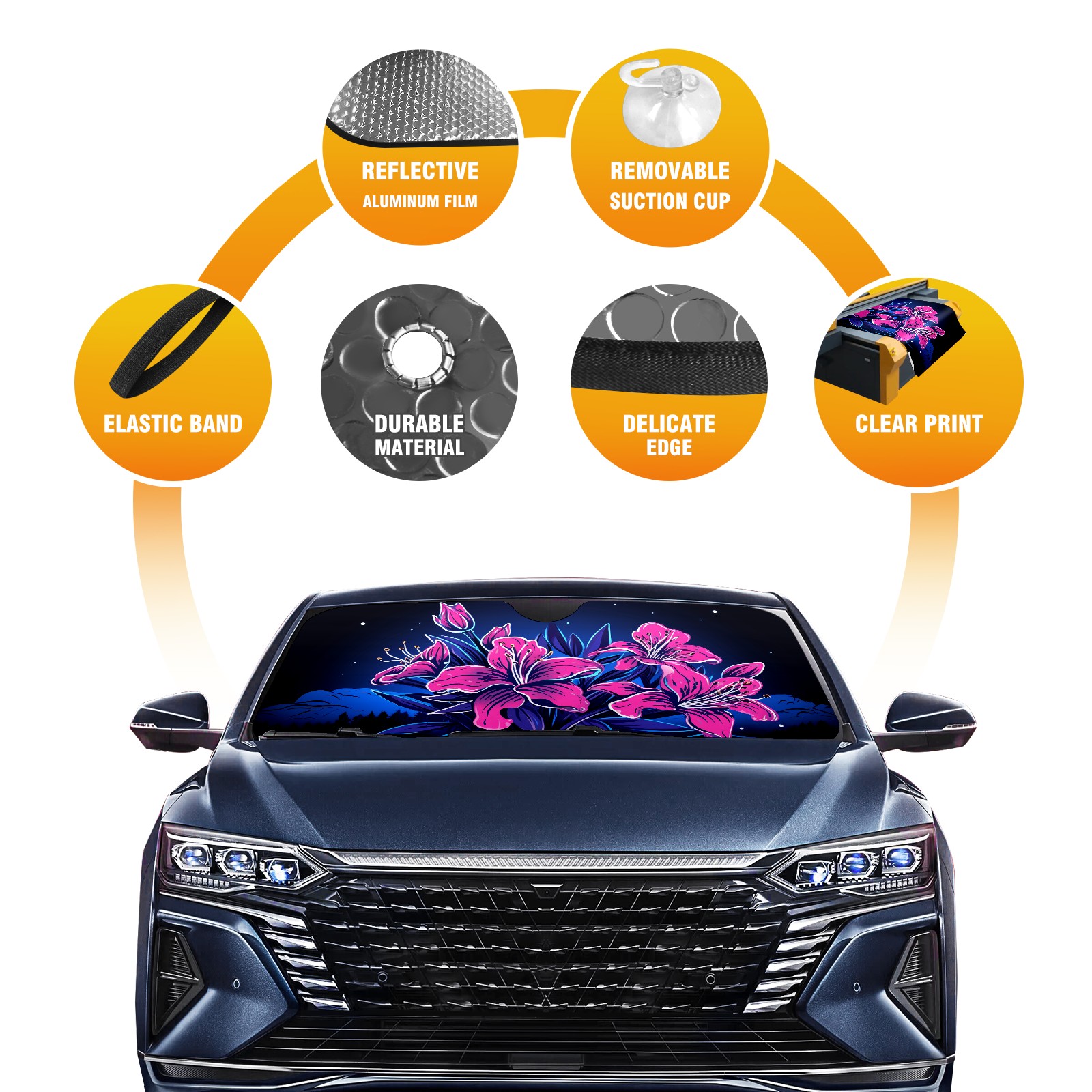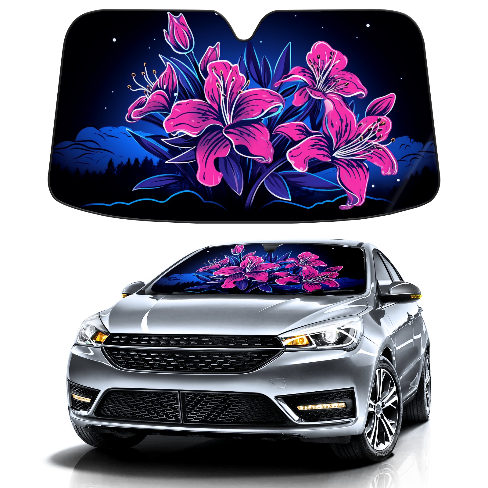 Car Windshield Sun Shade for Front Window Flower (405) Foldable Vehicle Windshield Car Sun Visor Covers Automotive Window Protector Car Privacy Sun Blocker