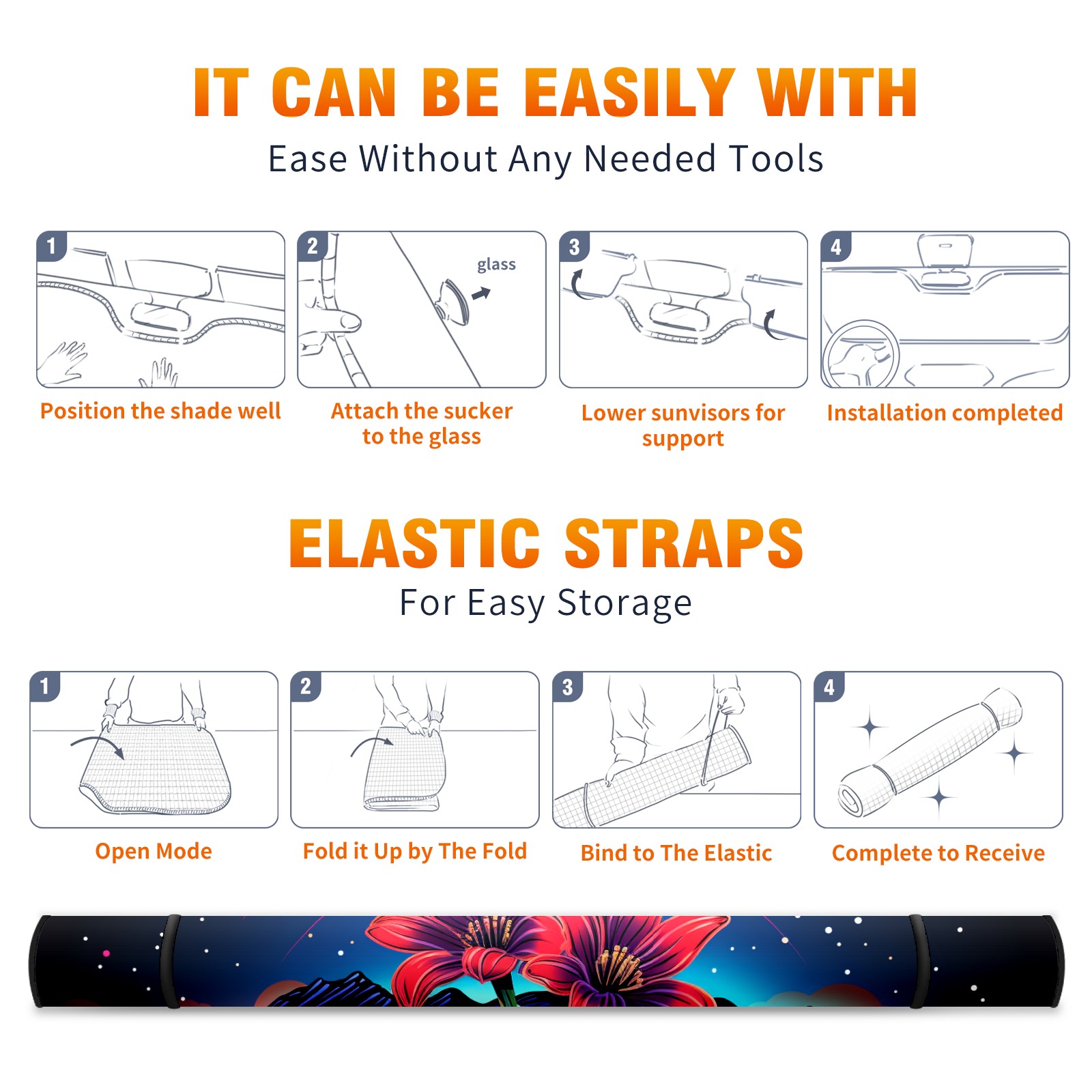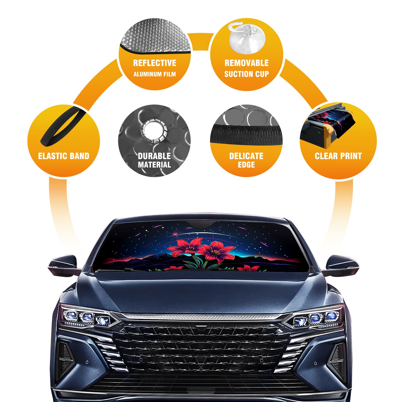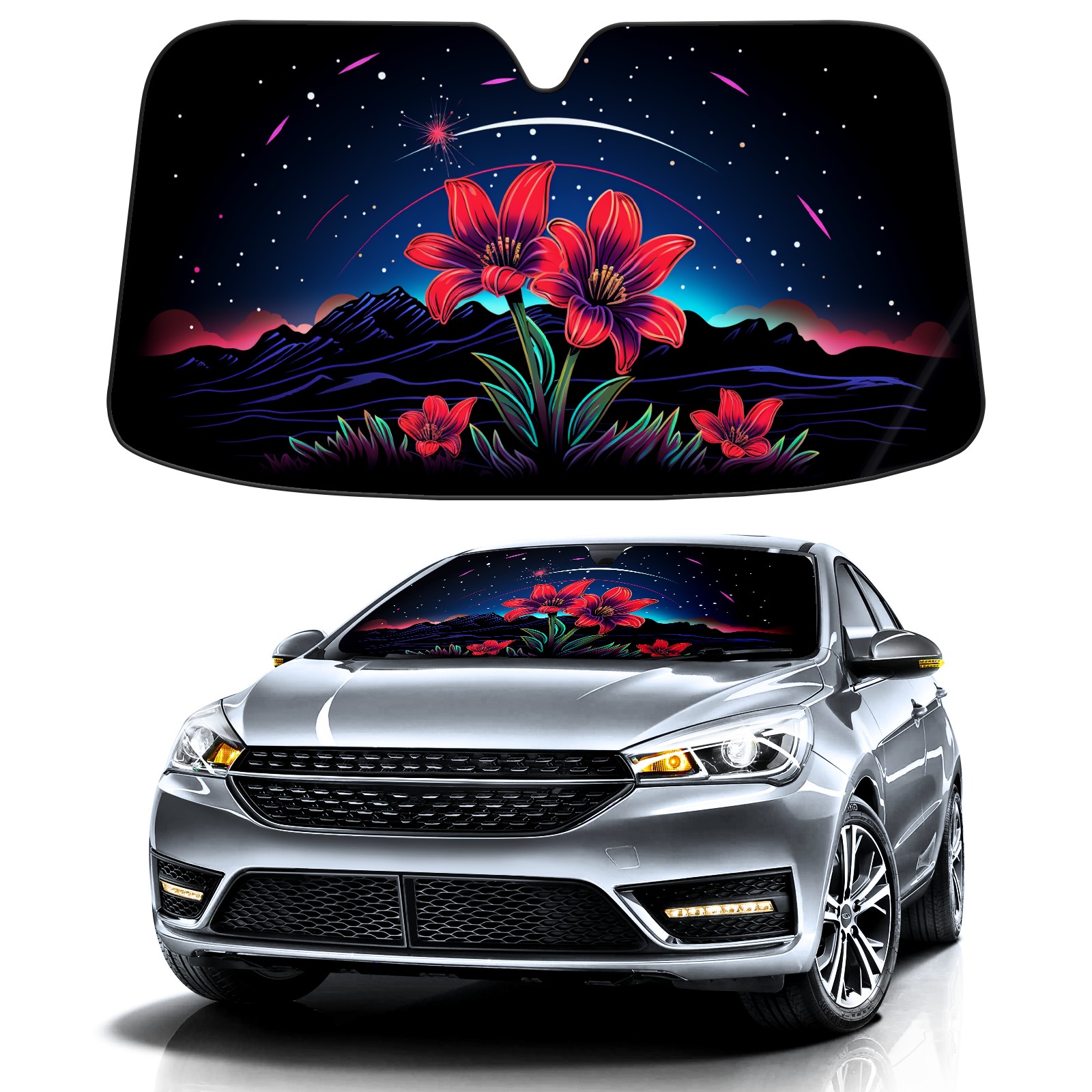 Car Windshield Sun Shade for Front Window Flower (320) Foldable Vehicle Windshield Car Sun Visor Covers Automotive Window Protector Car Privacy Sun Blocker