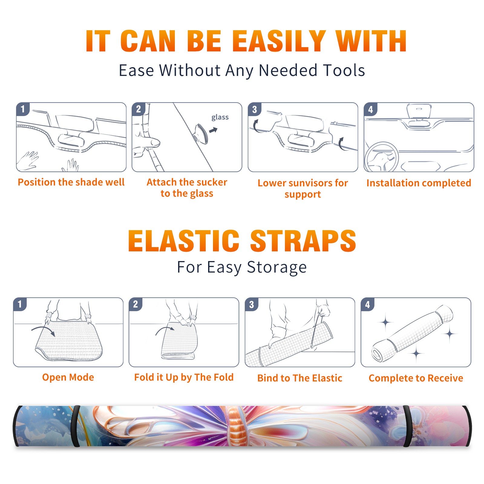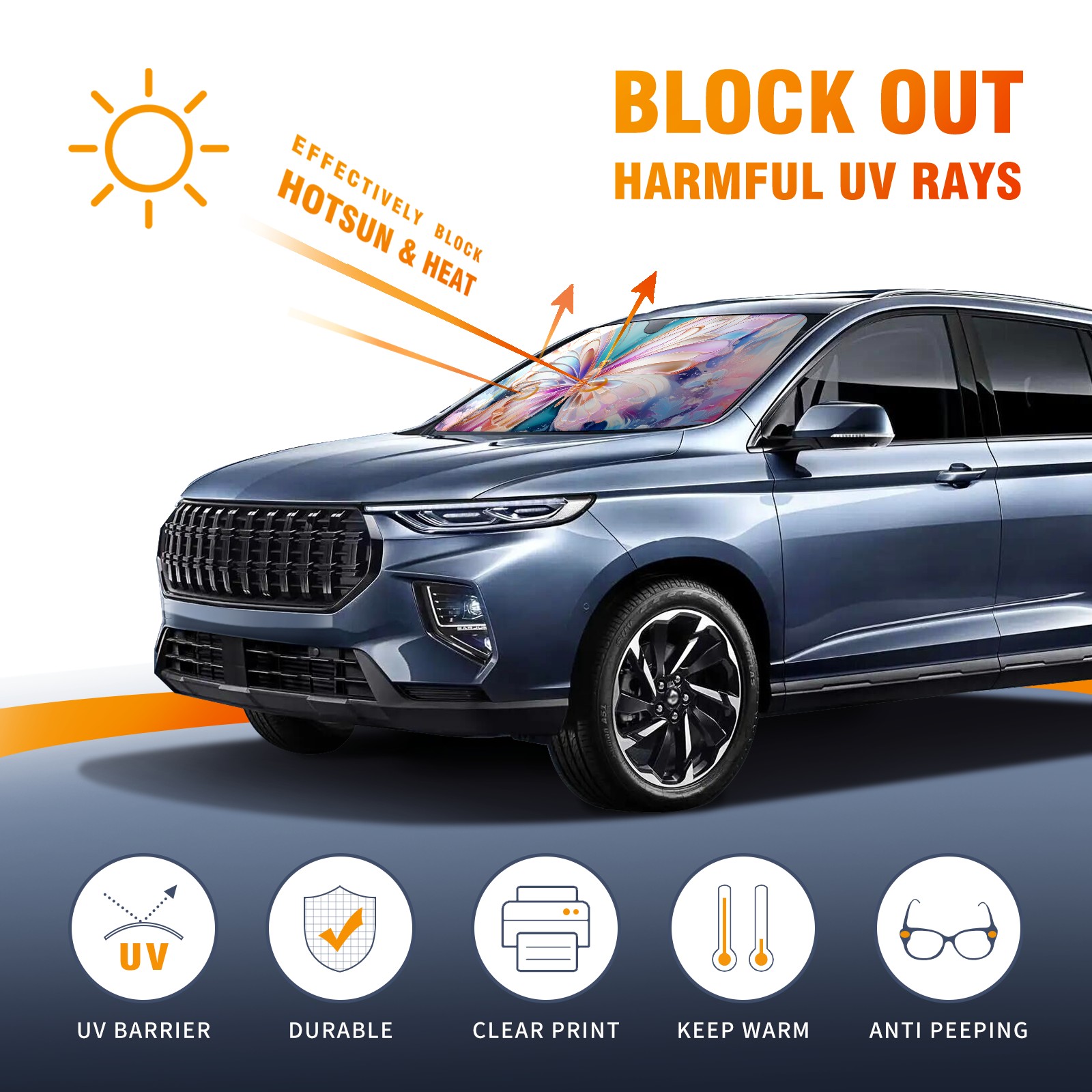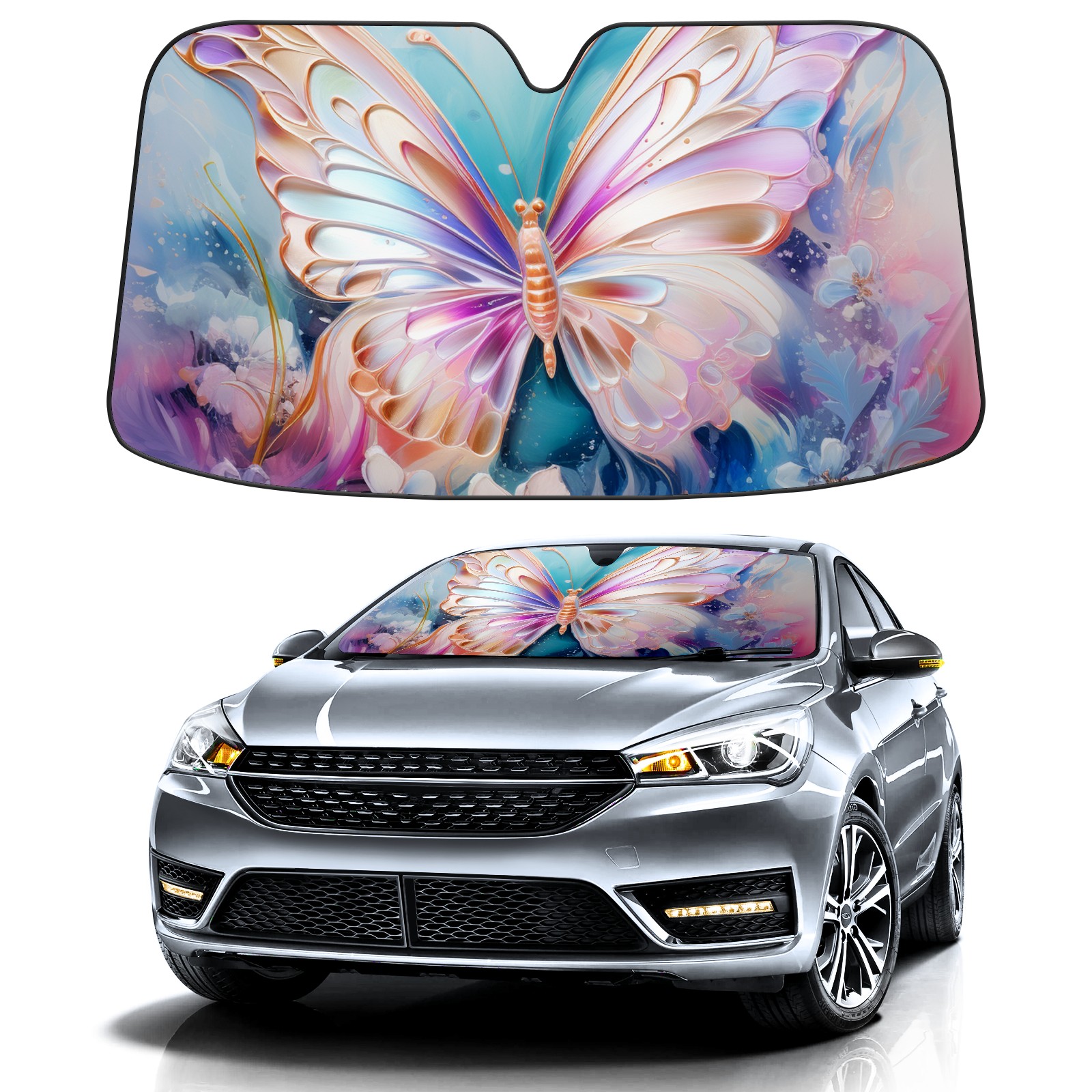 Car Windshield Sun Shade for Front Window Butterfly (5) Foldable Vehicle Windshield Car Sun Visor Covers Automotive Window Protector Car Privacy Sun Blocker
