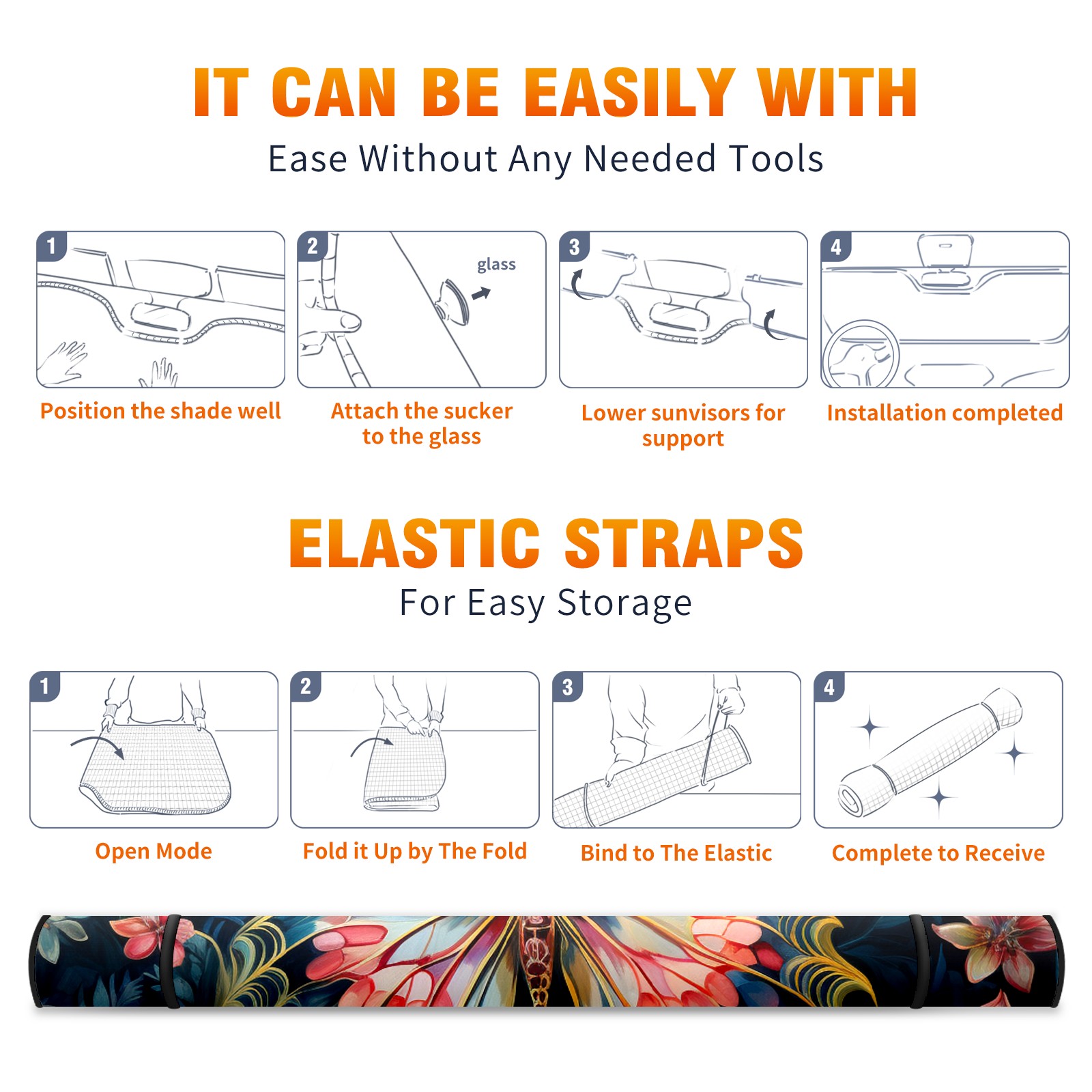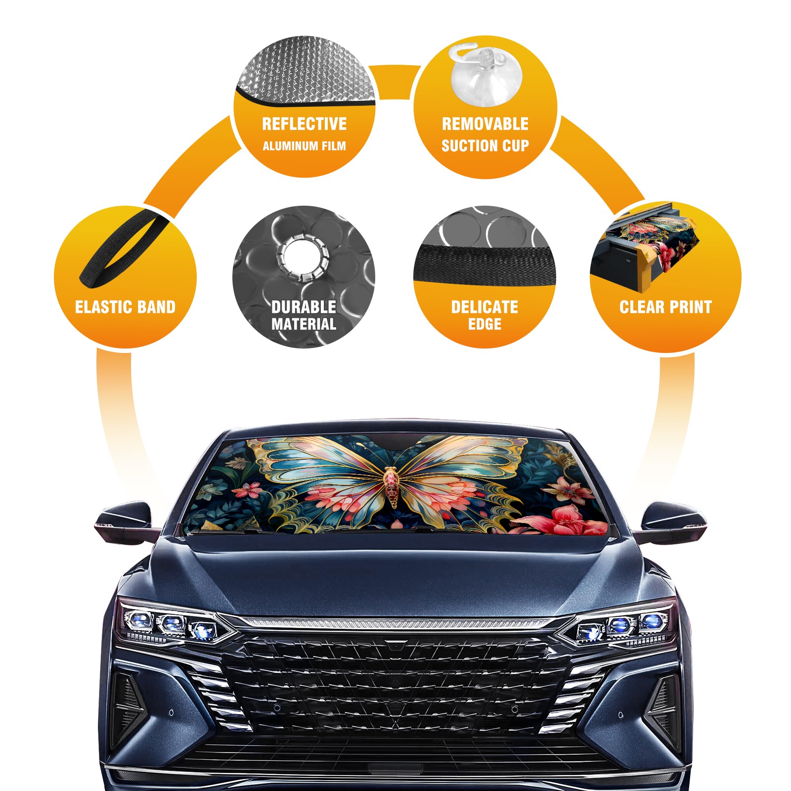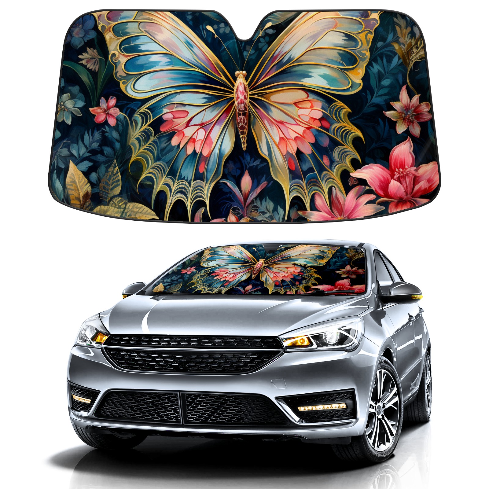 Car Windshield Sun Shade for Front Window Butterfly (3) Foldable Vehicle Windshield Car Sun Visor Covers Automotive Window Protector Car Privacy Sun Blocker