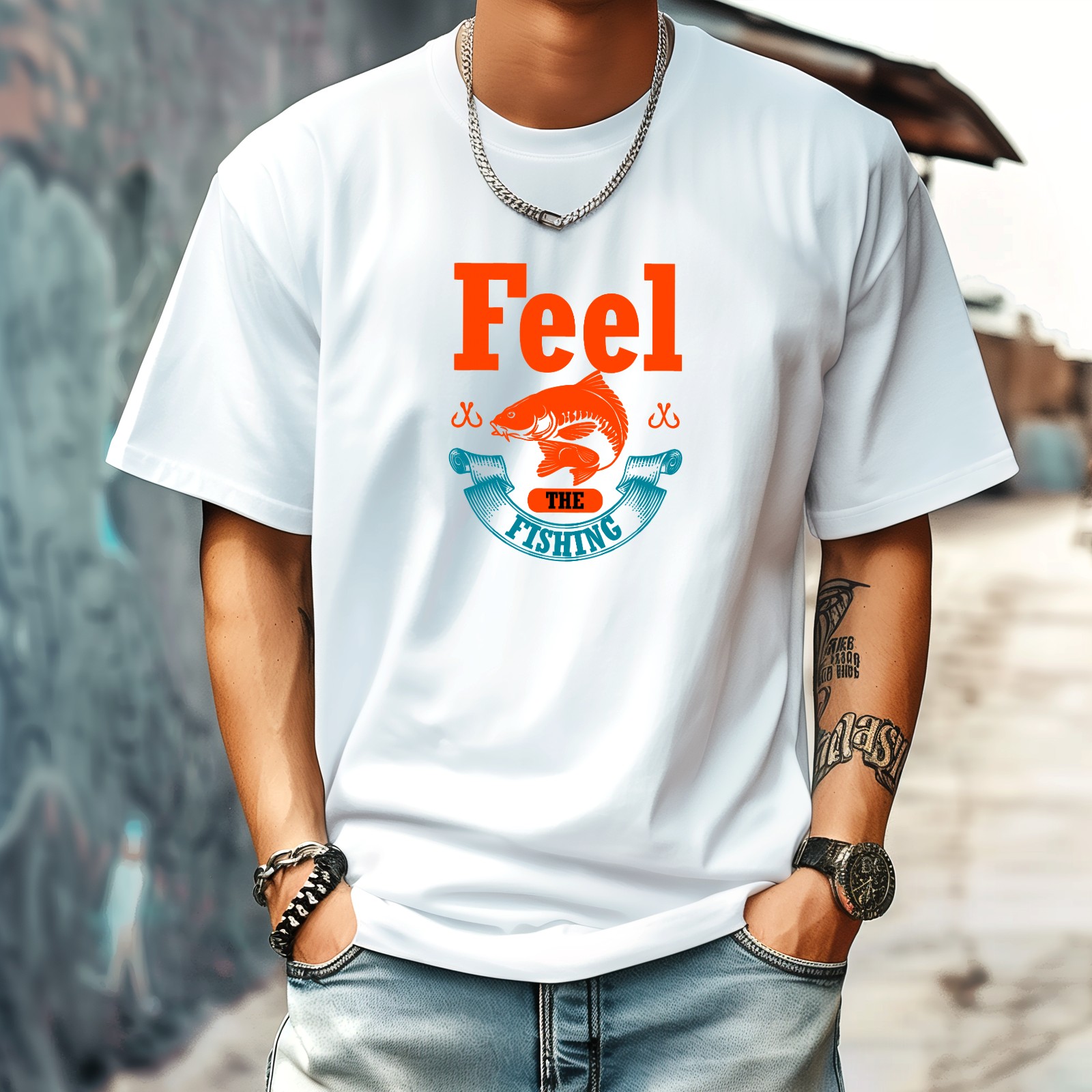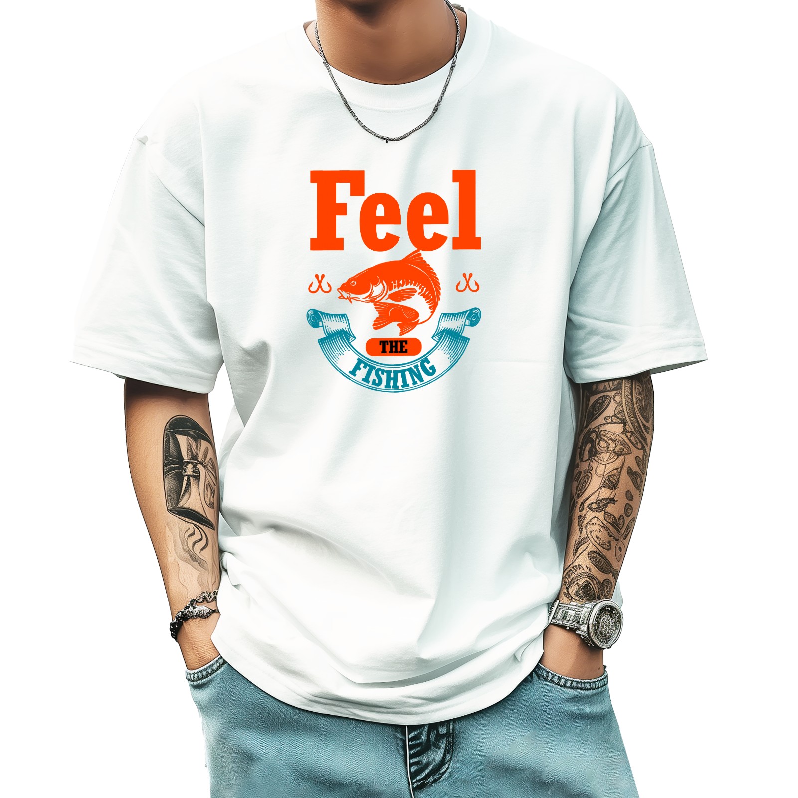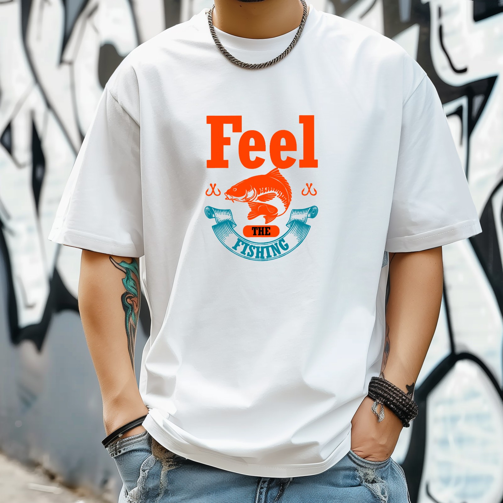 Feel The Fishing T-Shirt for Man Tops Short Sleeves Shirt Crew Neck Shirt XS