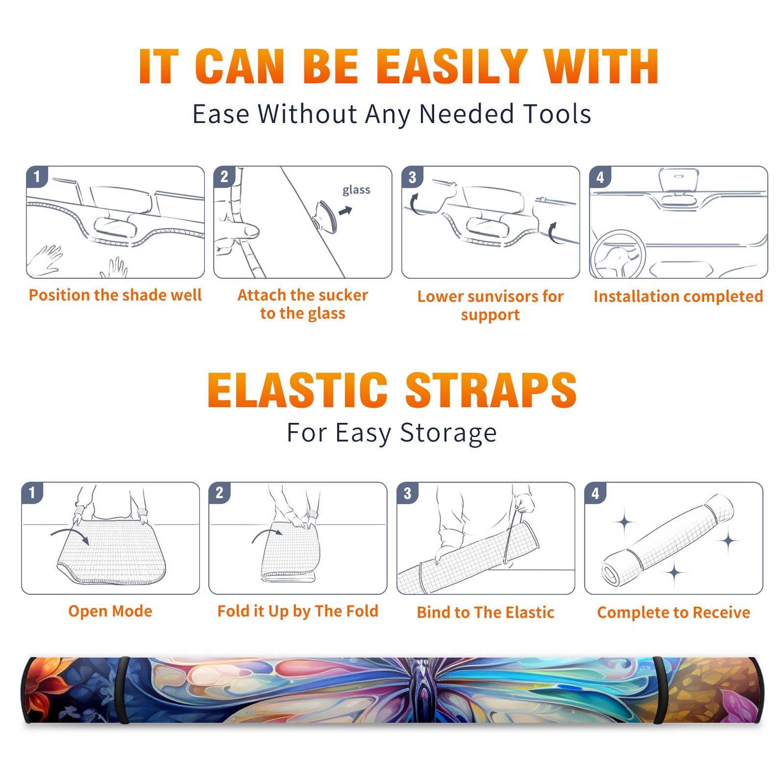 Car Windshield Sun Shade for Front Window Butterfly (13) Foldable Vehicle Windshield Car Sun Visor Covers Automotive Window Protector Car Privacy Sun Blocker