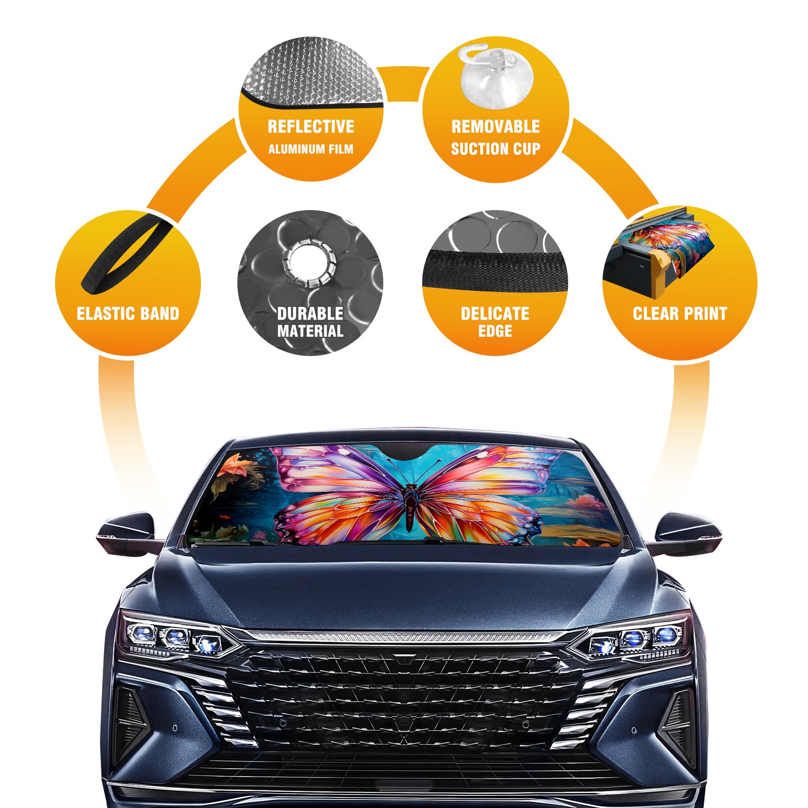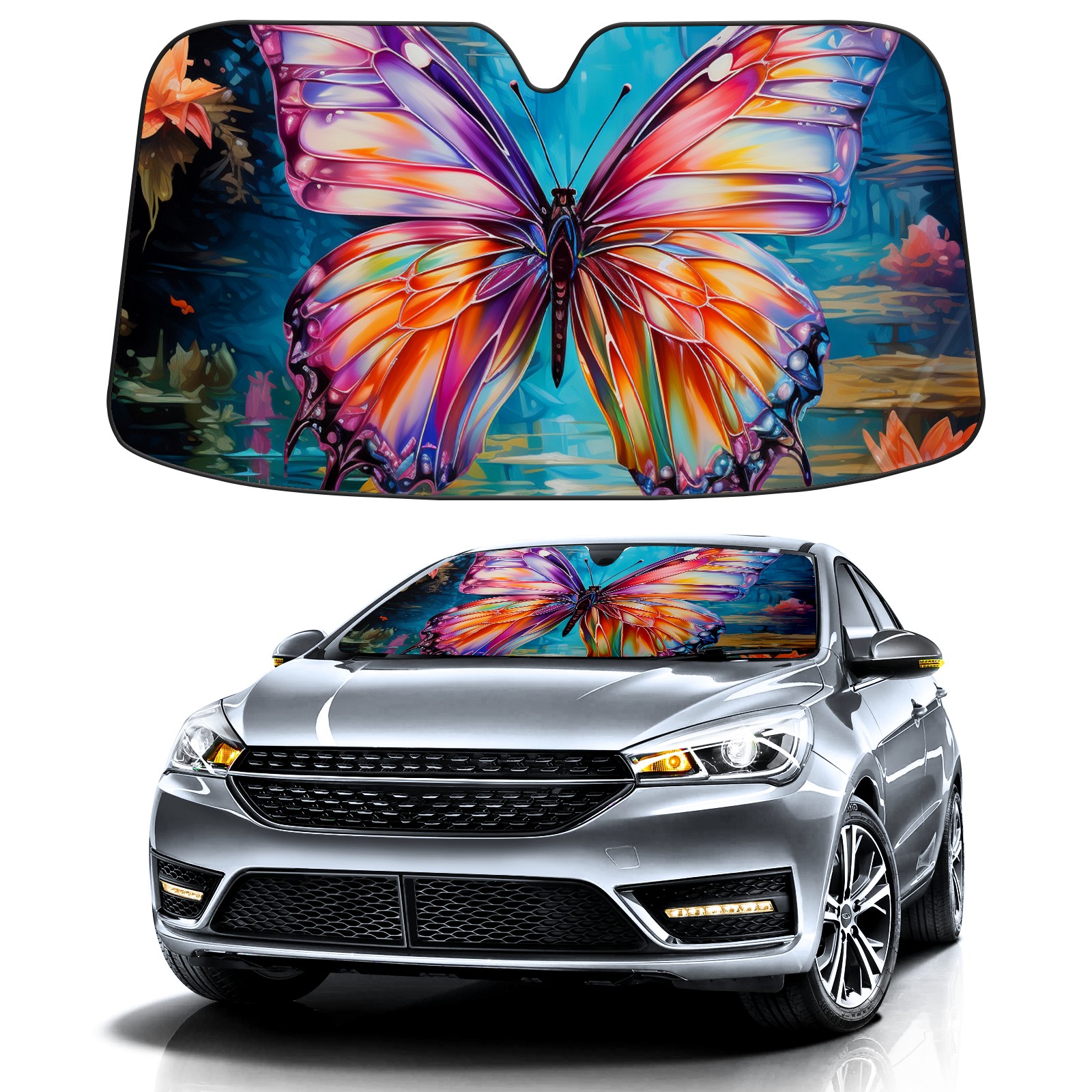 Car Windshield Sun Shade for Front Window Butterfly (10) Foldable Vehicle Windshield Car Sun Visor Covers Automotive Window Protector Car Privacy Sun Blocker