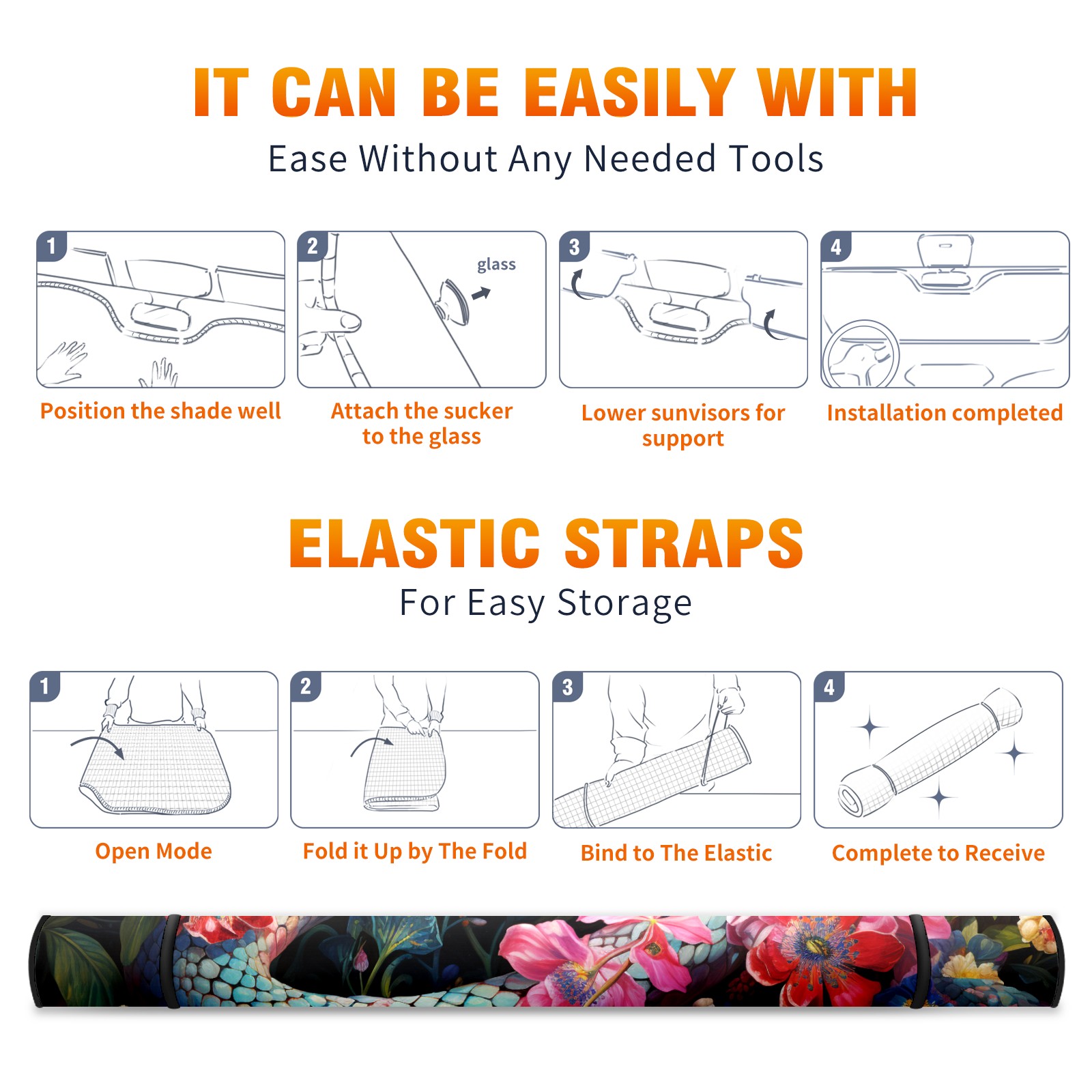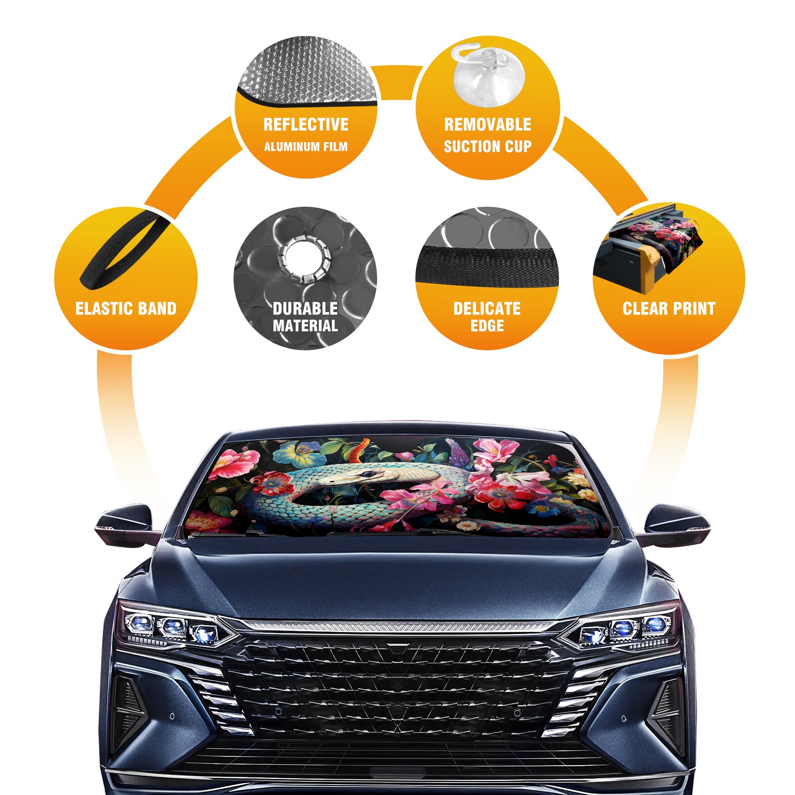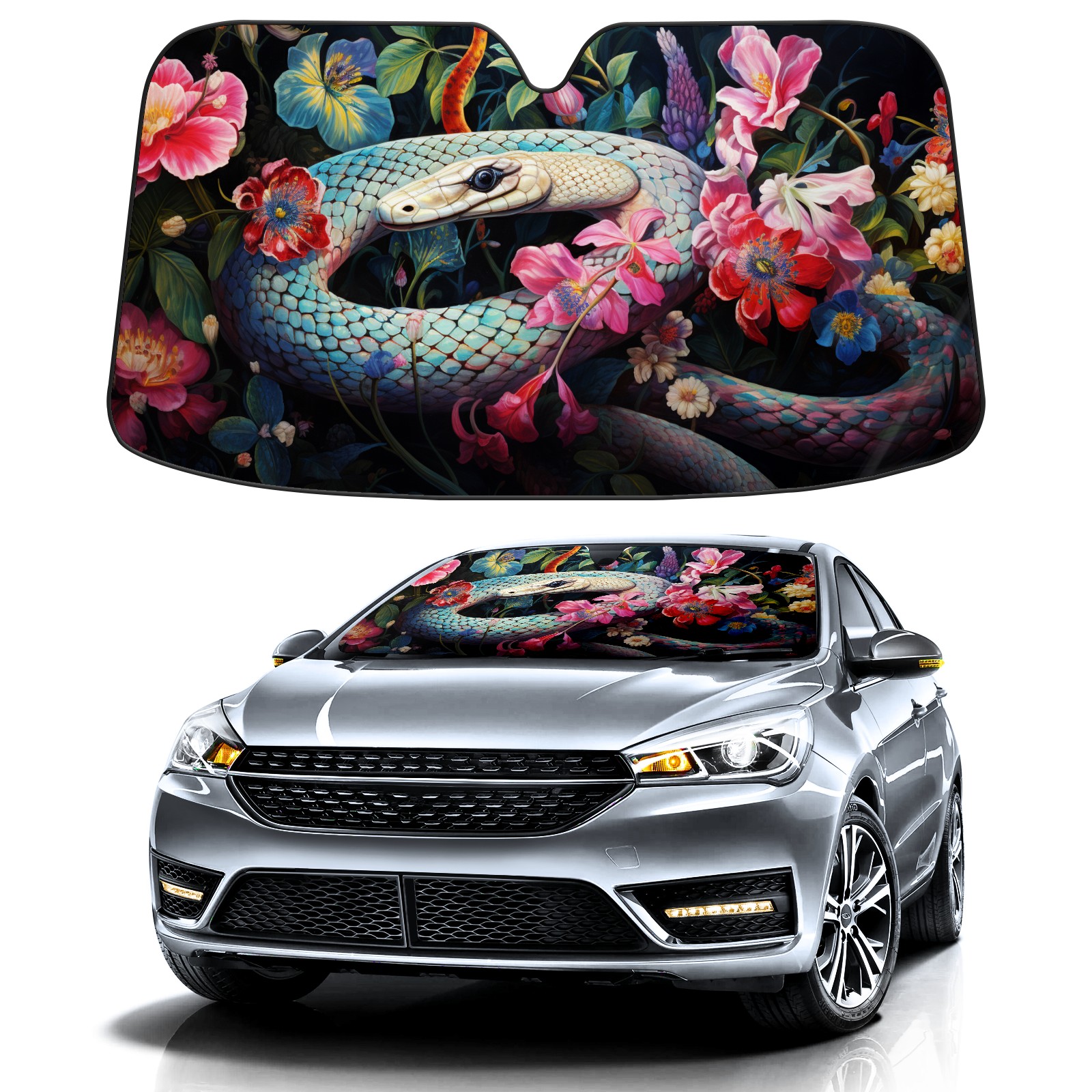 Car Windshield Sun Shade for Front Window Snake (16) Foldable Vehicle Windshield Car Sun Visor Covers Automotive Window Protector Car Privacy Sun Blocker