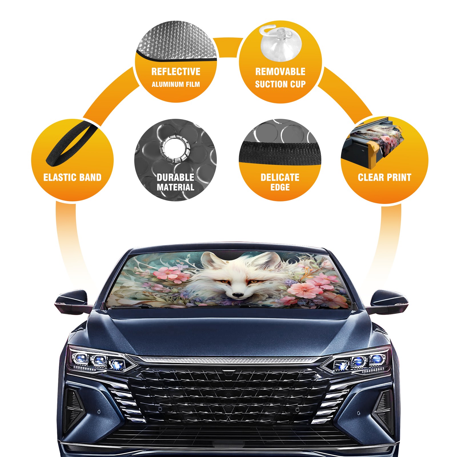 Car Windshield Sun Shade for Front Window Fox (9) Foldable Vehicle Windshield Car Sun Visor Covers Automotive Window Protector Car Privacy Sun Blocker