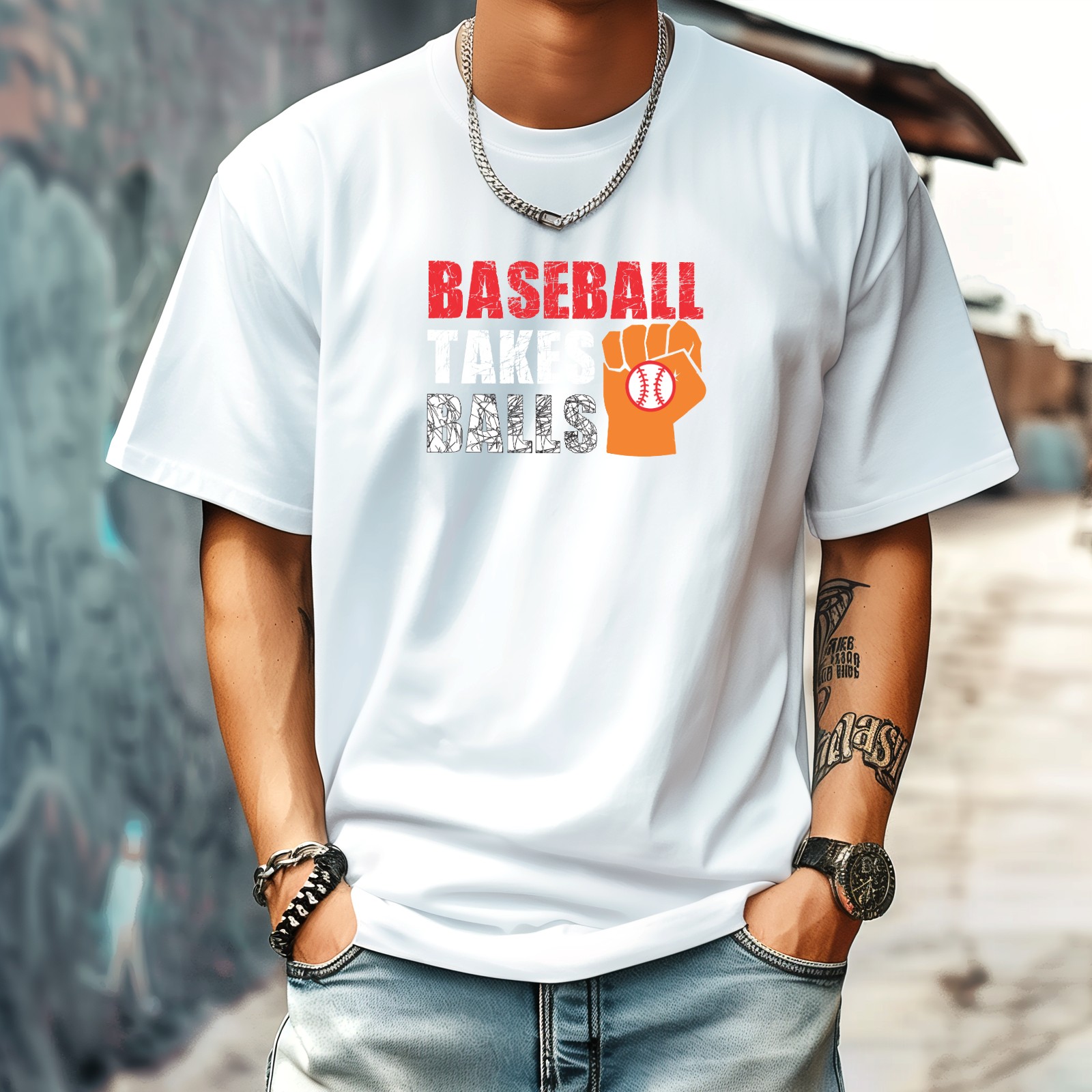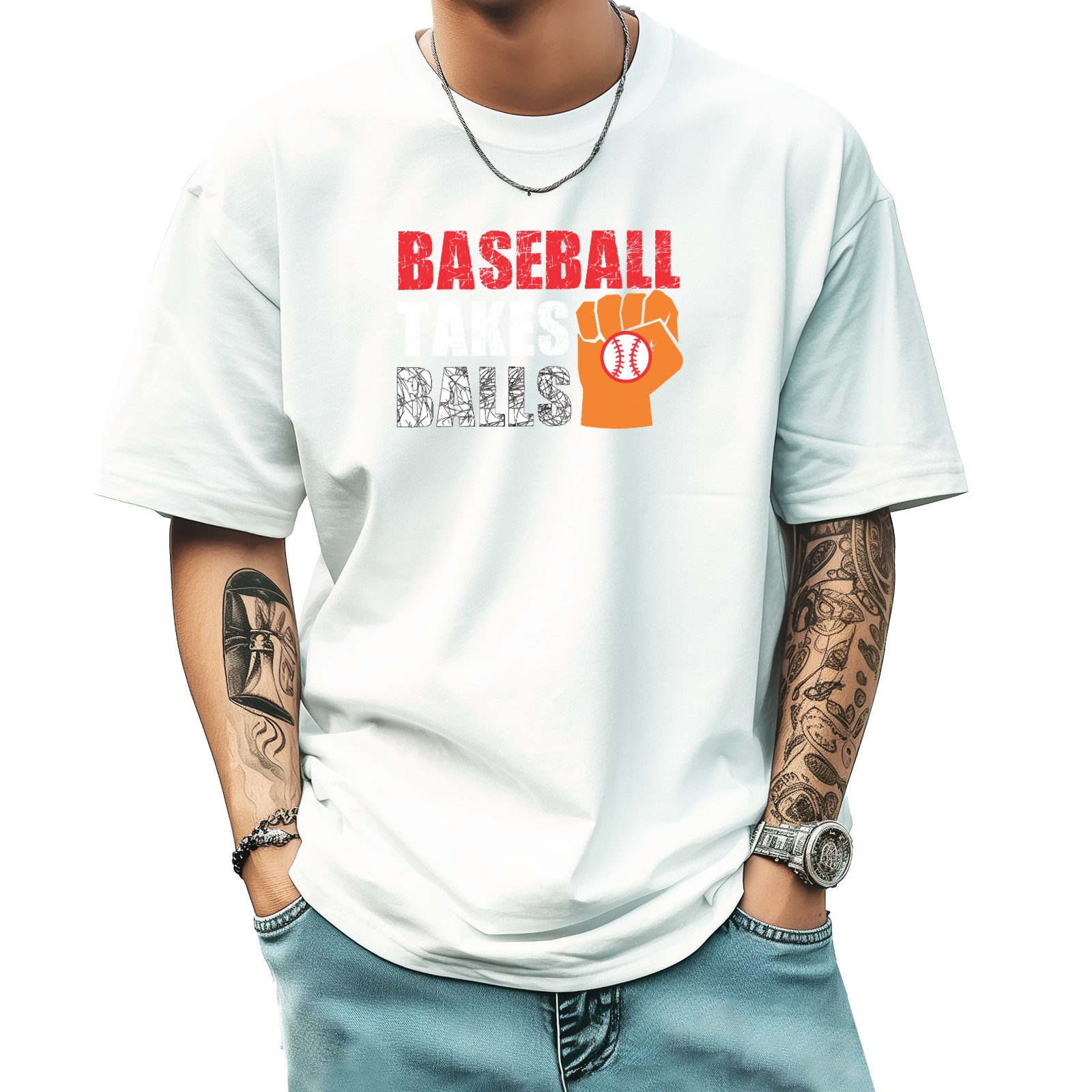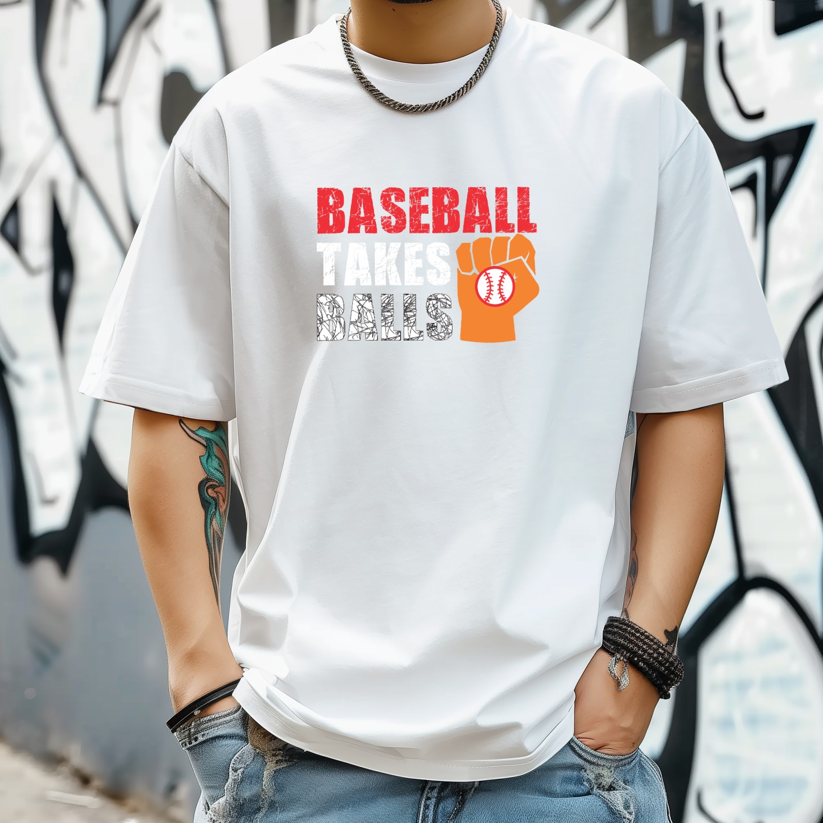 Baseball Takes Balls (2) T-Shirt for Man Tops Short Sleeves Shirt Crew Neck Shirt XS