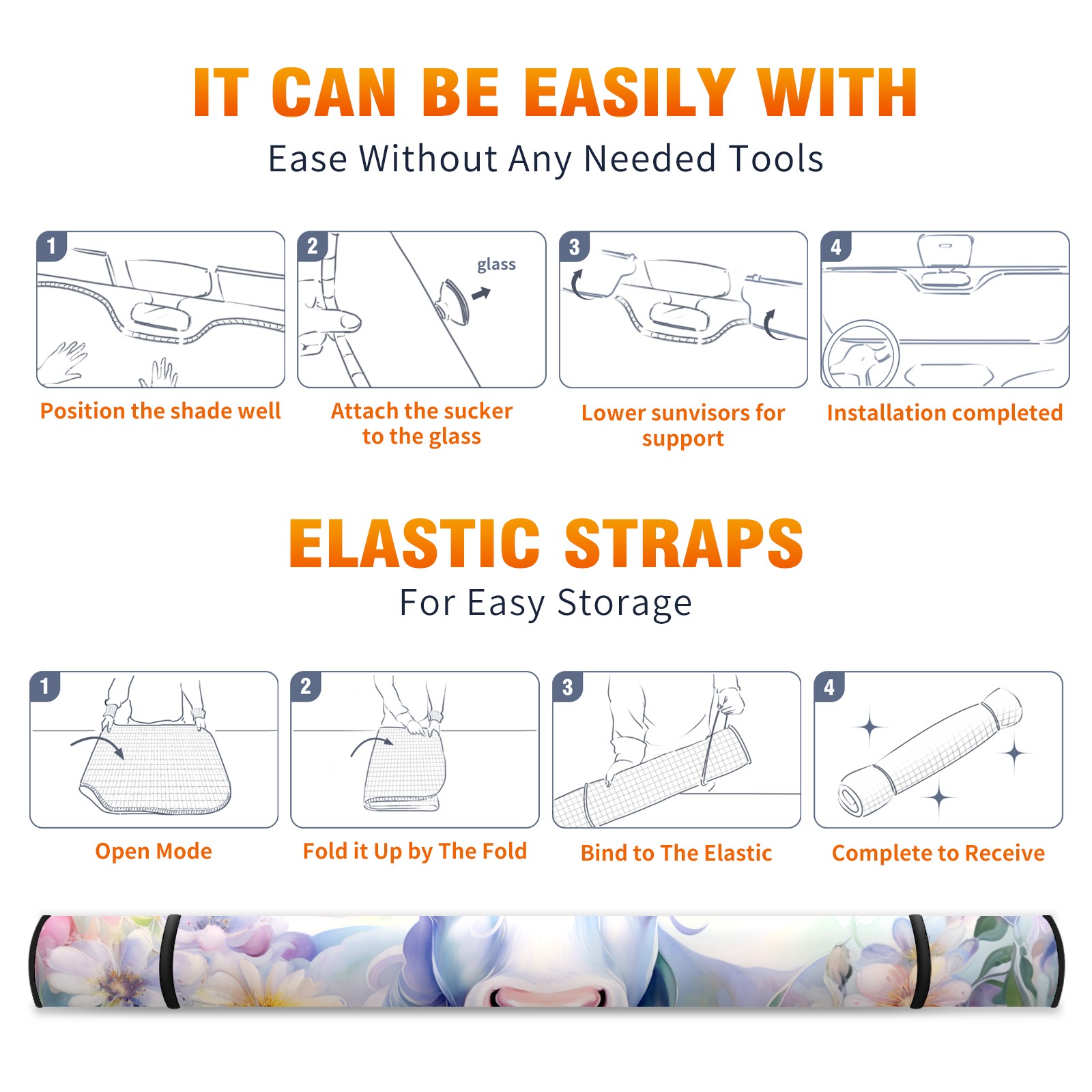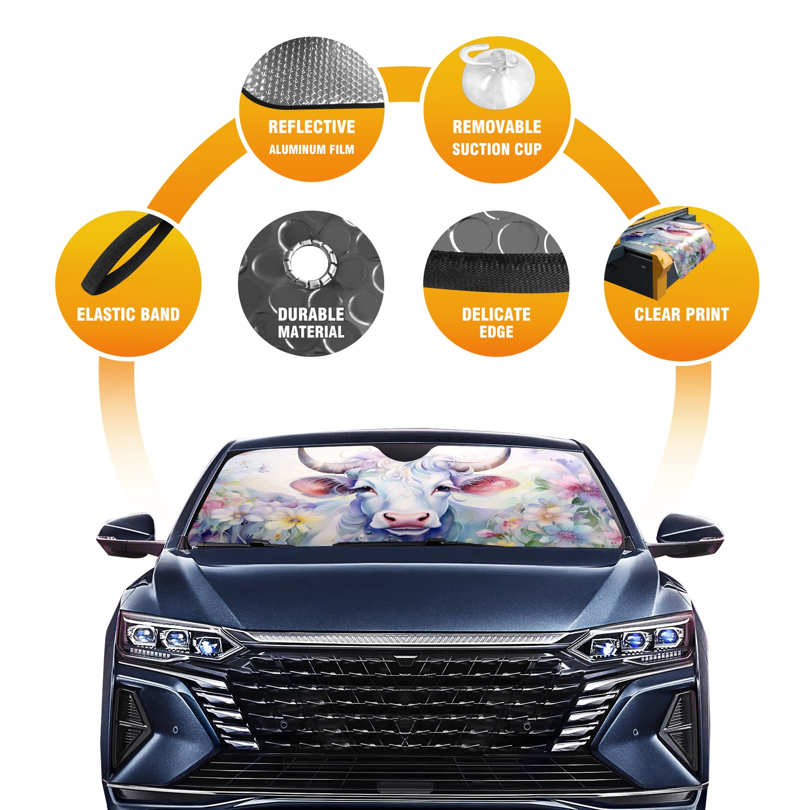 Car Windshield Sun Shade for Front Window Cow (3) Foldable Vehicle Windshield Car Sun Visor Covers Automotive Window Protector Car Privacy Sun Blocker