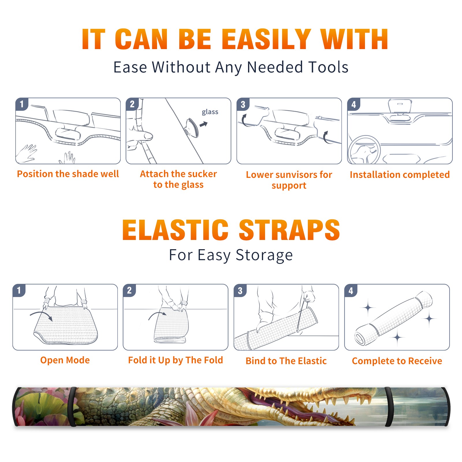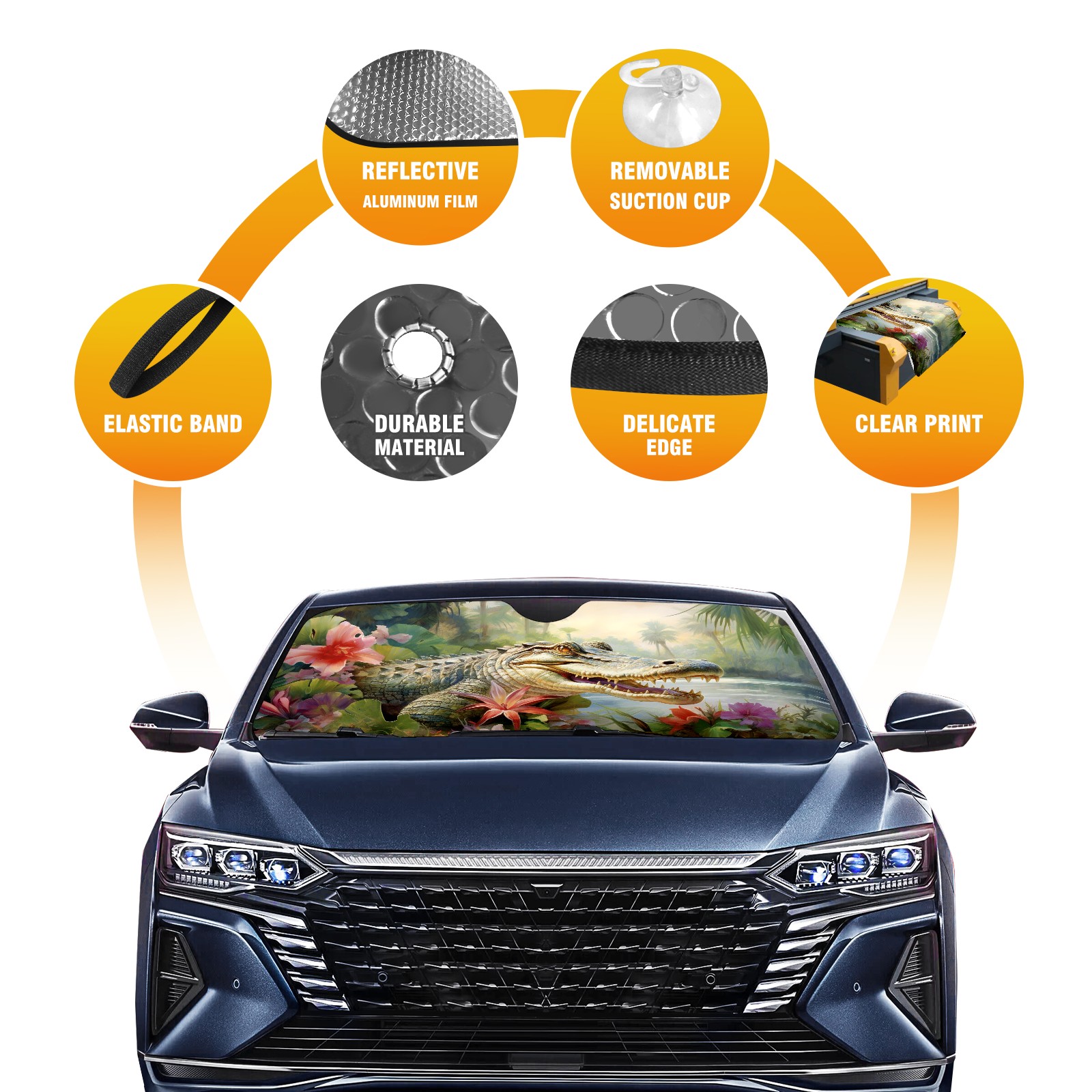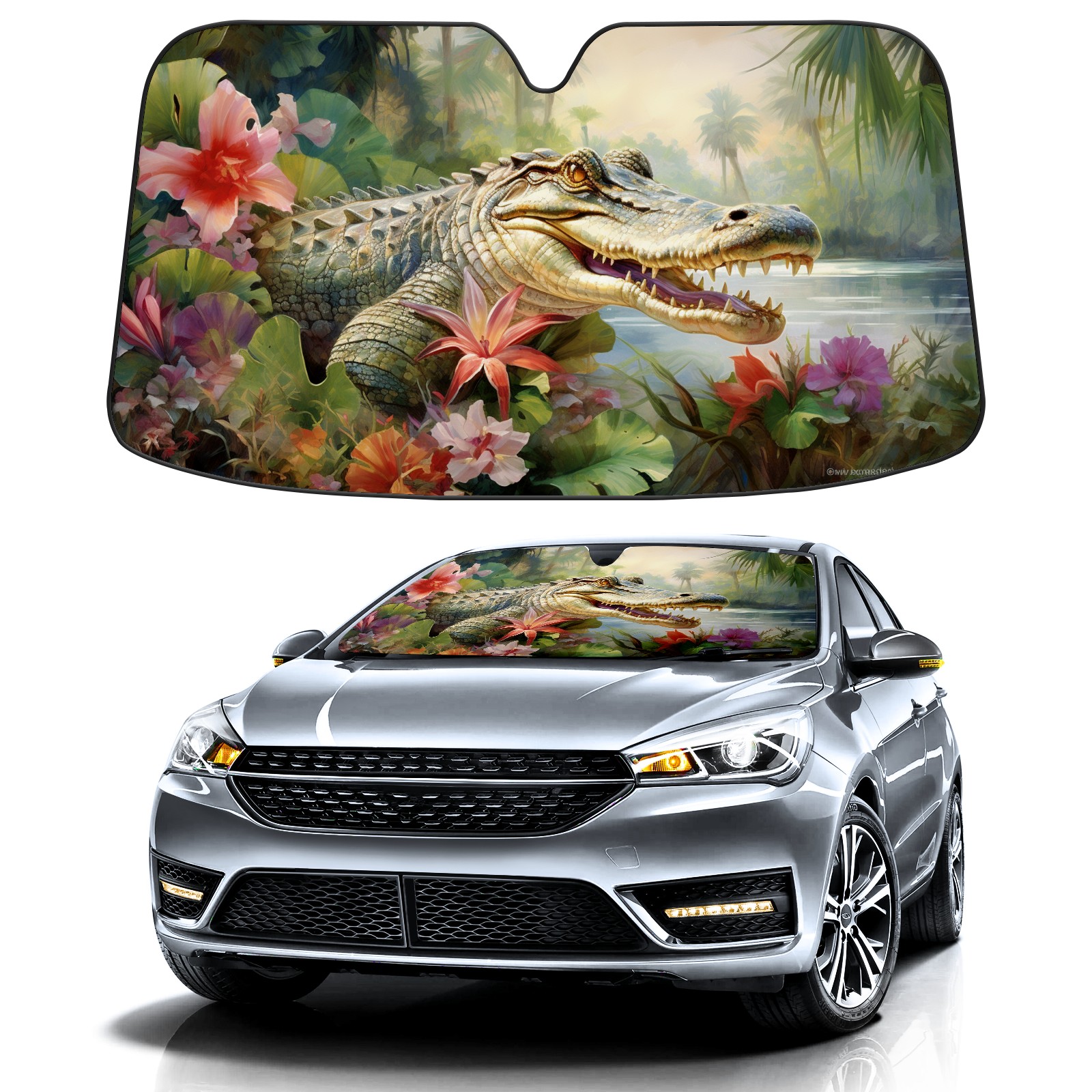 Car Windshield Sun Shade for Front Window Crocodile (43) Foldable Vehicle Windshield Car Sun Visor Covers Automotive Window Protector Car Privacy Sun Blocker