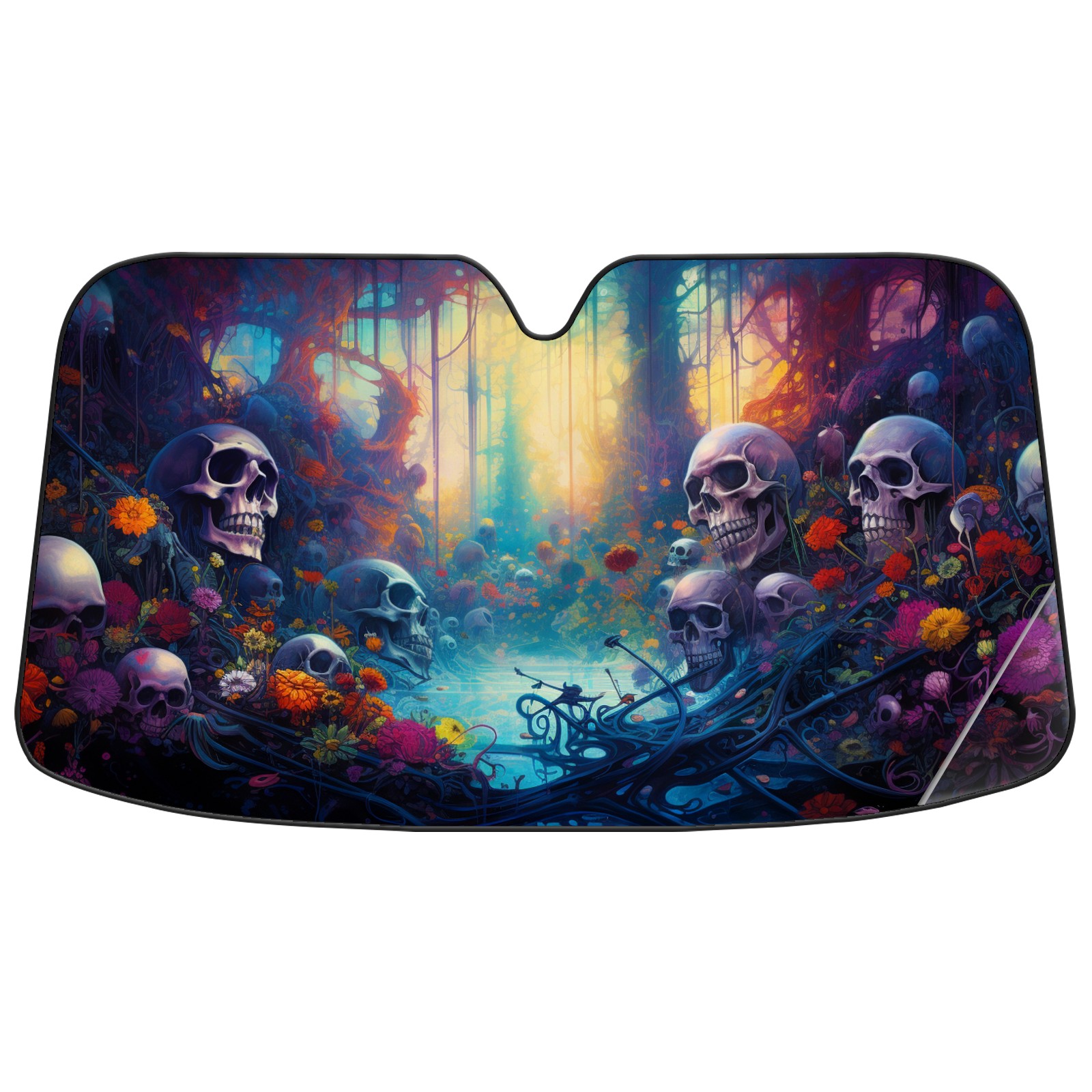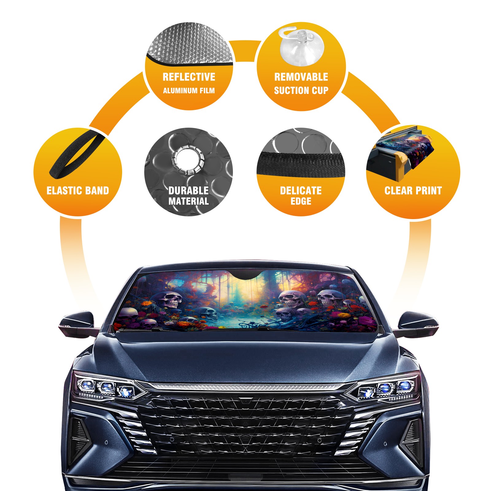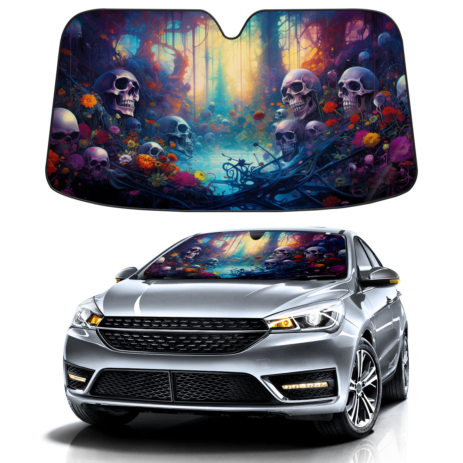 Car Windshield Sun Shade for Front Window Skull (5) Foldable Vehicle Windshield Car Sun Visor Covers Automotive Window Protector Car Privacy Sun Blocker