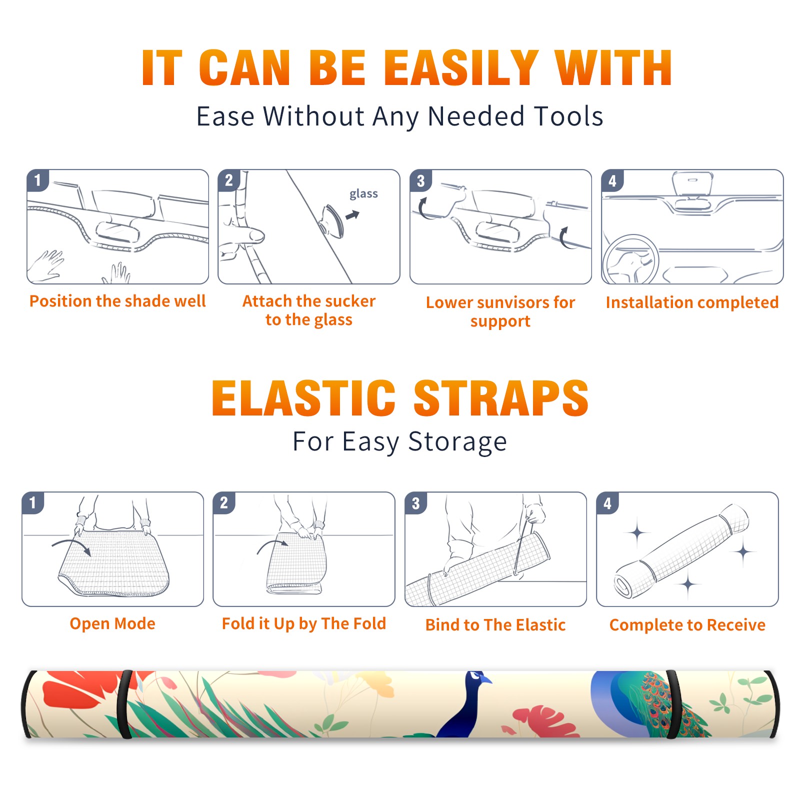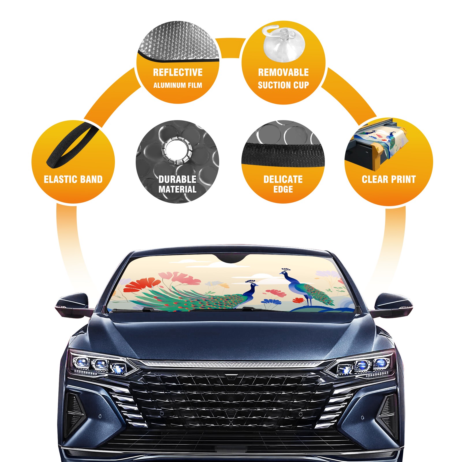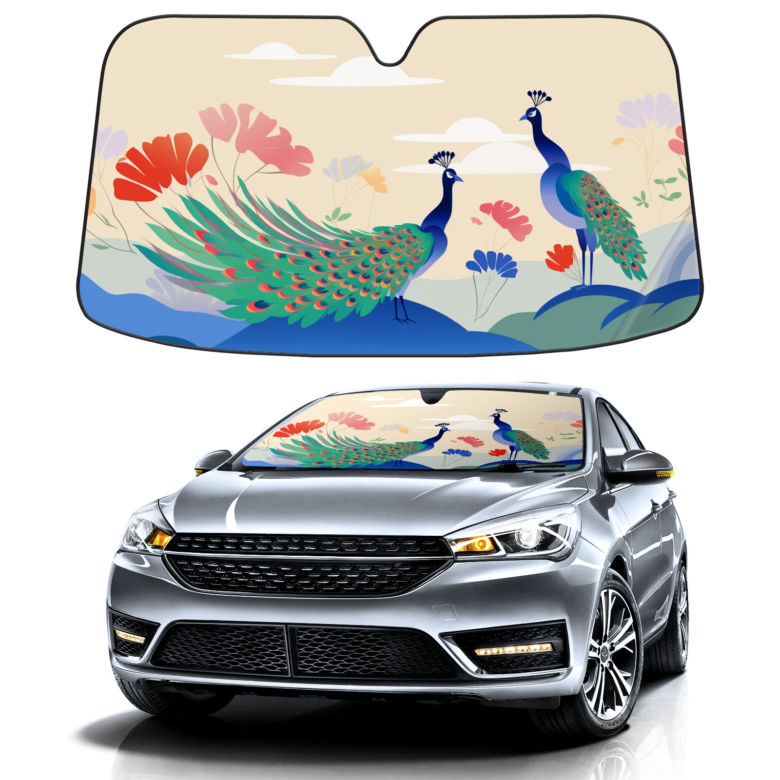 Car Windshield Sun Shade for Front Window Peacock (10) Foldable Vehicle Windshield Car Sun Visor Covers Automotive Window Protector Car Privacy Sun Blocker