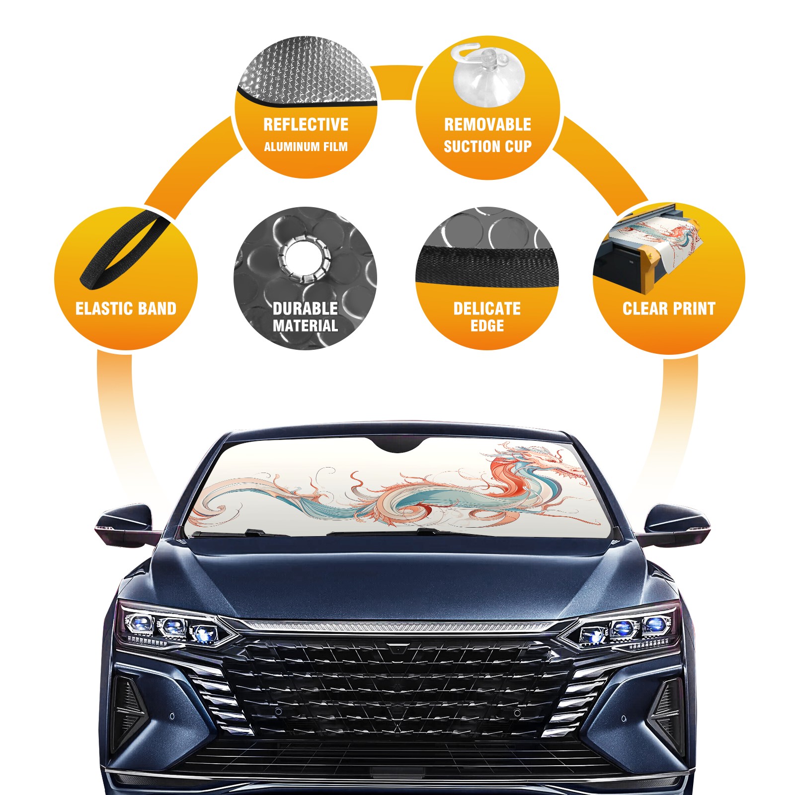 Car Windshield Sun Shade for Front Window Chinese Dragon (16) Foldable Vehicle Windshield Car Sun Visor Covers Automotive Window Protector Car Privacy Sun Blocker