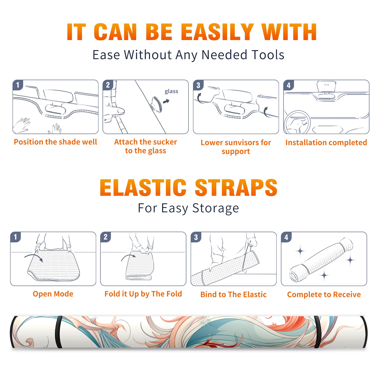 Diameter /Size 63"L x 33.5"W</b><br> Made from excellent materials which makes it sturdy and protects the car from the sun. Easy to use and pack. Makes the interior of the car cooler.You can easily stash the sunshade in the storage bag or store long term.It open and closes easy. Also the leather storage bag is durable and easy to put the umbrella back into.This windshield sunshade provides complete coverage and keeps your car interior cool under direct sun. It is easy to open and position under the windshield and around the rear-view mirror. Makes Your Car Easy To Identify, Perfect For Finding Your Car In Crowded Parking Lots And Garages.Great Choice: It Is A Great Gift For Dad, Boyfriend, Brother, Brother And Uncle, Friends, Classmates, Family And So On.<br> Notice:</b><br> Due To Difference Computer Monitors, The Color Maybe Slightly Different From Picture. As Different Measurement Methods, Measurement Data Will Float Within 2%.I Hope You Understand.<br> If You Have Any Question About The Item Please Do Not Hesitate To Contact Us Immediately And We Will Give You A Satisfactory Reply Within 24 Hours.