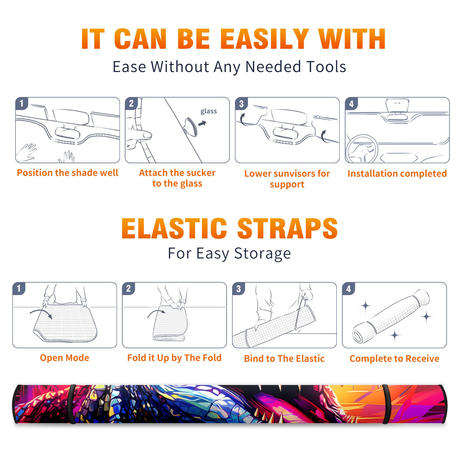 • Diameter /Size 63"L x 33.5"W</b><br> Made from excellent materials which makes it sturdy and protects the car from the sun. Easy to use and pack. Makes the interior of the car cooler.You can easily stash the sunshade in the storage bag or store long term.It open and closes easy. Also the leather storage bag is durable and easy to put the umbrella back into.This windshield sunshade provides complete coverage and keeps your car interior cool under direct sun. It is easy to open and position under the windshield and around the rear-view mirror. Makes Your Car Easy To Identify, Perfect For Finding Your Car In Crowded Parking Lots And Garages.Great Choice: It Is A Great Gift For Dad, Boyfriend, Brother, Brother And Uncle, Friends, Classmates, Family And So On.<br> Notice:</b><br> Due To Difference Computer Monitors, The Color Maybe Slightly Different From Picture. As Different Measurement Methods, Measurement Data Will Float Within 2%.I Hope You Understand.<br> If You Have Any Question About The Item Please Do Not Hesitate To Contact Us Immediately And We Will Give You A Satisfactory Reply Within 24 Hours.