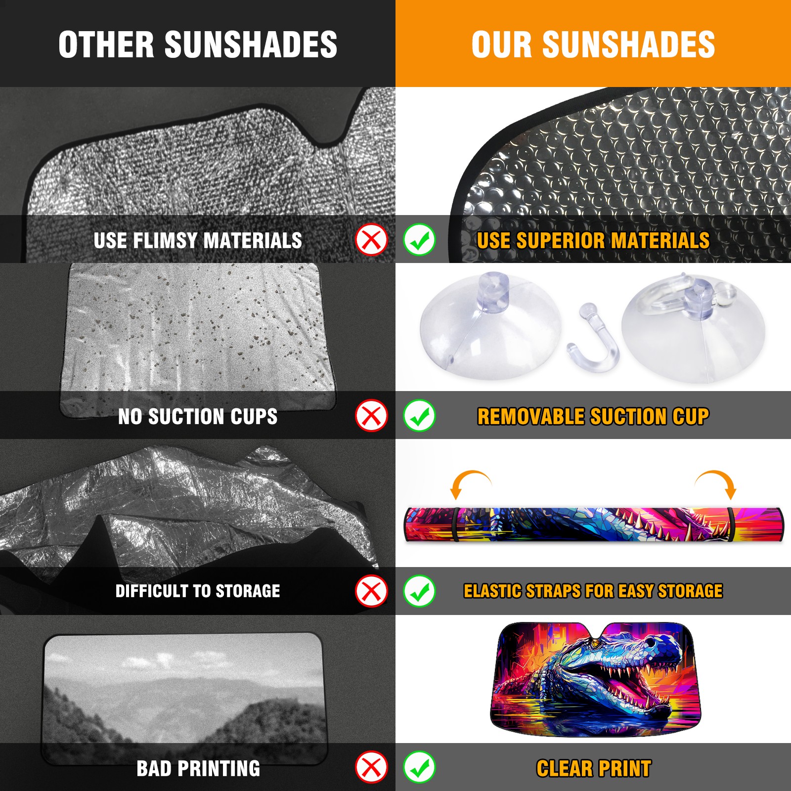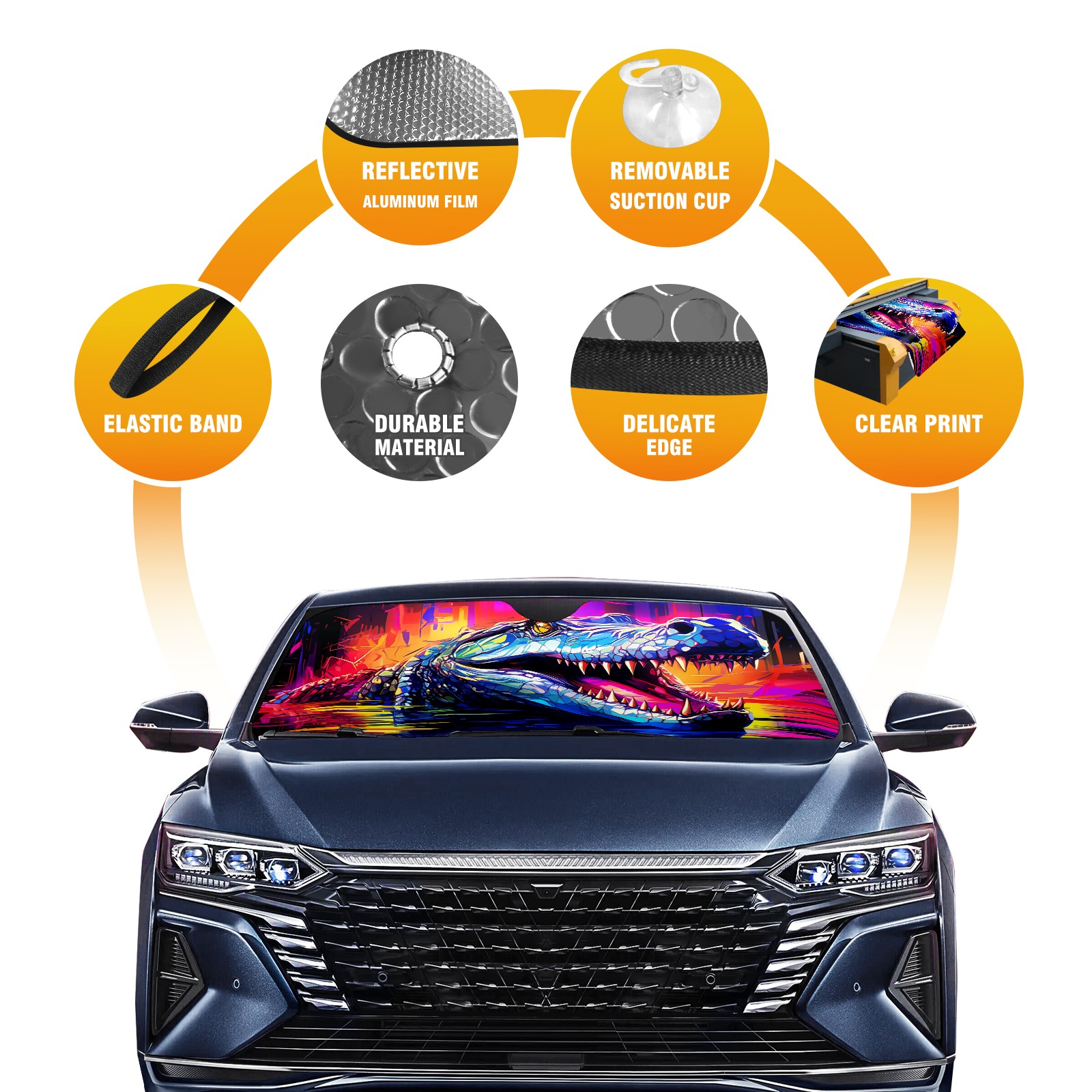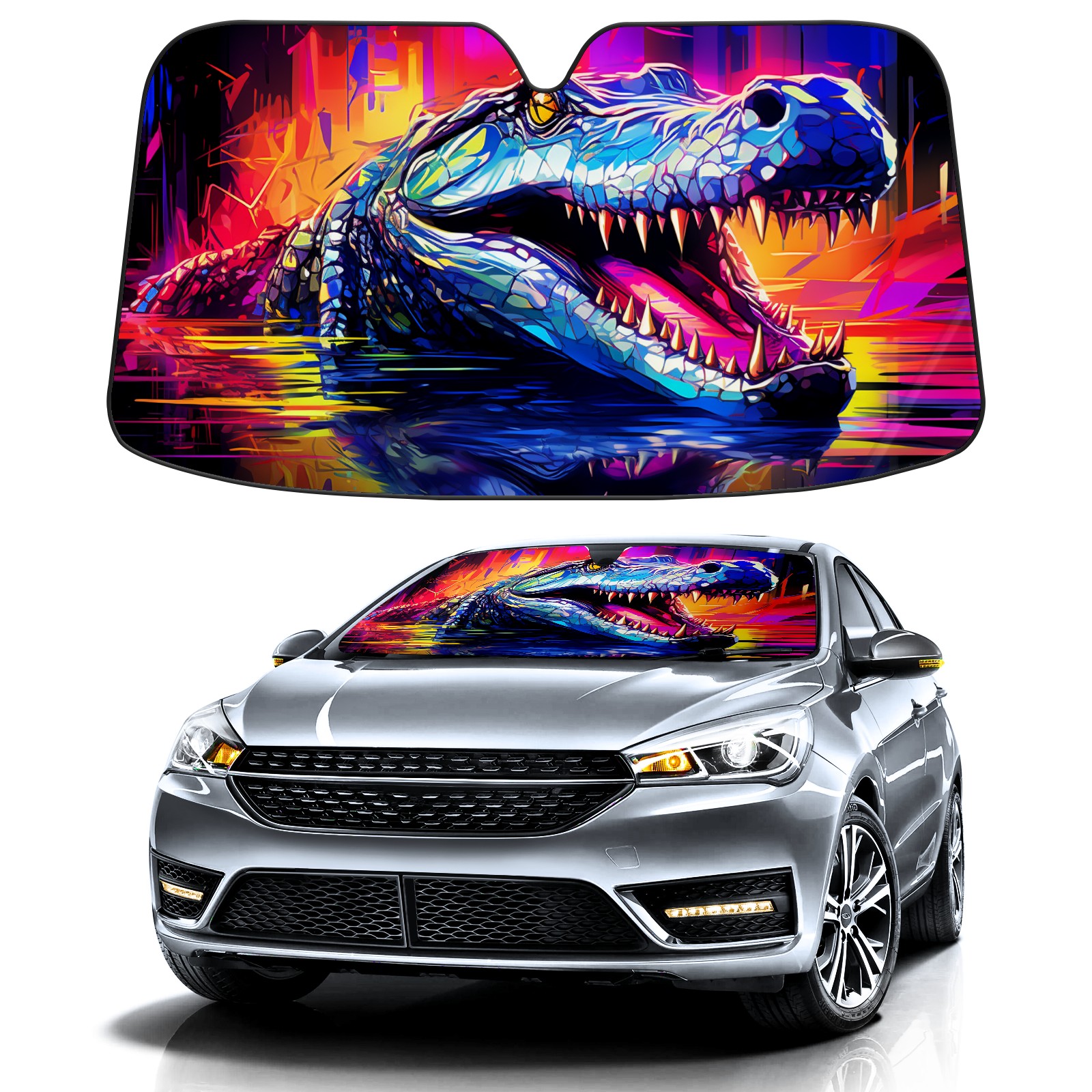 Car Windshield Sun Shade for Front Window Crocodile (33) Foldable Vehicle Windshield Car Sun Visor Covers Automotive Window Protector Car Privacy Sun Blocker