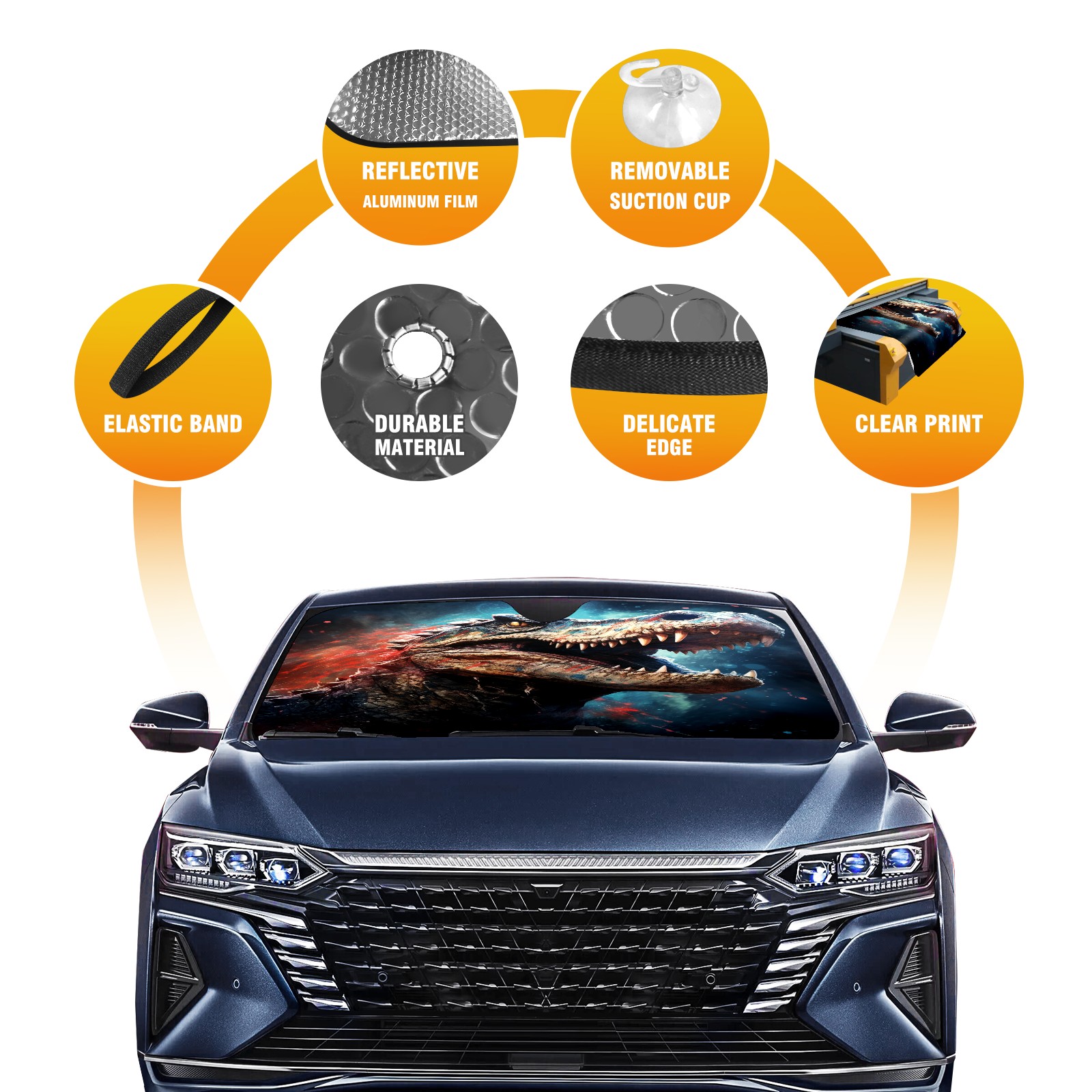 Car Windshield Sun Shade for Front Window Crocodile (11) Foldable Vehicle Windshield Car Sun Visor Covers Automotive Window Protector Car Privacy Sun Blocker
