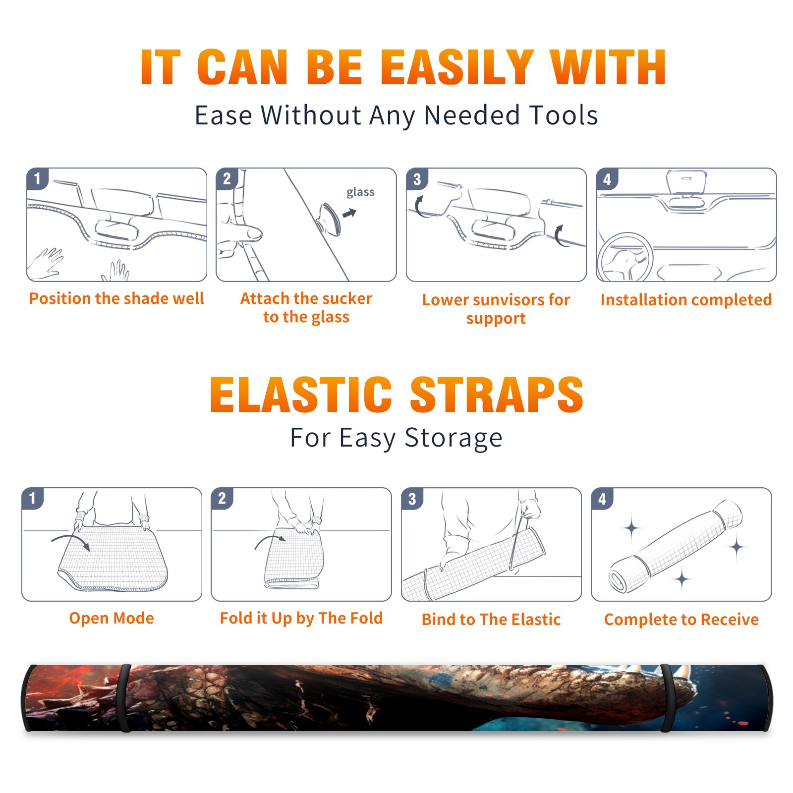 Diameter /Size 63"L x 33.5"W</b><br> Made from excellent materials which makes it sturdy and protects the car from the sun. Easy to use and pack. Makes the interior of the car cooler.You can easily stash the sunshade in the storage bag or store long term.It open and closes easy. Also the leather storage bag is durable and easy to put the umbrella back into.This windshield sunshade provides complete coverage and keeps your car interior cool under direct sun. It is easy to open and position under the windshield and around the rear-view mirror. Makes Your Car Easy To Identify, Perfect For Finding Your Car In Crowded Parking Lots And Garages.Great Choice: It Is A Great Gift For Dad, Boyfriend, Brother, Brother And Uncle, Friends, Classmates, Family And So On.<br> Notice:</b><br> Due To Difference Computer Monitors, The Color Maybe Slightly Different From Picture. As Different Measurement Methods, Measurement Data Will Float Within 2%.I Hope You Understand.<br> If You Have Any Question About The Item Please Do Not Hesitate To Contact Us Immediately And We Will Give You A Satisfactory Reply Within 24 Hours.