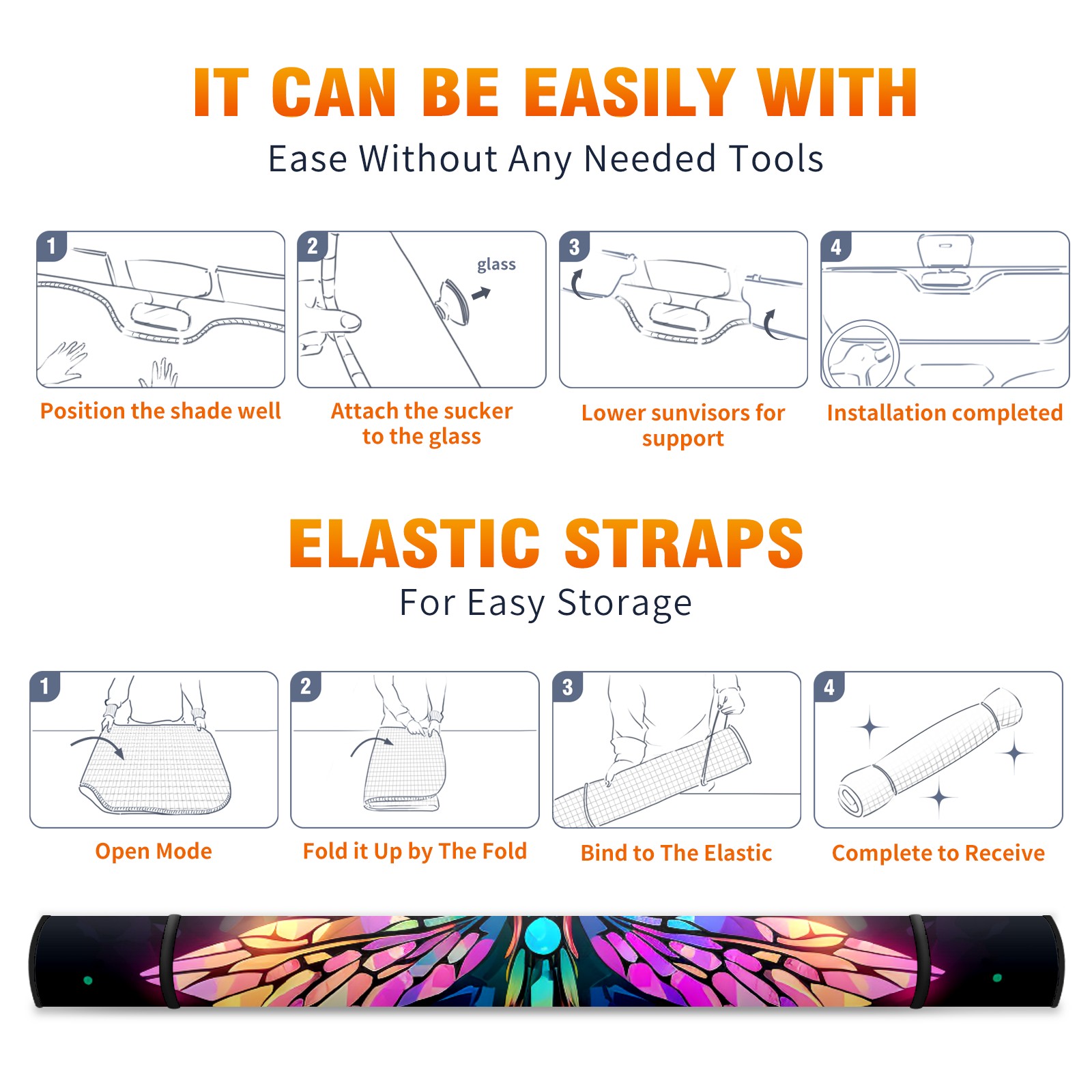 Diameter /Size 63"L x 33.5"W</b><br> Made from excellent materials which makes it sturdy and protects the car from the sun. Easy to use and pack. Makes the interior of the car cooler.You can easily stash the sunshade in the storage bag or store long term.It open and closes easy. Also the leather storage bag is durable and easy to put the umbrella back into.This windshield sunshade provides complete coverage and keeps your car interior cool under direct sun. It is easy to open and position under the windshield and around the rear-view mirror. Makes Your Car Easy To Identify, Perfect For Finding Your Car In Crowded Parking Lots And Garages.Great Choice: It Is A Great Gift For Dad, Boyfriend, Brother, Brother And Uncle, Friends, Classmates, Family And So On.<br> Notice:</b><br> Due To Difference Computer Monitors, The Color Maybe Slightly Different From Picture. As Different Measurement Methods, Measurement Data Will Float Within 2%.I Hope You Understand.<br> If You Have Any Question About The Item Please Do Not Hesitate To Contact Us Immediately And We Will Give You A Satisfactory Reply Within 24 Hours.