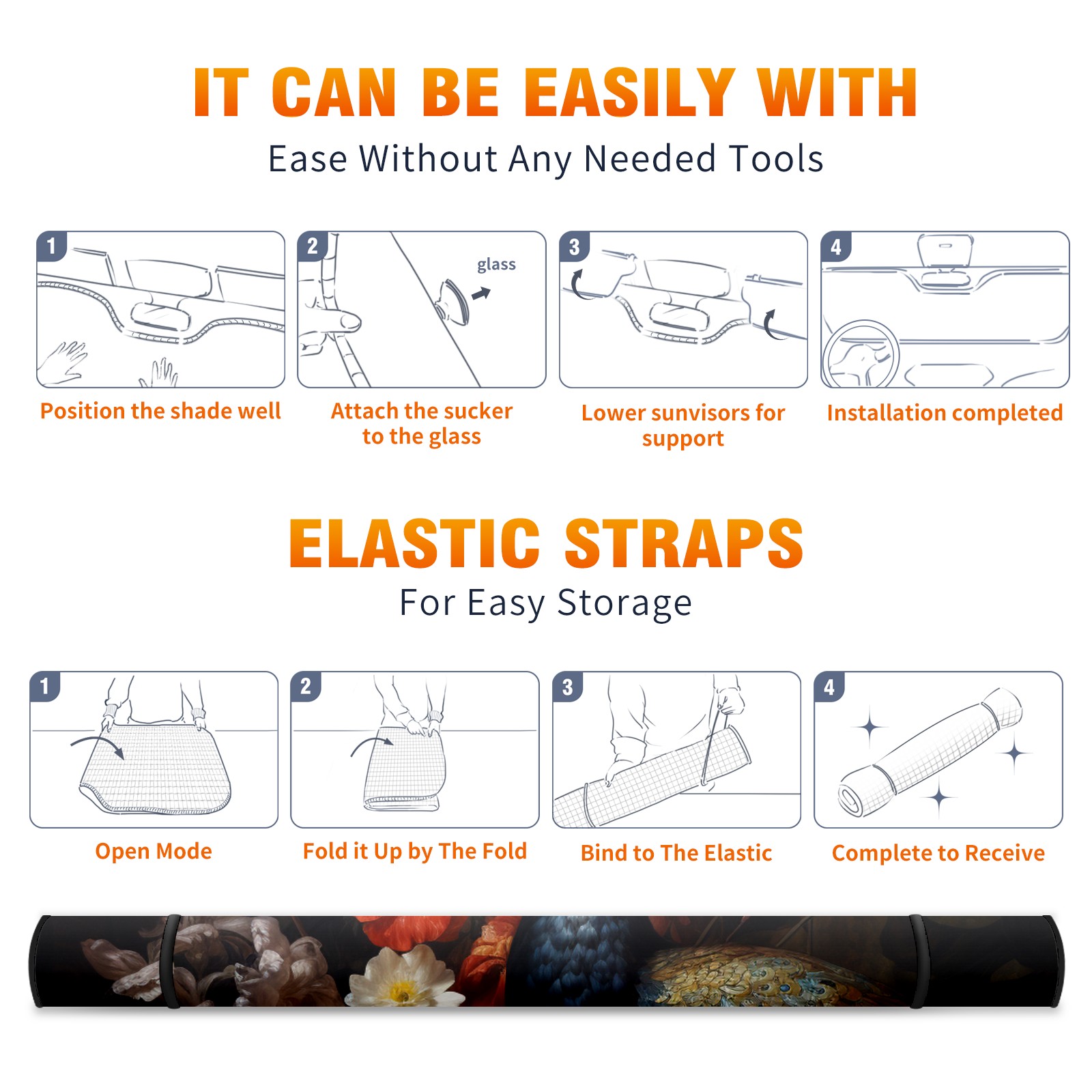 Diameter /Size 63"L x 33.5"W</b><br> Made from excellent materials which makes it sturdy and protects the car from the sun. Easy to use and pack. Makes the interior of the car cooler.You can easily stash the sunshade in the storage bag or store long term.It open and closes easy. Also the leather storage bag is durable and easy to put the umbrella back into.This windshield sunshade provides complete coverage and keeps your car interior cool under direct sun. It is easy to open and position under the windshield and around the rear-view mirror. Makes Your Car Easy To Identify, Perfect For Finding Your Car In Crowded Parking Lots And Garages.Great Choice: It Is A Great Gift For Dad, Boyfriend, Brother, Brother And Uncle, Friends, Classmates, Family And So On.<br> Notice:</b><br> Due To Difference Computer Monitors, The Color Maybe Slightly Different From Picture. As Different Measurement Methods, Measurement Data Will Float Within 2%.I Hope You Understand.<br> If You Have Any Question About The Item Please Do Not Hesitate To Contact Us Immediately And We Will Give You A Satisfactory Reply Within 24 Hours.