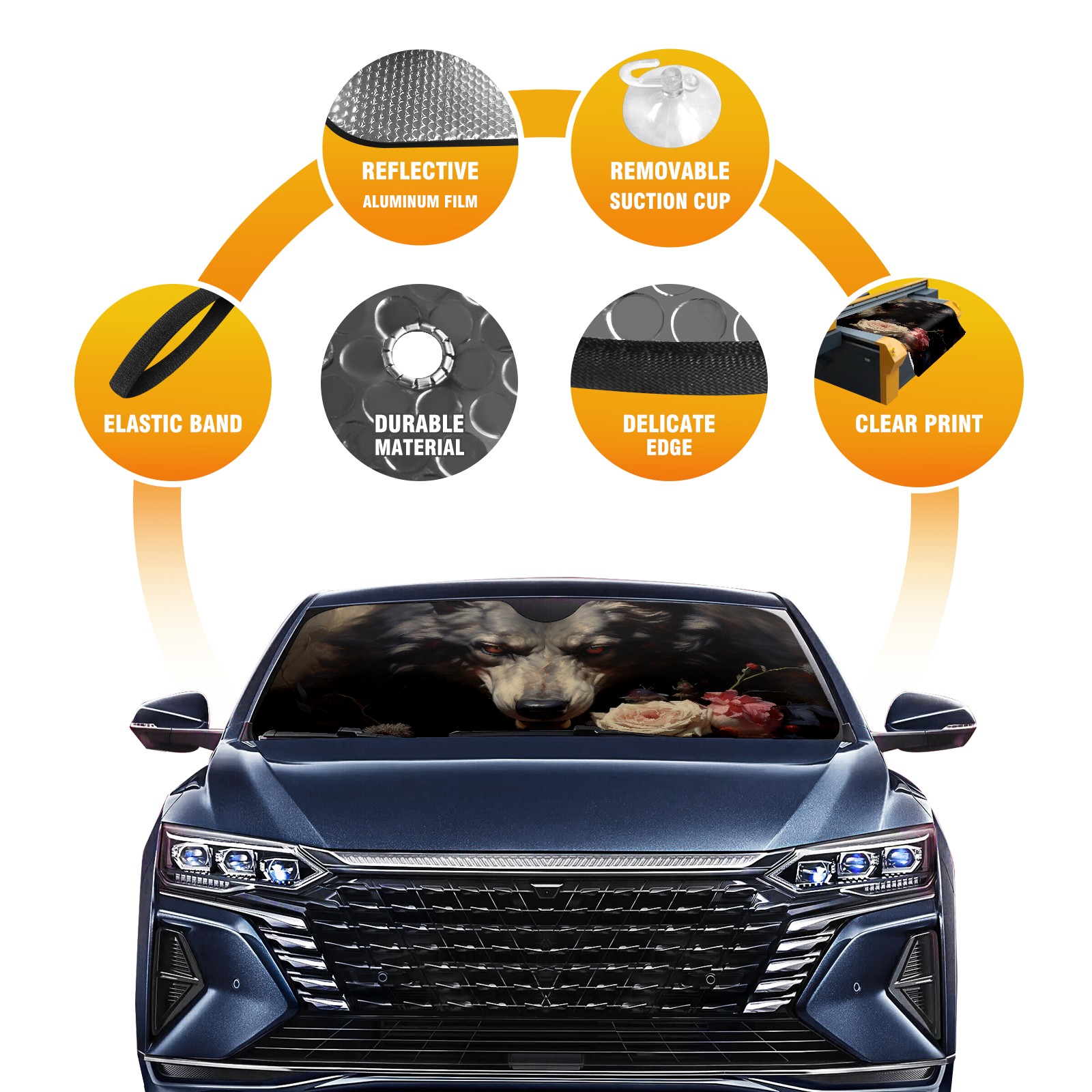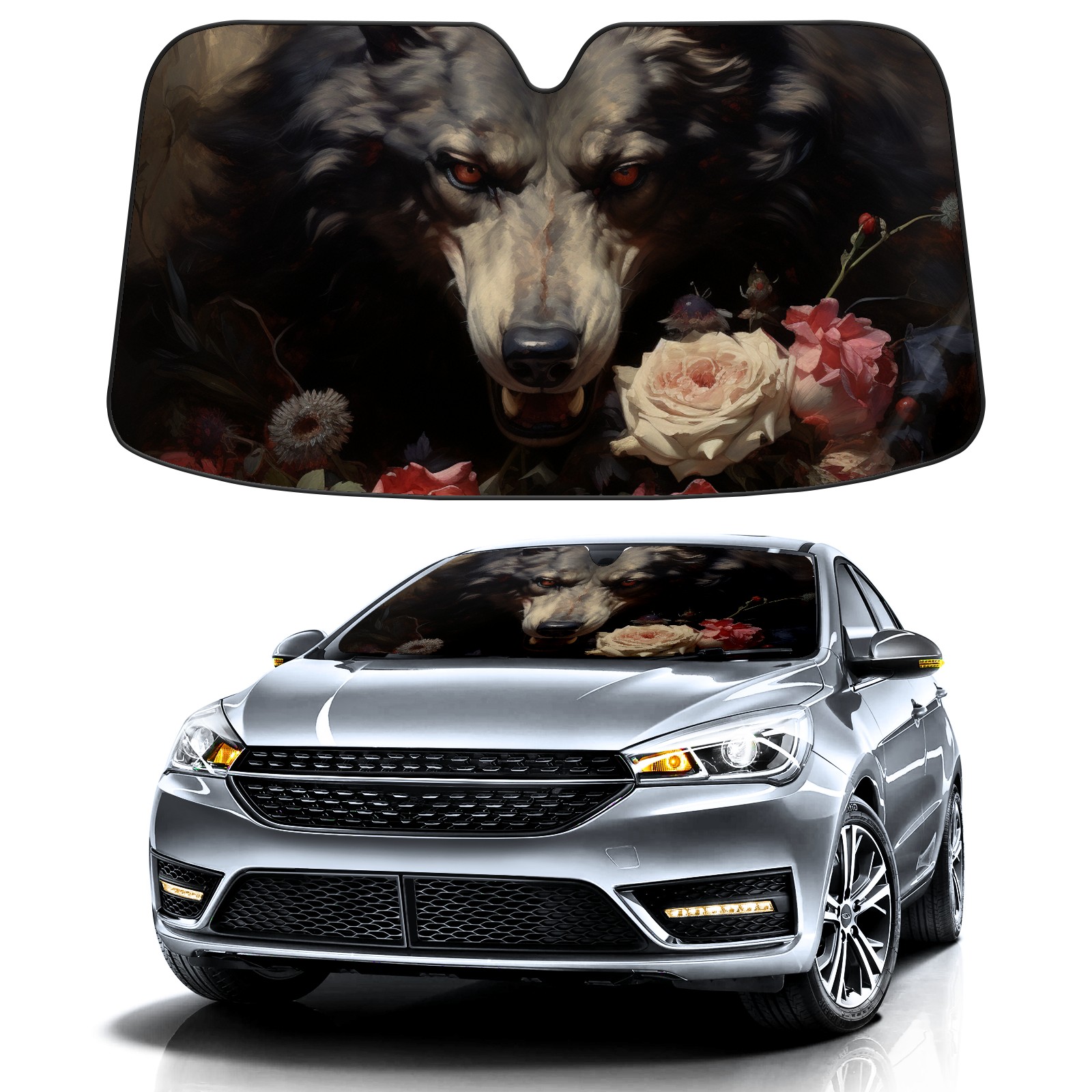 Car Windshield Sun Shade for Front Window Wolf (7) Foldable Vehicle Windshield Car Sun Visor Covers Automotive Window Protector Car Privacy Sun Blocker