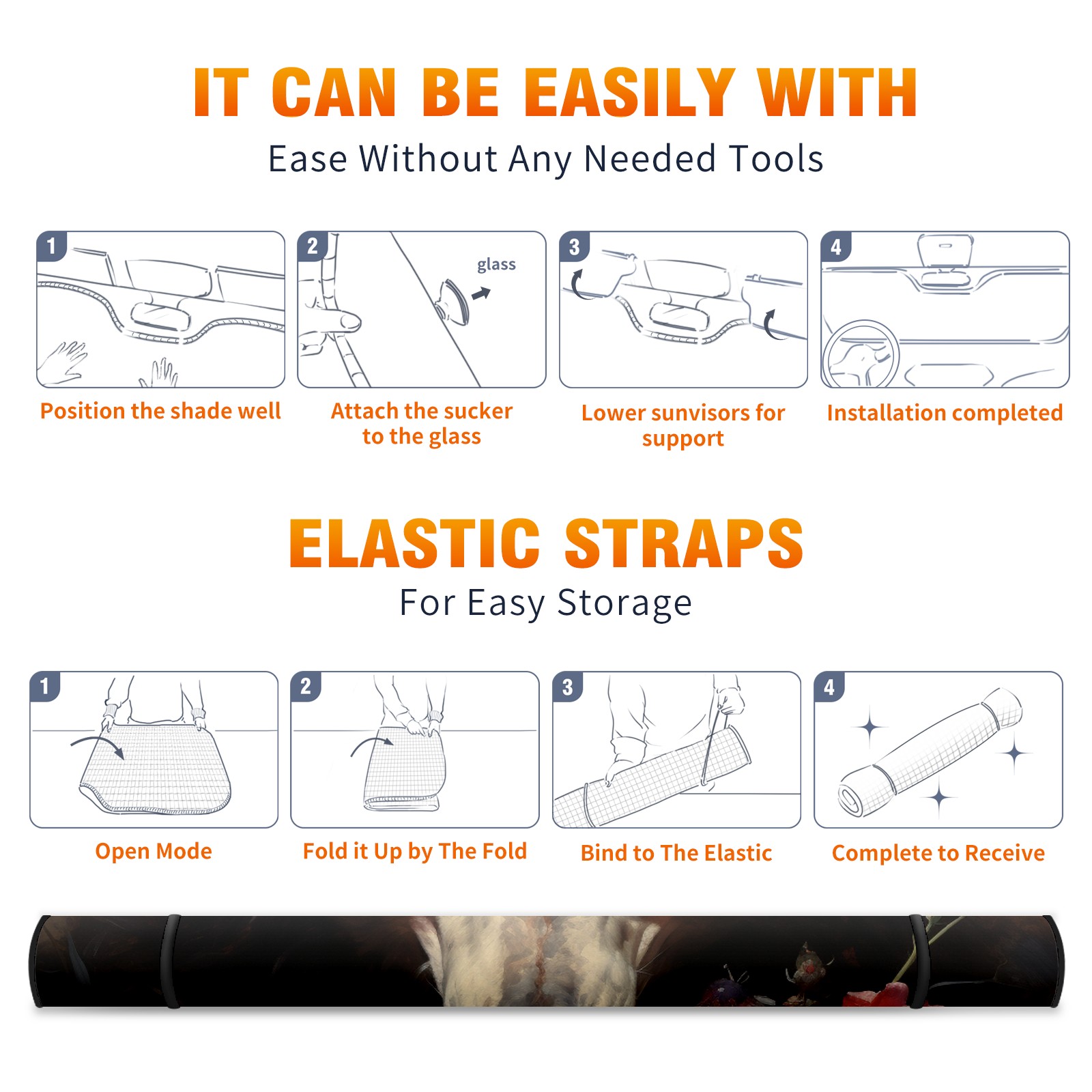 • Diameter /Size 63"L x 33.5"W</b><br> Made from excellent materials which makes it sturdy and protects the car from the sun. Easy to use and pack. Makes the interior of the car cooler.You can easily stash the sunshade in the storage bag or store long term.It open and closes easy. Also the leather storage bag is durable and easy to put the umbrella back into.This windshield sunshade provides complete coverage and keeps your car interior cool under direct sun. It is easy to open and position under the windshield and around the rear-view mirror. Makes Your Car Easy To Identify, Perfect For Finding Your Car In Crowded Parking Lots And Garages.Great Choice: It Is A Great Gift For Dad, Boyfriend, Brother, Brother And Uncle, Friends, Classmates, Family And So On.<br> Notice:</b><br> Due To Difference Computer Monitors, The Color Maybe Slightly Different From Picture. As Different Measurement Methods, Measurement Data Will Float Within 2%.I Hope You Understand.<br> If You Have Any Question About The Item Please Do Not Hesitate To Contact Us Immediately And We Will Give You A Satisfactory Reply Within 24 Hours.